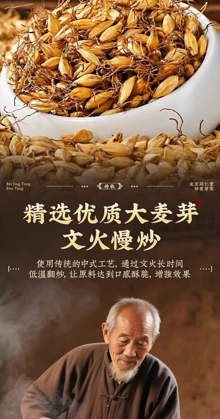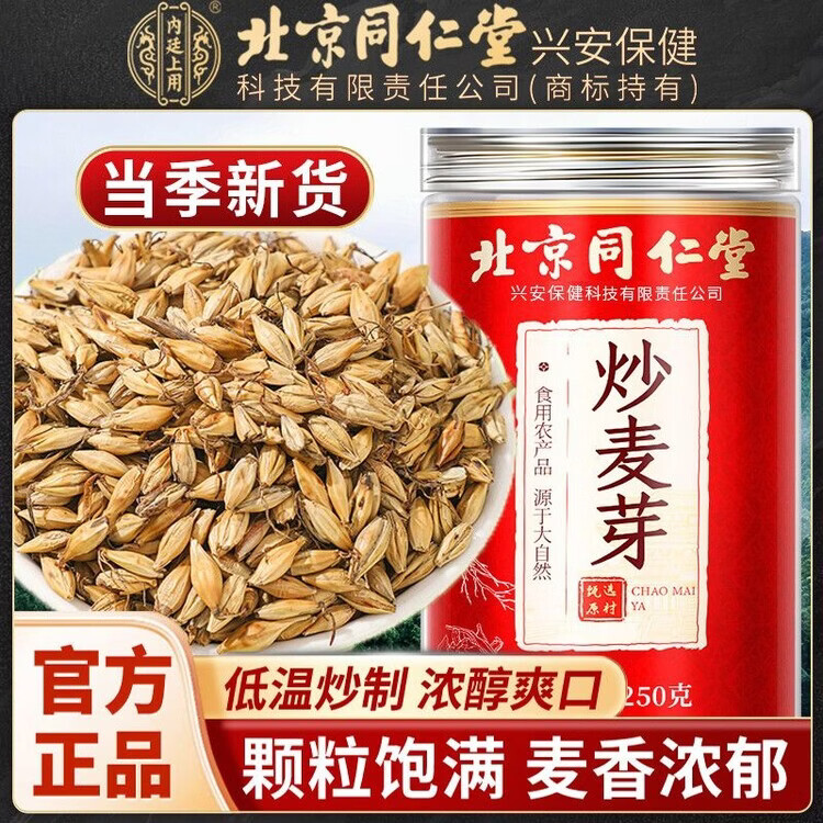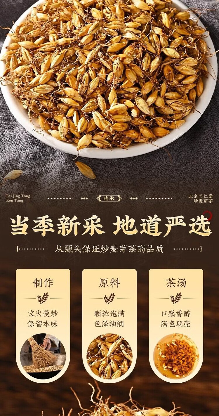 同仁堂(TRT)炒麦芽正品特级熟麦芽泡水断奶回奶宝妈养生茶中药材精选无硫干货 【特级无硫炒麦芽】 250g*3罐 新老包装随机发货
