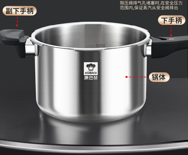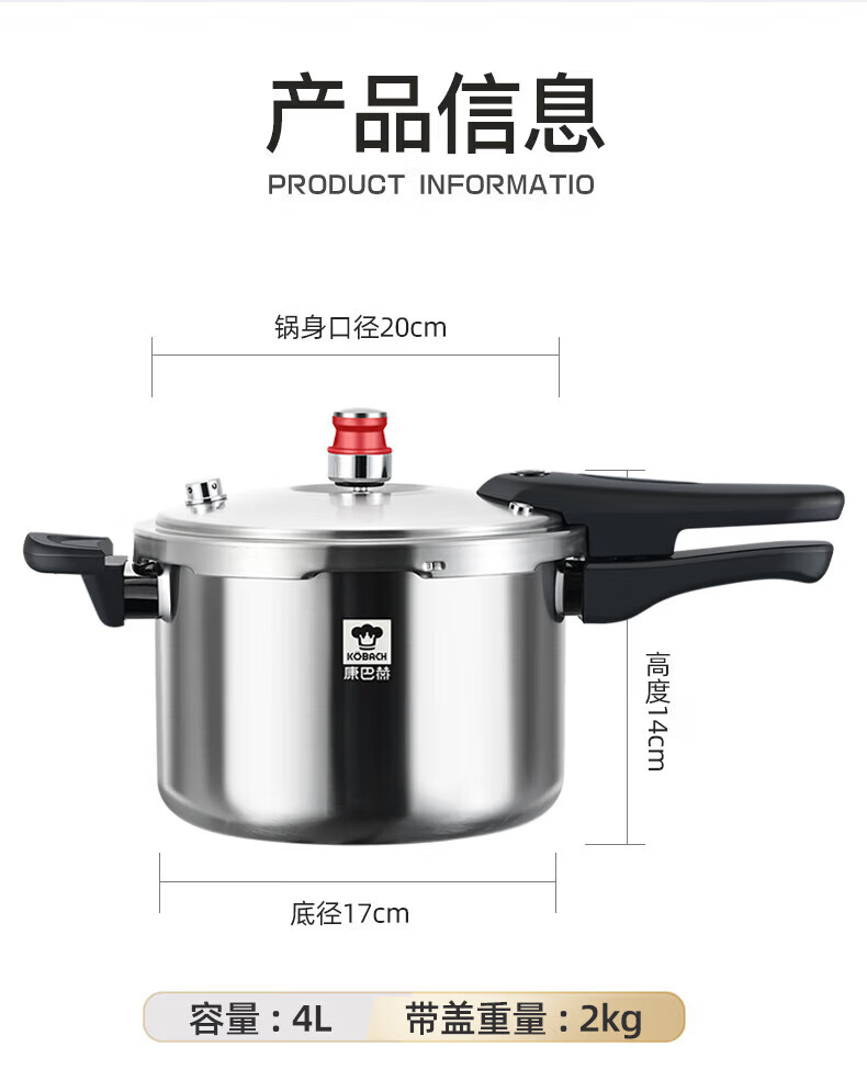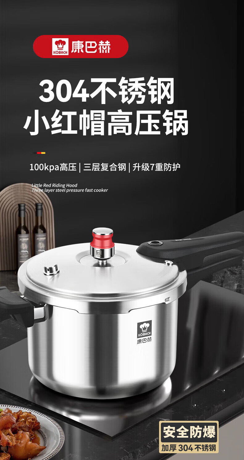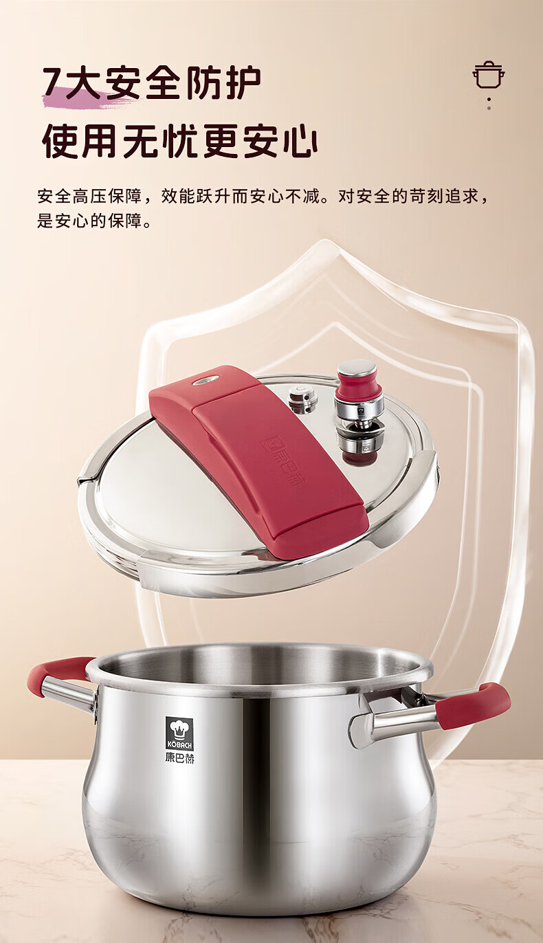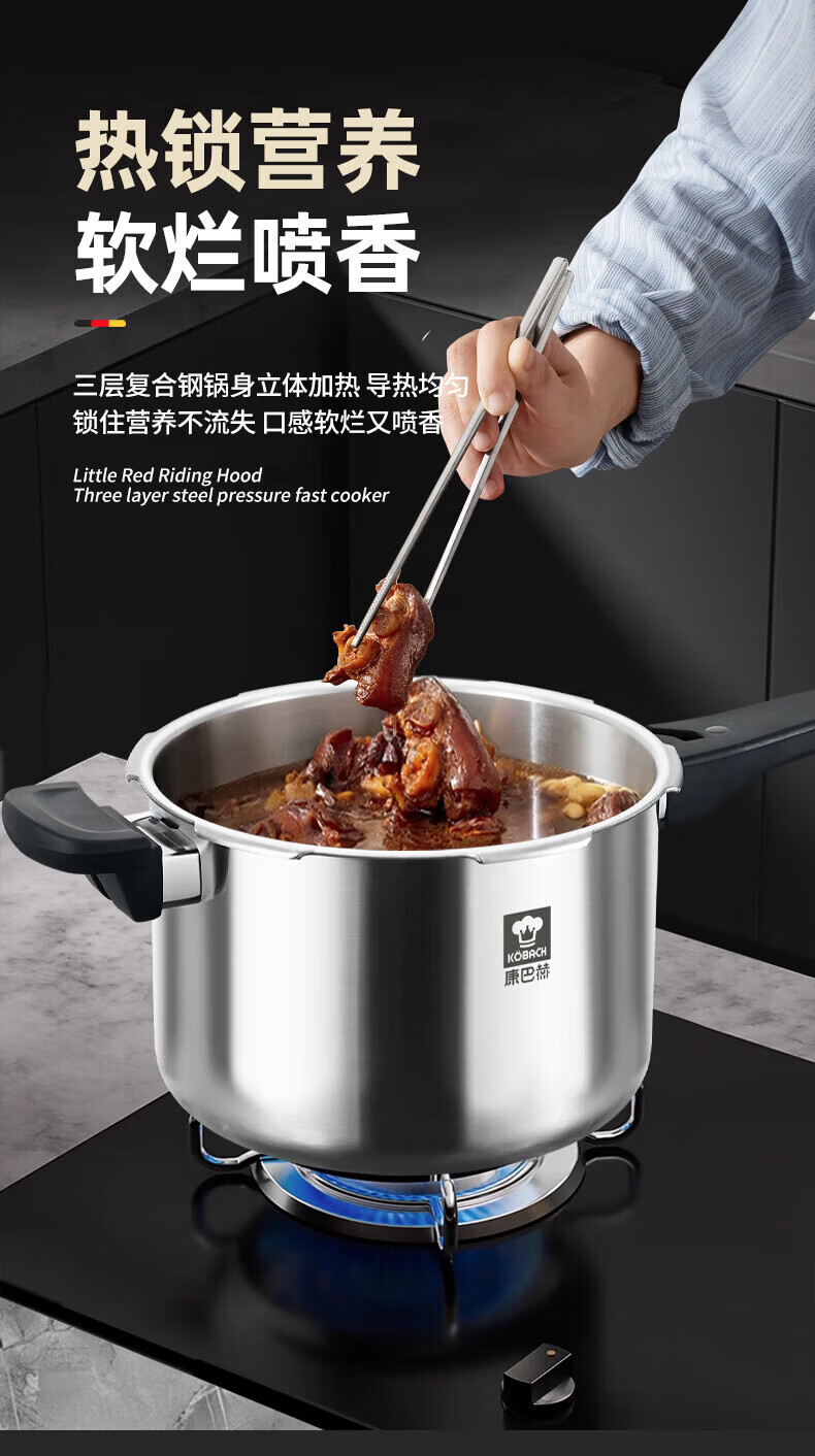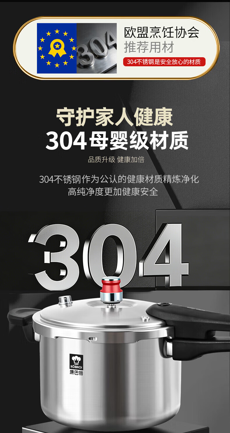 康巴赫(KOBACH) 高压锅304不锈钢家用防爆高压锅燃气灶电磁炉通用大容量压力锅 【爆款主推】90%消费者选择6L 22cm