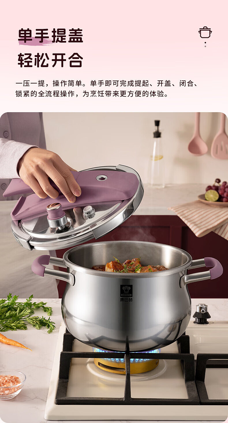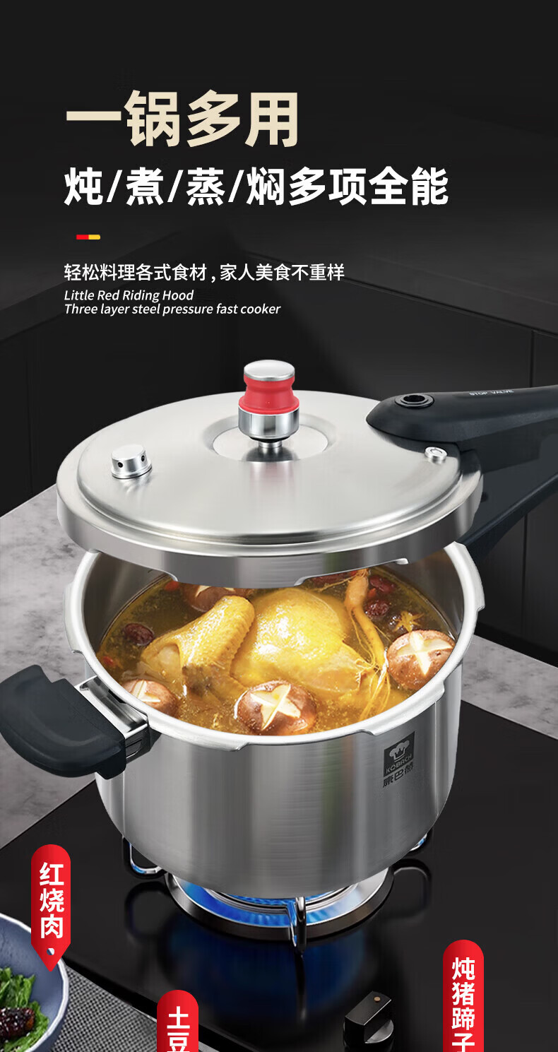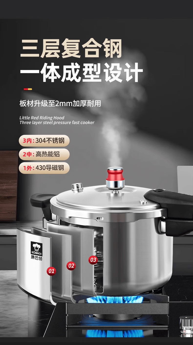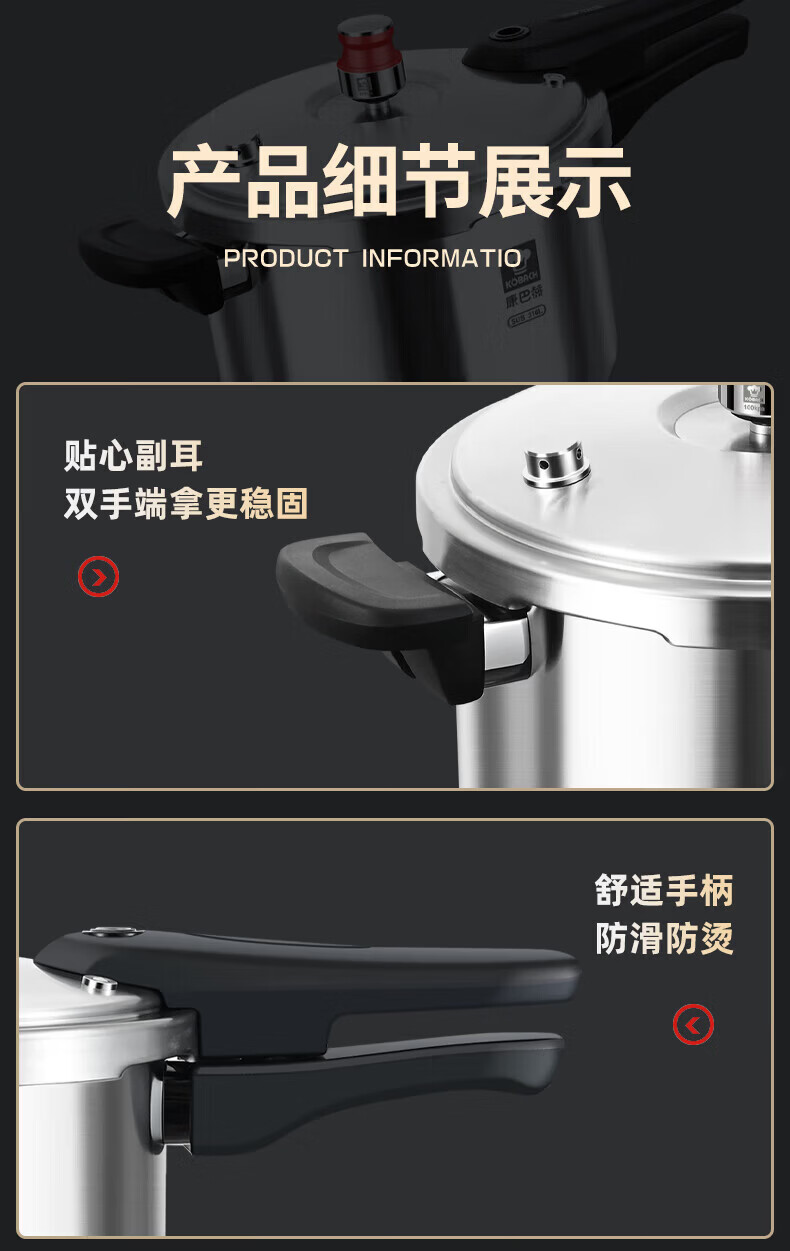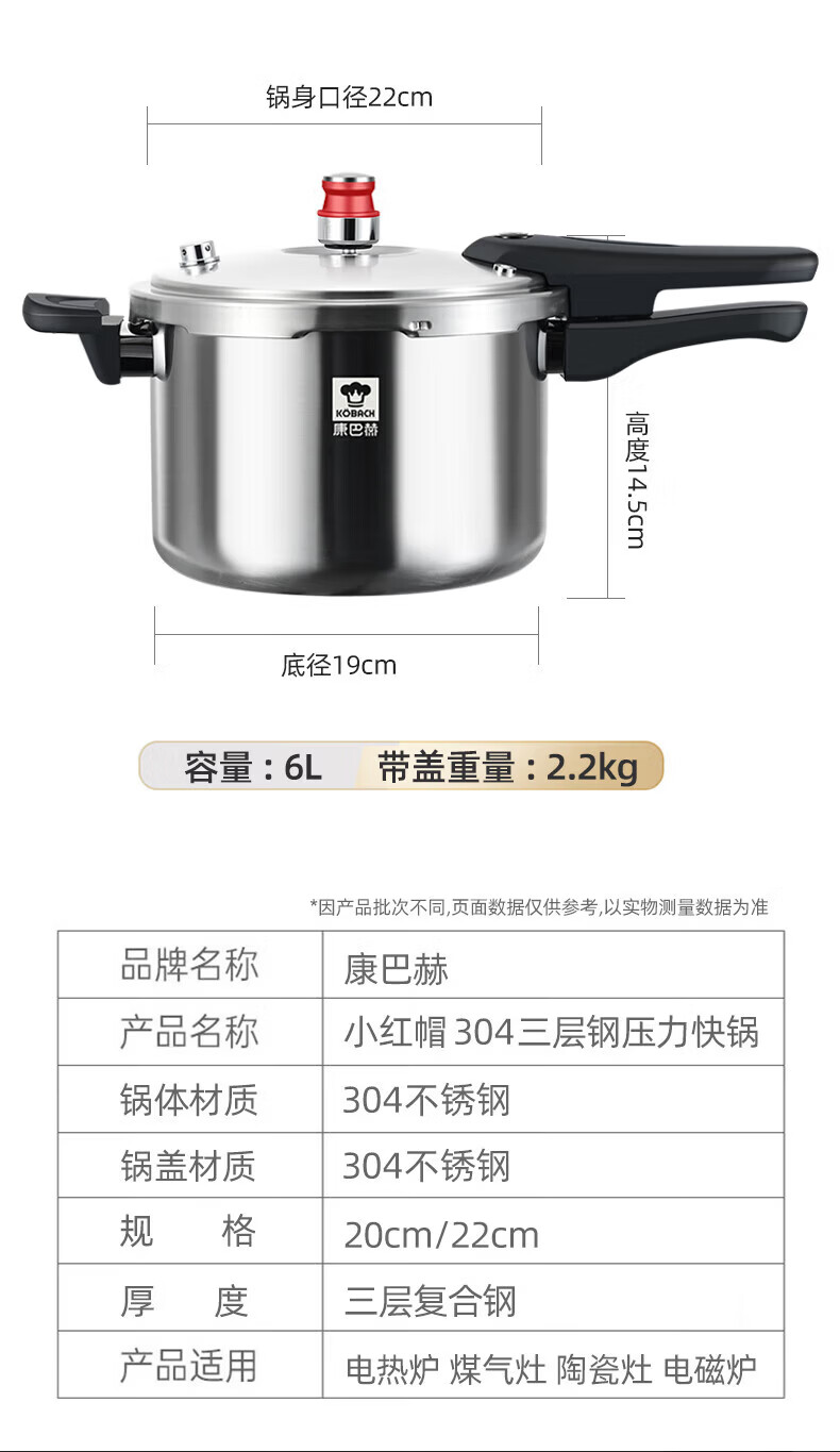 康巴赫(KOBACH) 高压锅304不锈钢家用防爆高压锅燃气灶电磁炉通用大容量压力锅 【爆款主推】90%消费者选择6L 22cm