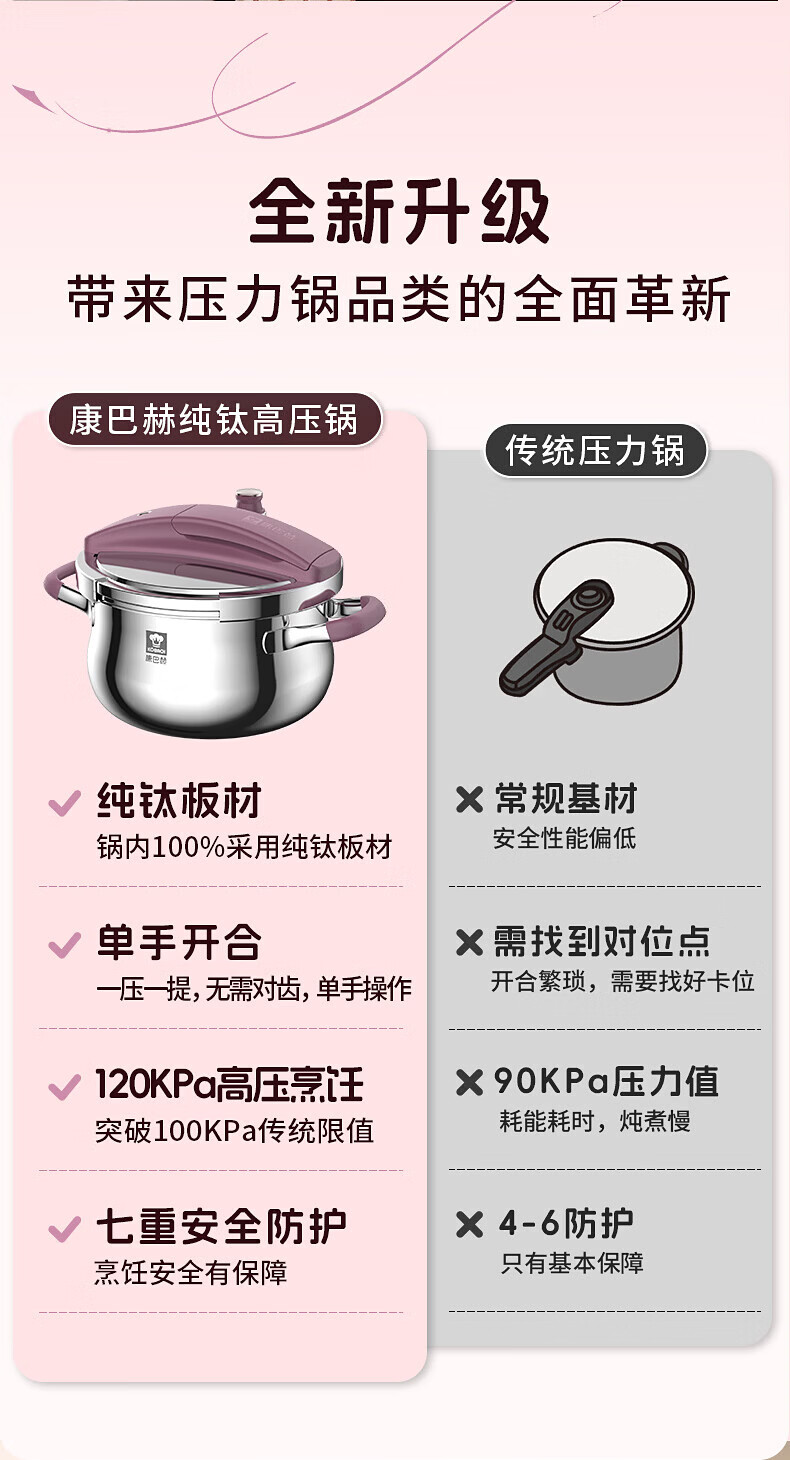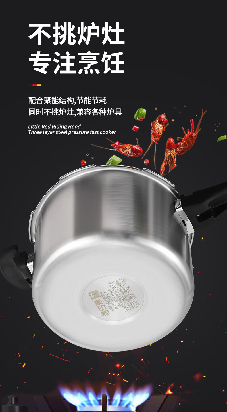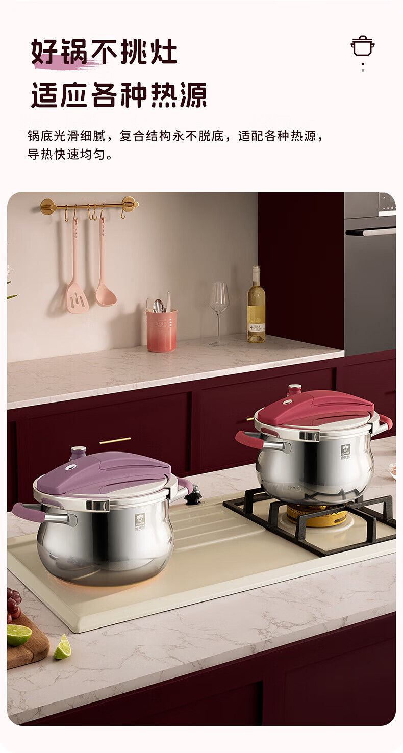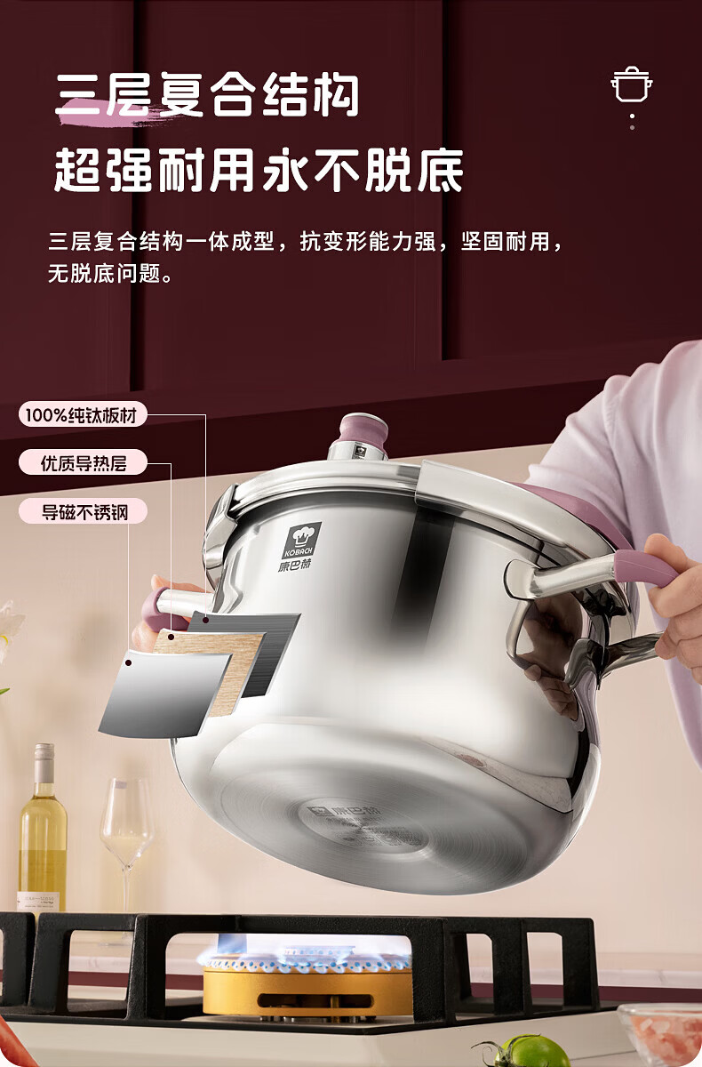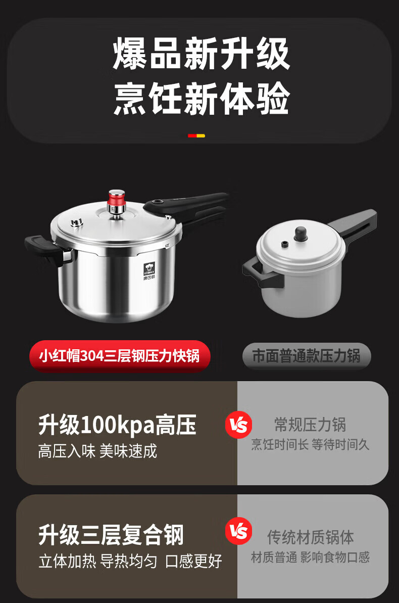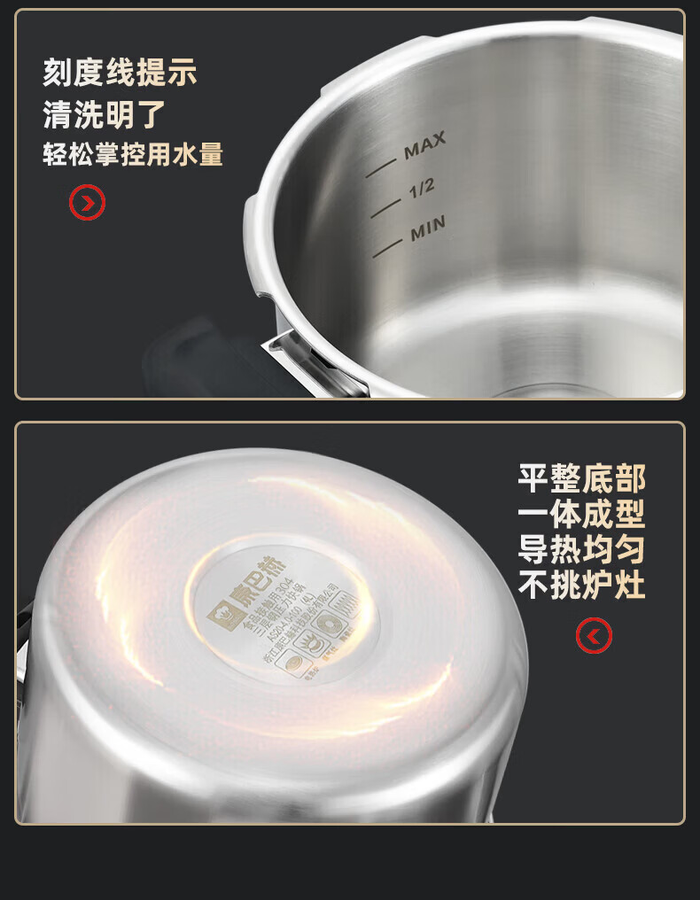 康巴赫(KOBACH) 高压锅304不锈钢家用防爆高压锅燃气灶电磁炉通用大容量压力锅 【爆款主推】90%消费者选择6L 22cm