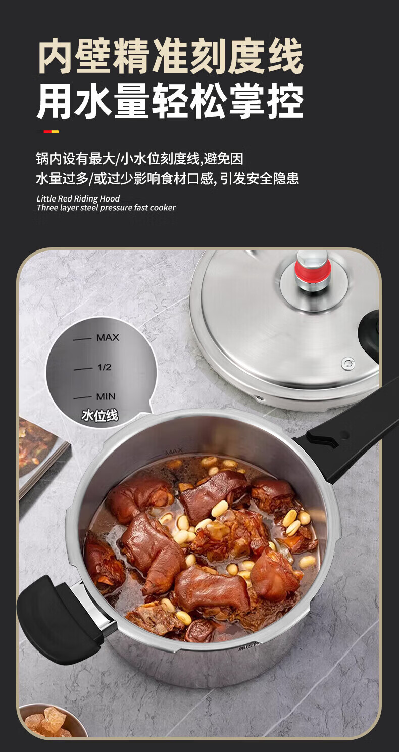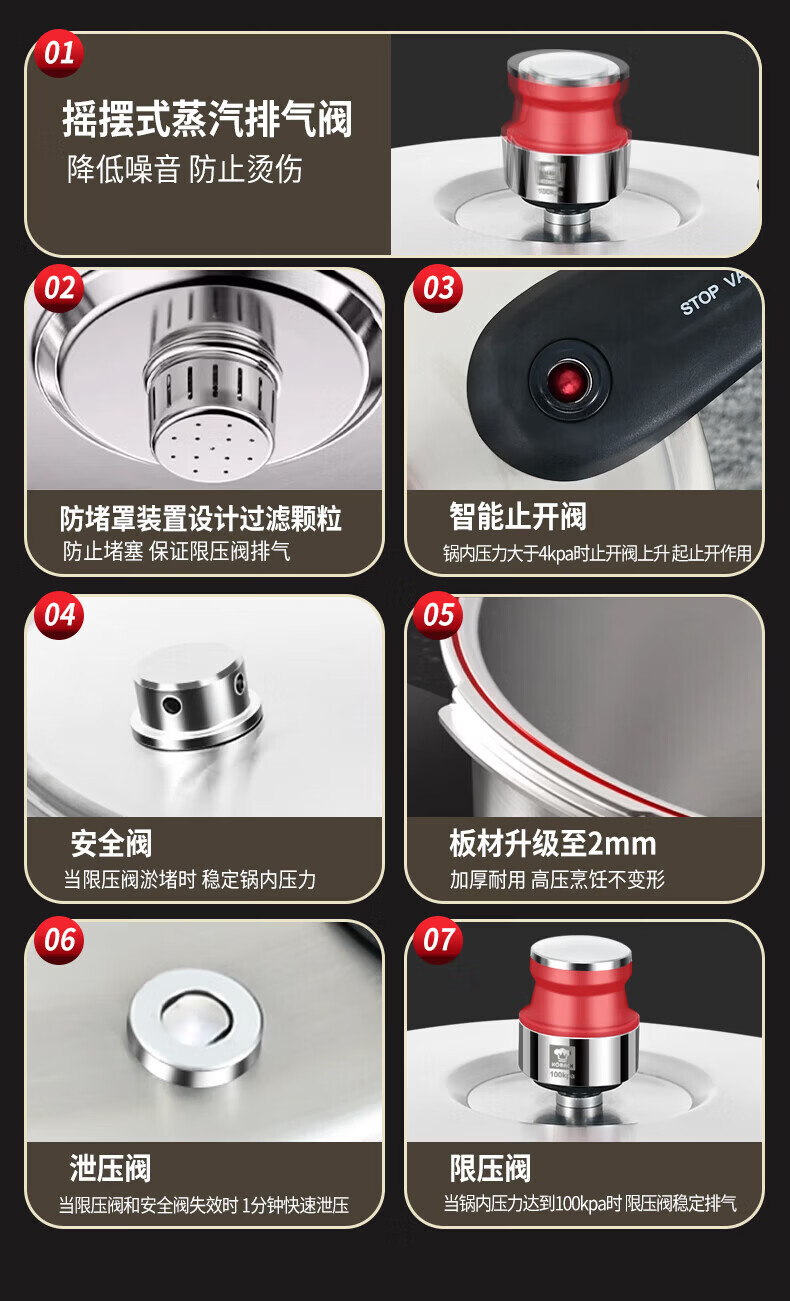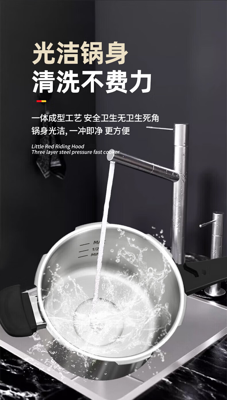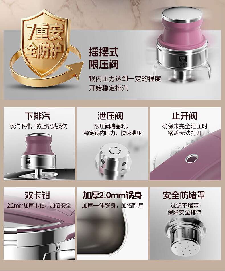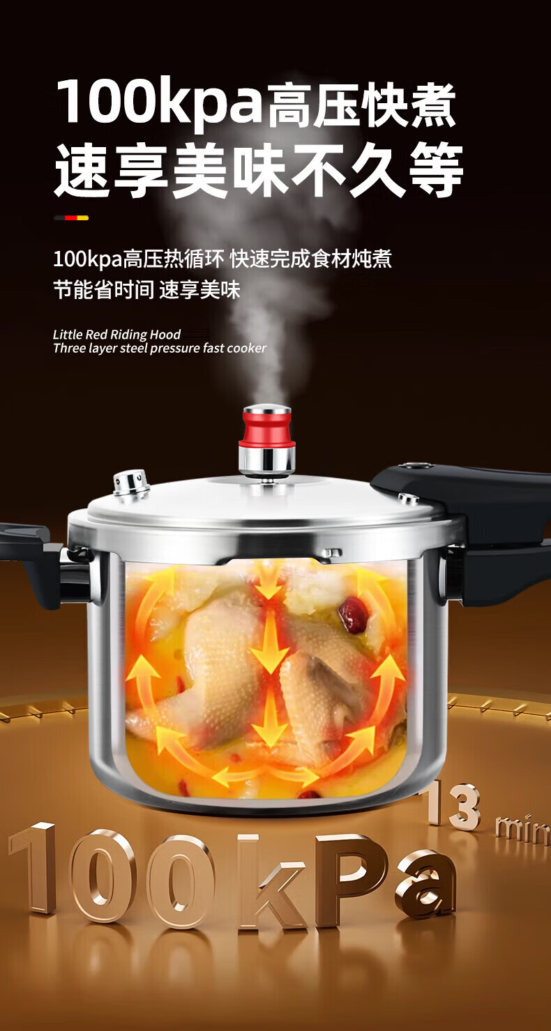 康巴赫(KOBACH) 高压锅304不锈钢家用防爆高压锅燃气灶电磁炉通用大容量压力锅 【爆款主推】90%消费者选择6L 22cm
