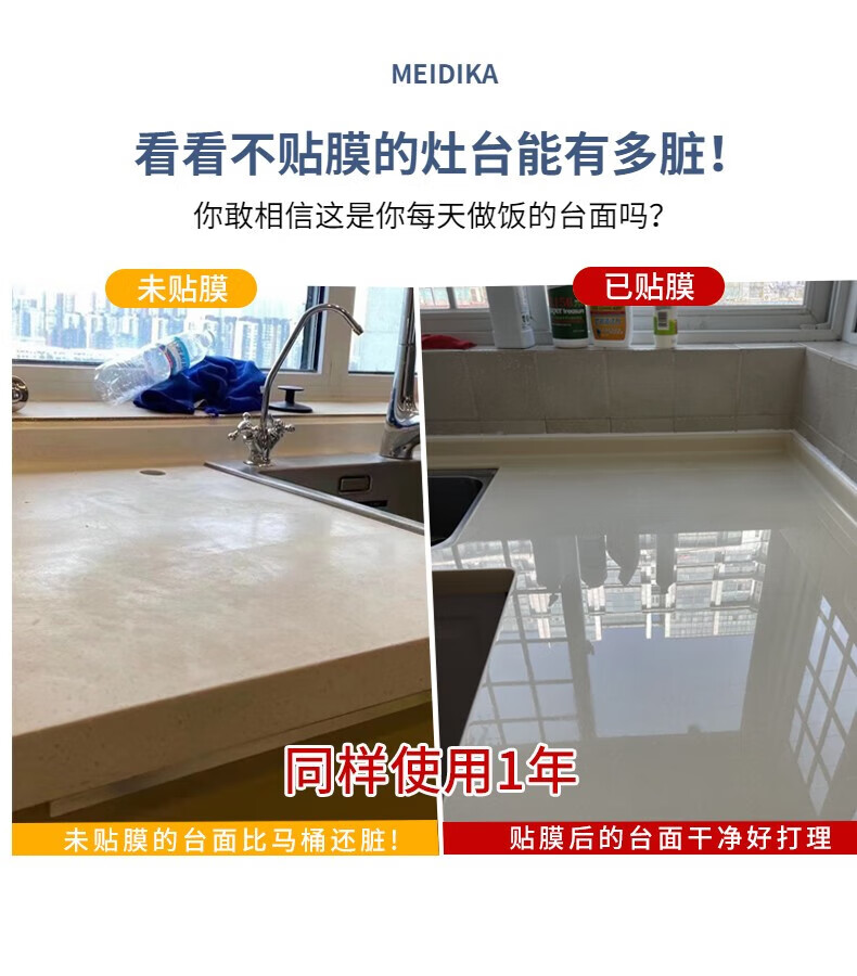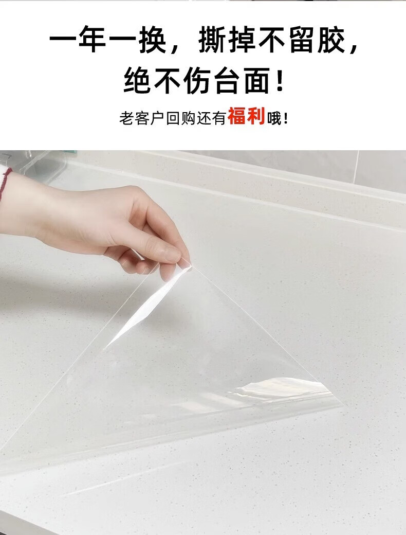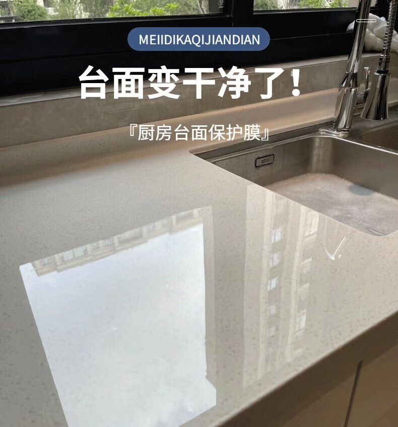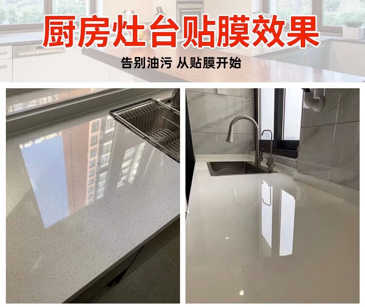 千棵树厨房台面保护膜灶台石英石大理石贴膜桌面耐高温加厚防水防油贴纸 【可包边】8MIL抗菌TPH水晶膜 宽120厘米x5米长(拍多件连着发)