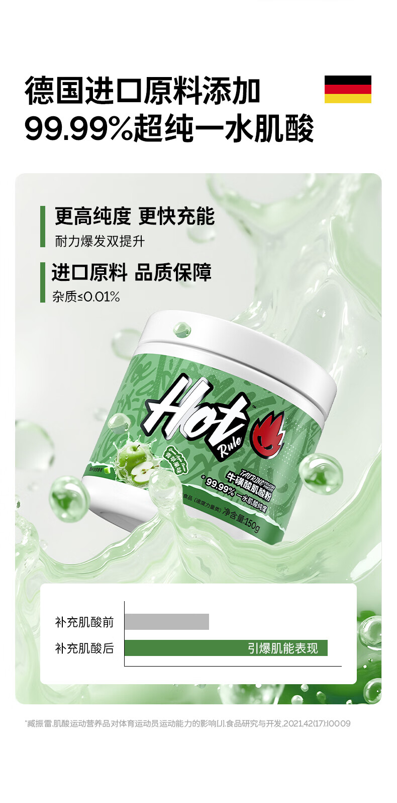 Hot Rule一水肌酸99.99%高纯度肌酸粉马拉松爆发耐力健身营养补剂非氮泵 【99.99%一水肌酸】原味3g*10条
