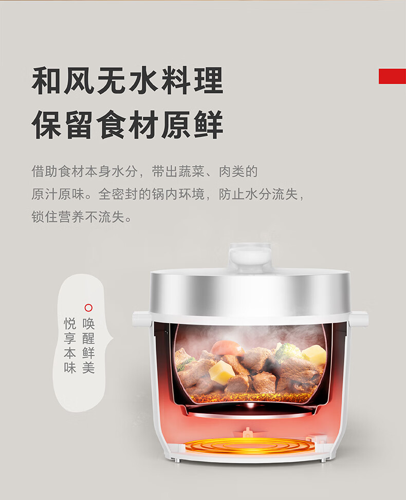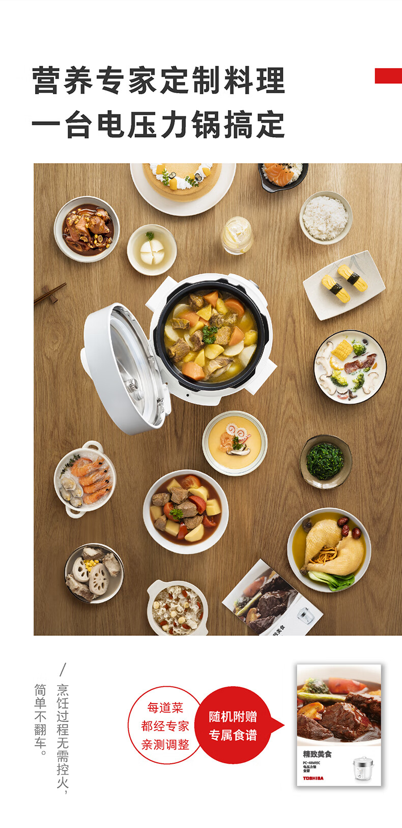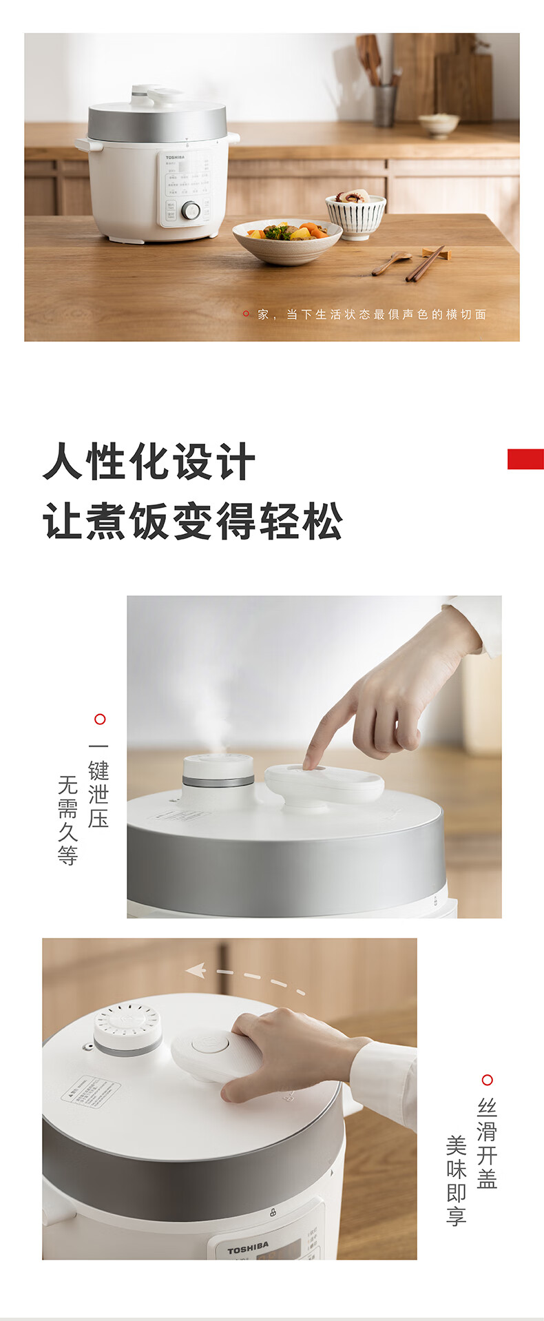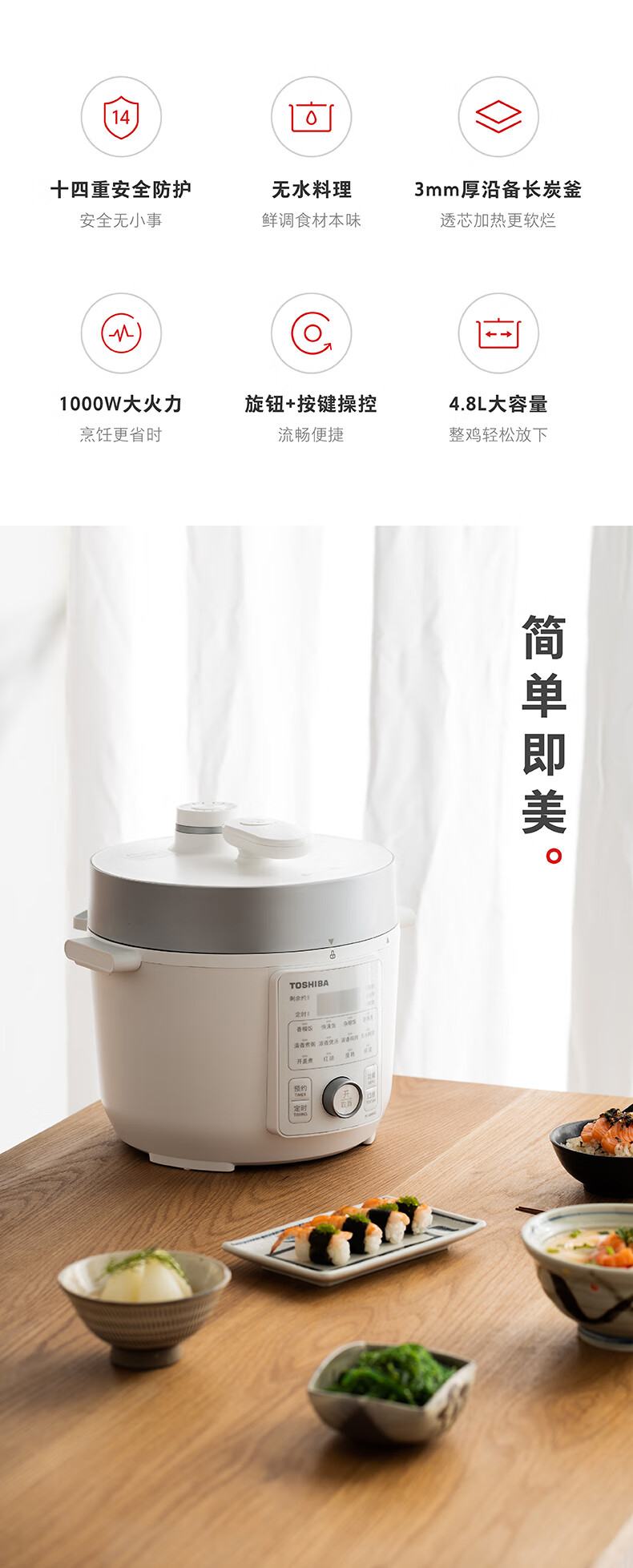 东芝(TOSHIBA)304不锈钢0涂层芝味2-4人家用多功能迷你中高压锅智能预约电饭煲14重安全保护 大容量 双内胆 4.8L PC-48MRSC(W)