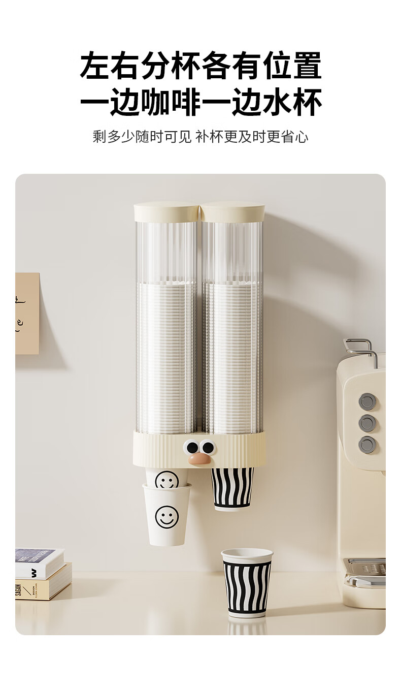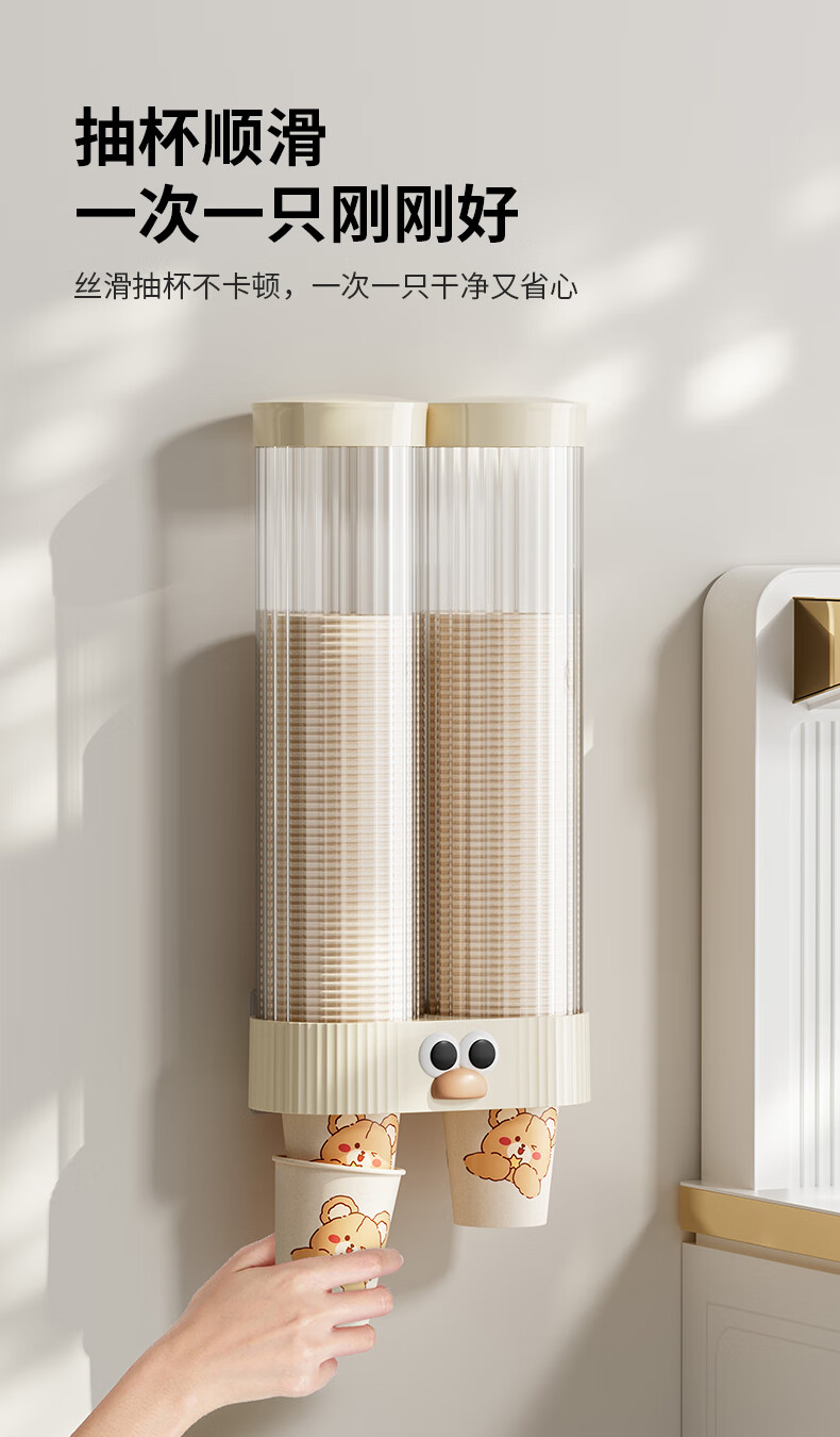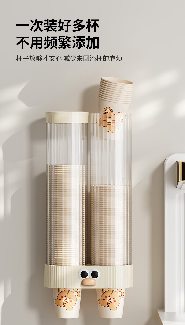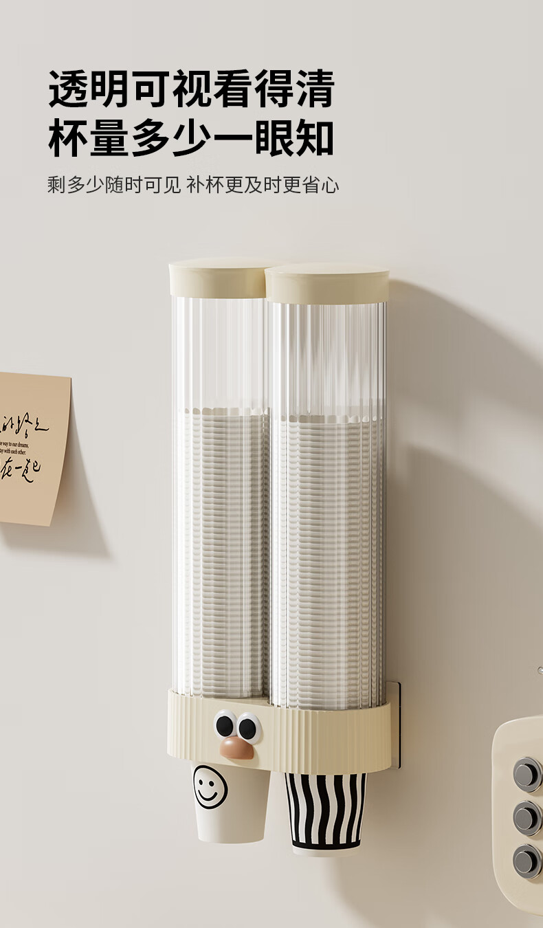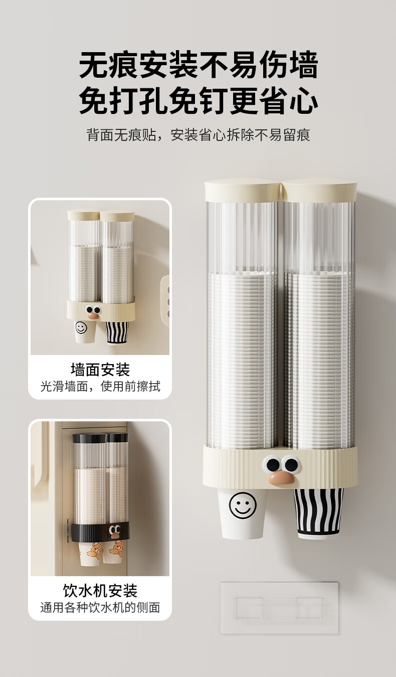 旻胜一次性取杯器塑料杯纸杯架饮水机壁挂收纳架免打孔挂墙杯架高颜值 长款【双桶白】约放120只杯子