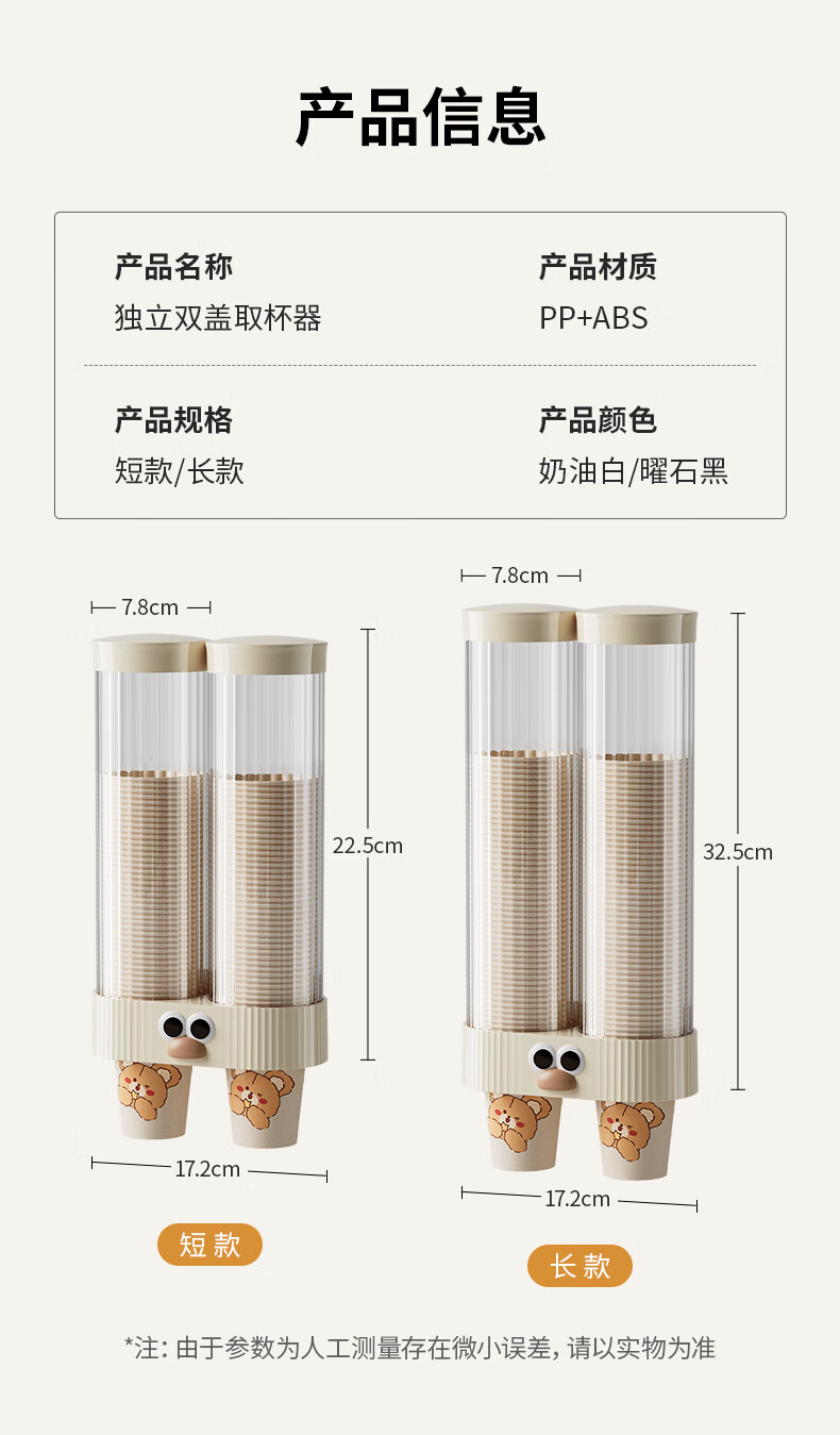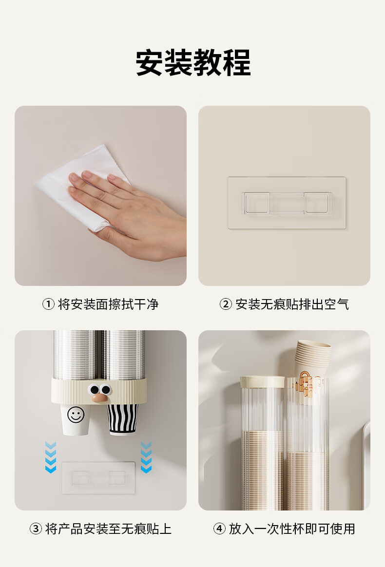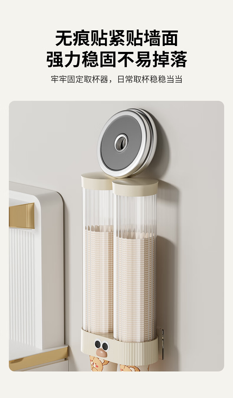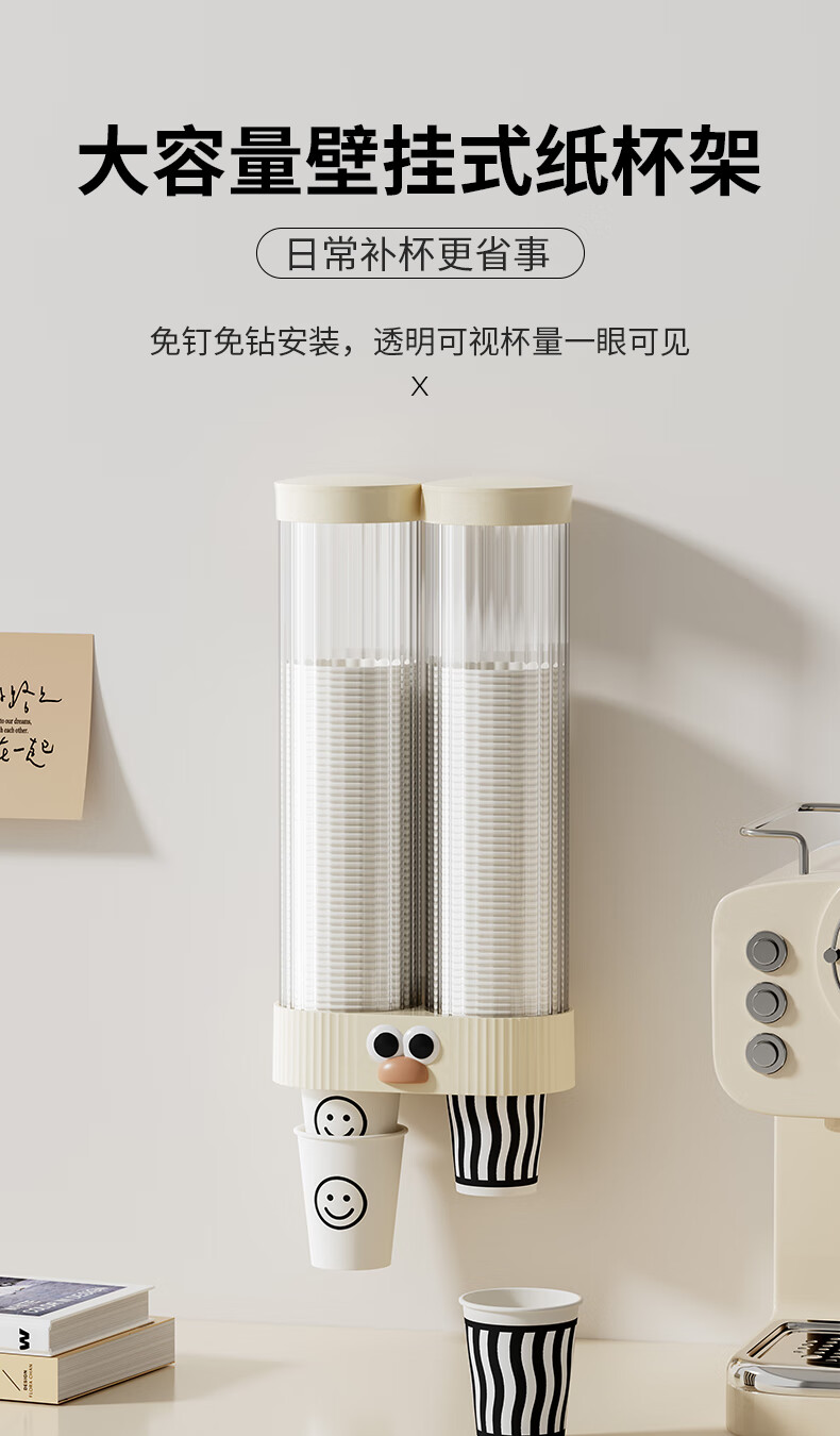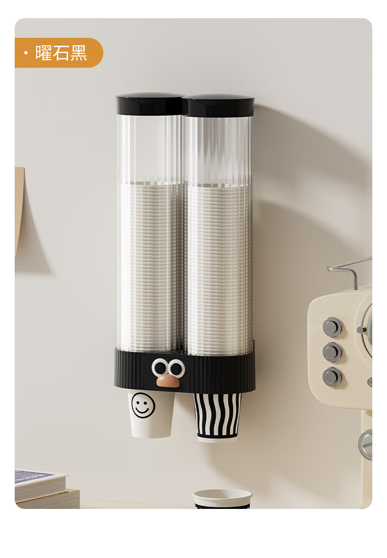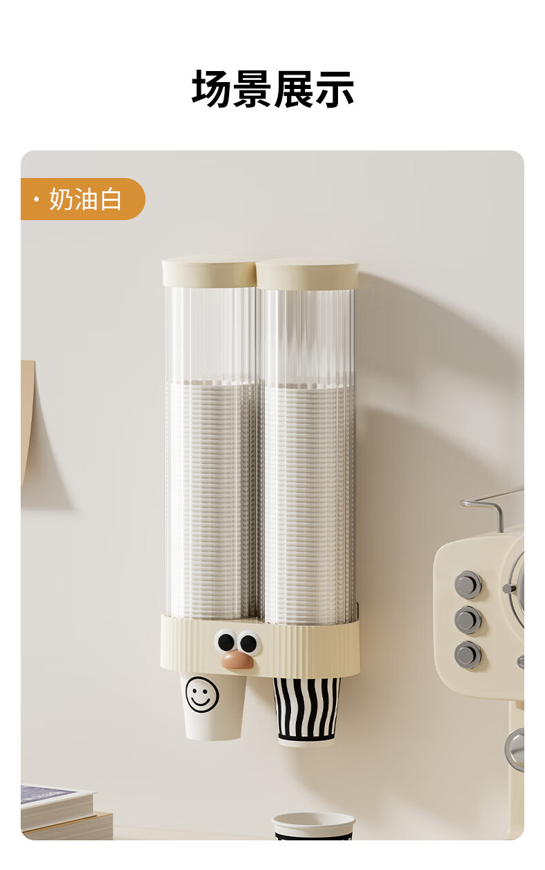 旻胜一次性取杯器塑料杯纸杯架饮水机壁挂收纳架免打孔挂墙杯架高颜值 长款【双桶白】约放120只杯子