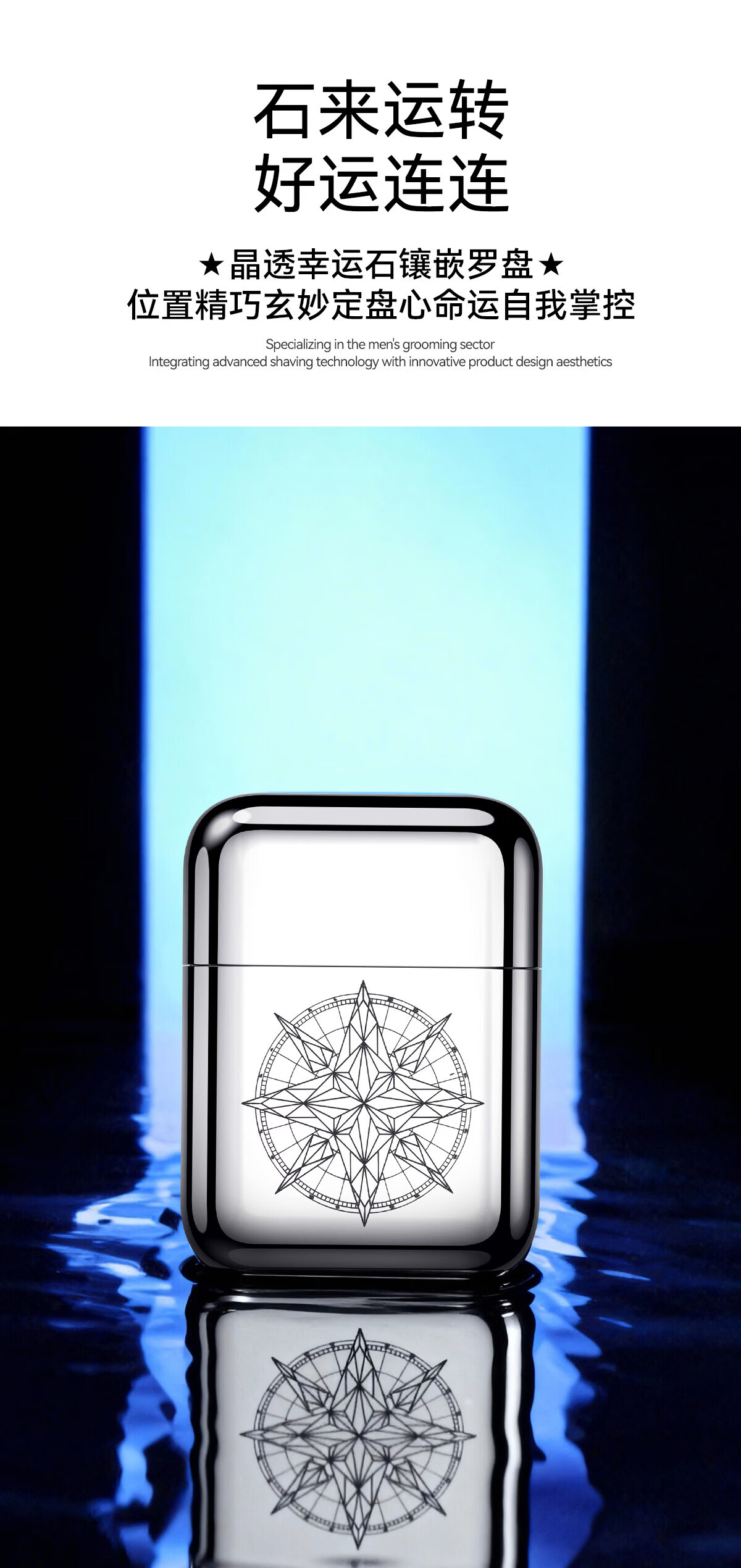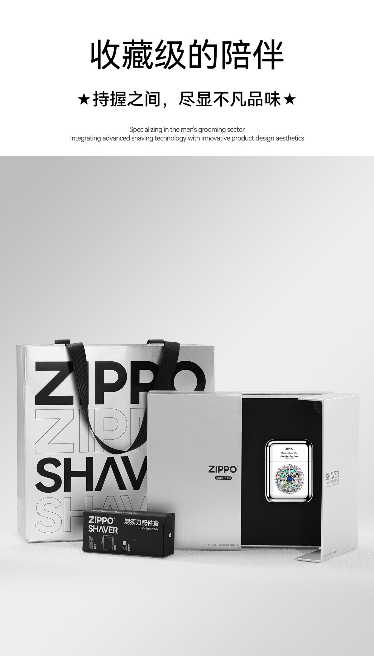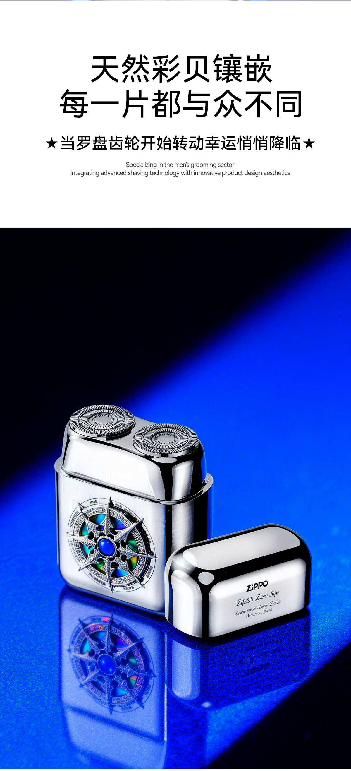 ZIPPO艺术剃须刀白冰幸运罗盘石来运转迷你便携旅行出差车载电动刮胡刀水洗送男友老公兄弟纪念生日礼物 白冰幸运罗盘+至臻礼盒 可刻字+代写贺卡