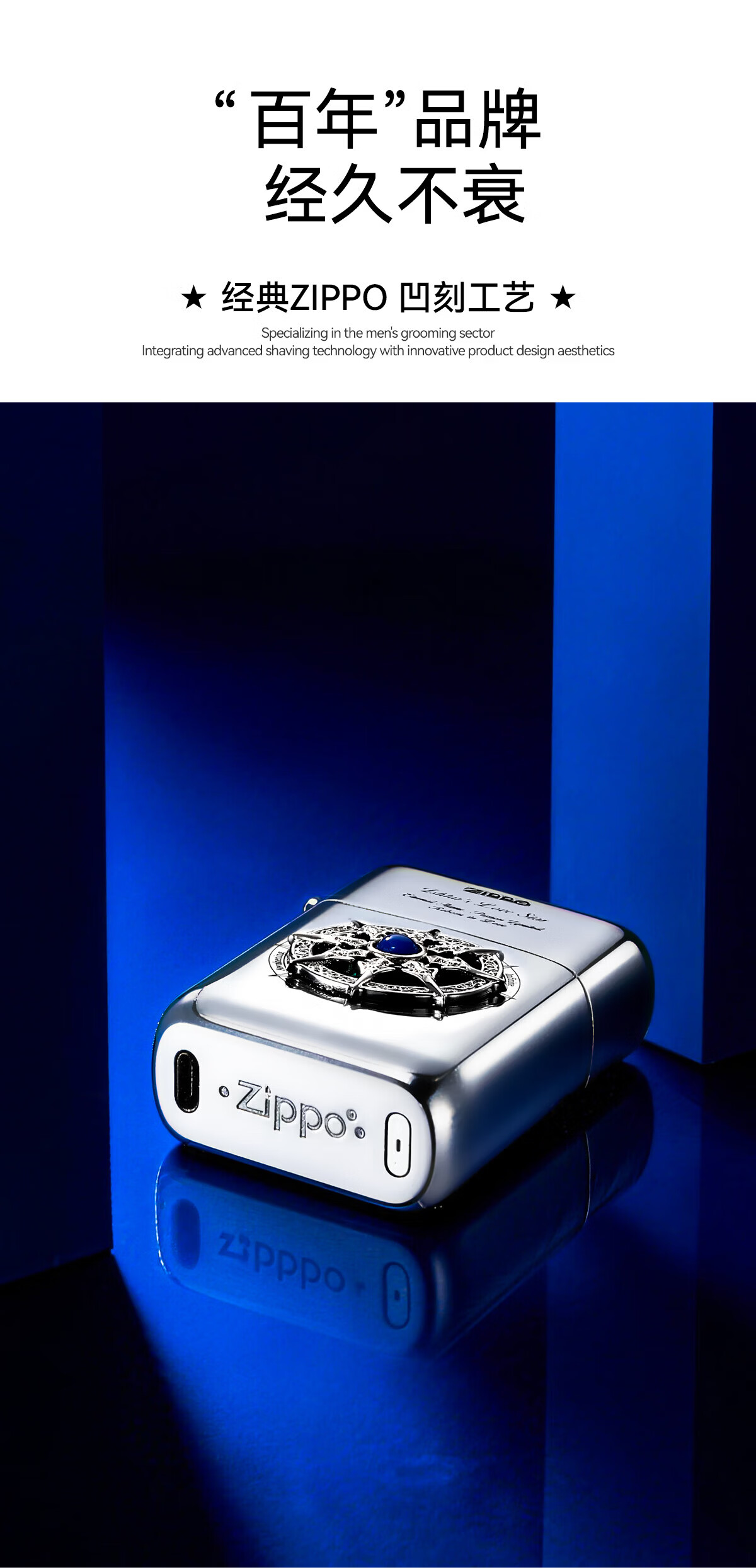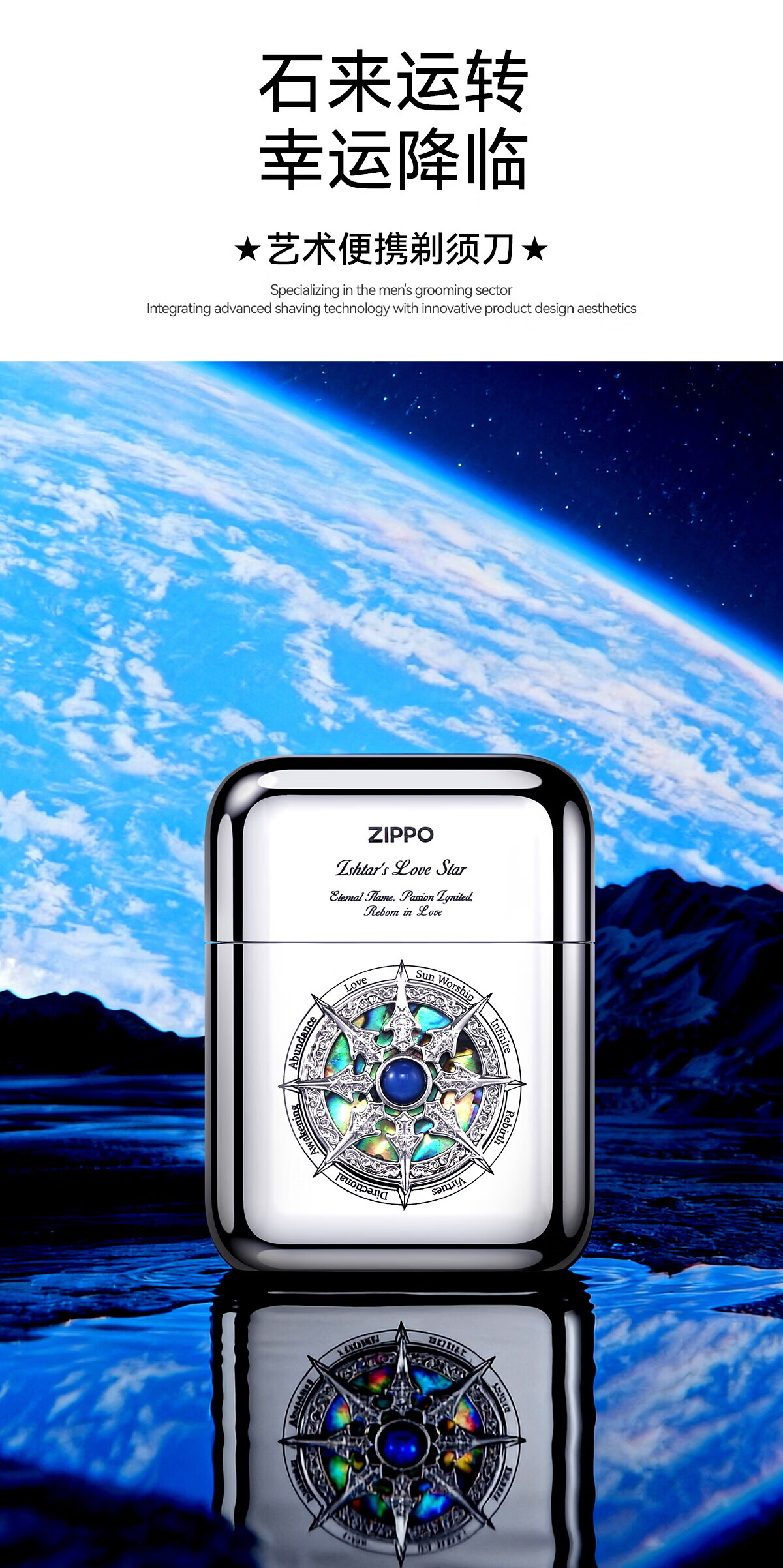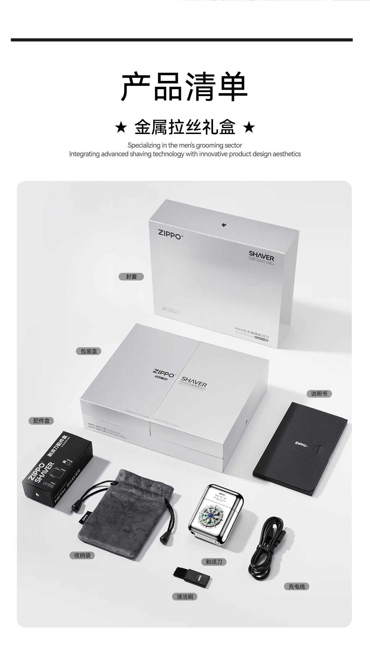 ZIPPO艺术剃须刀白冰幸运罗盘石来运转迷你便携旅行出差车载电动刮胡刀水洗送男友老公兄弟纪念生日礼物 白冰幸运罗盘+至臻礼盒 可刻字+代写贺卡