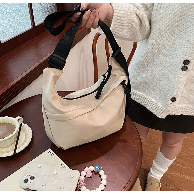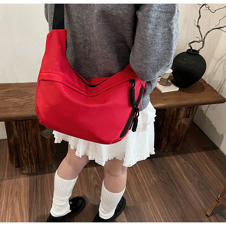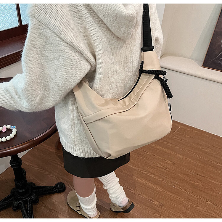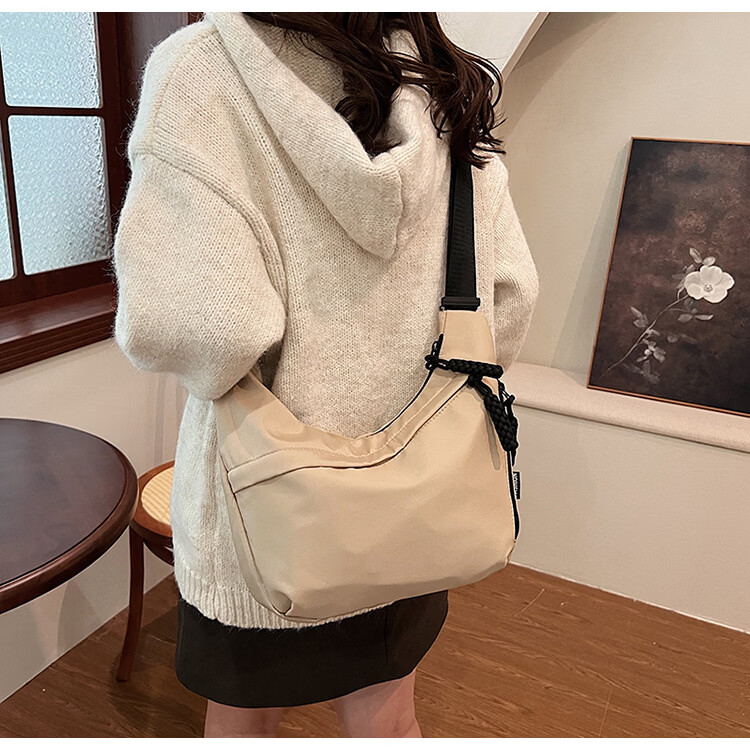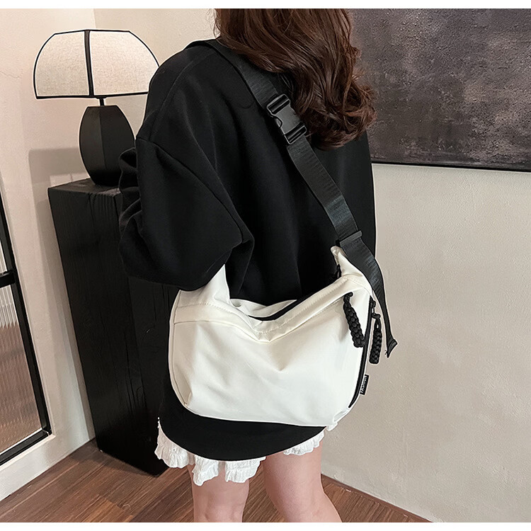 【优选】今年流行牛津布包包斜挎包女2024新款休闲单肩学生上课通 黑色