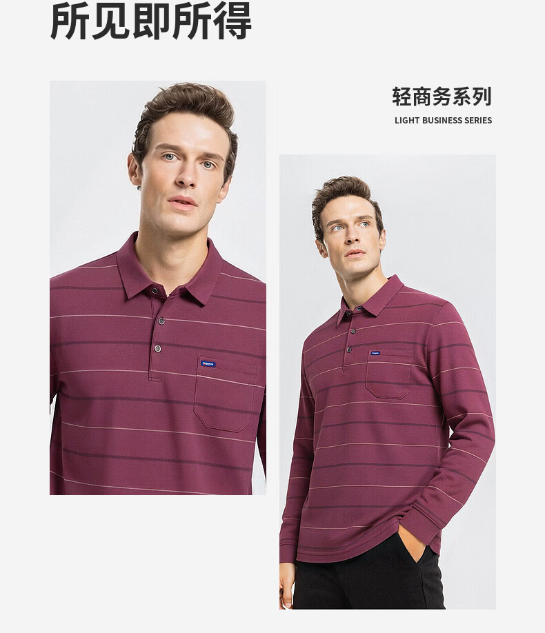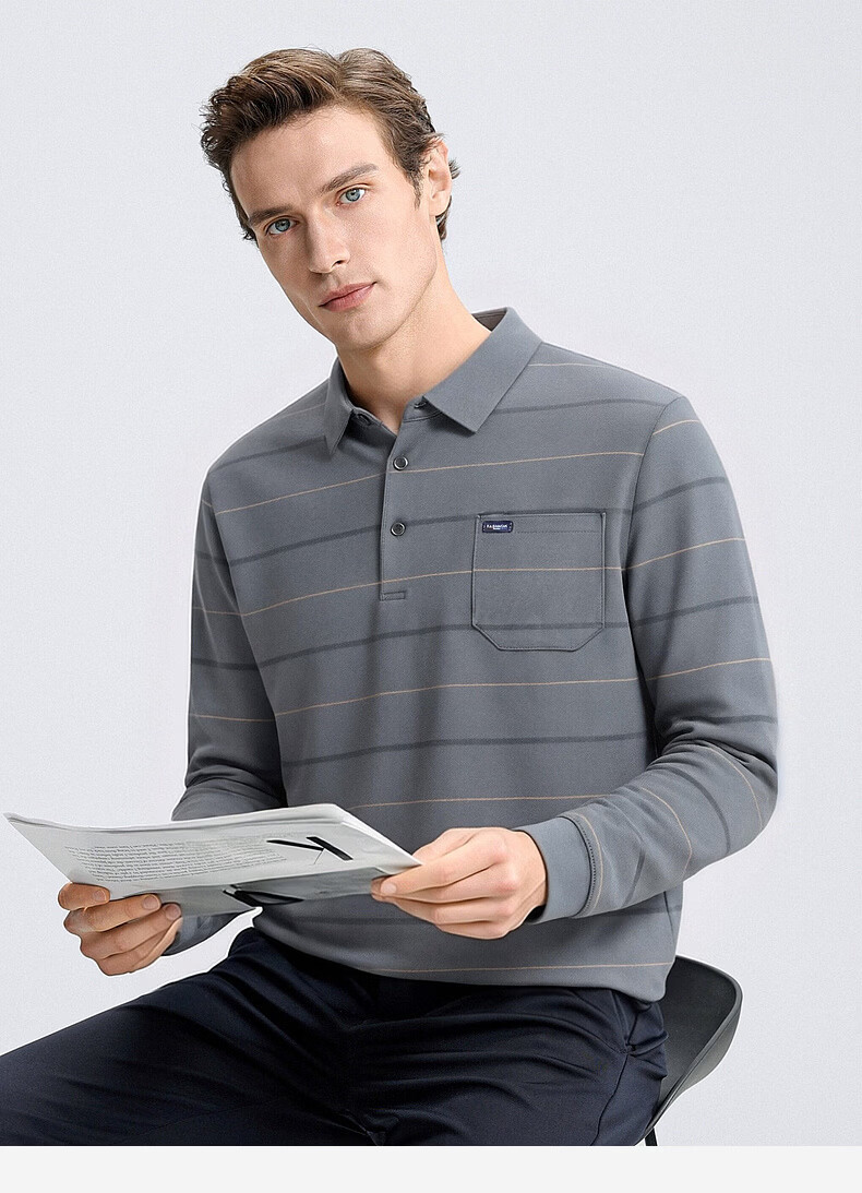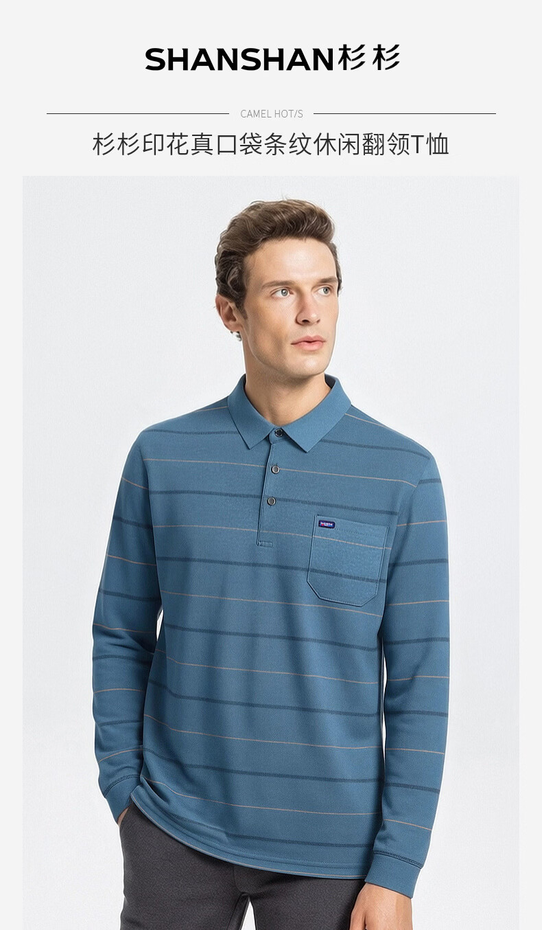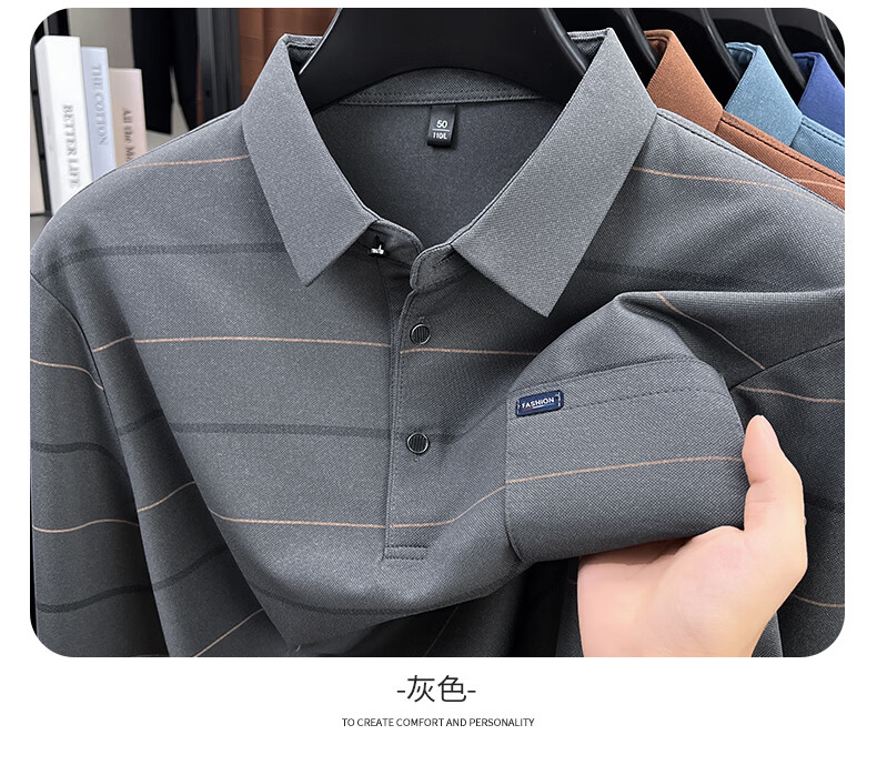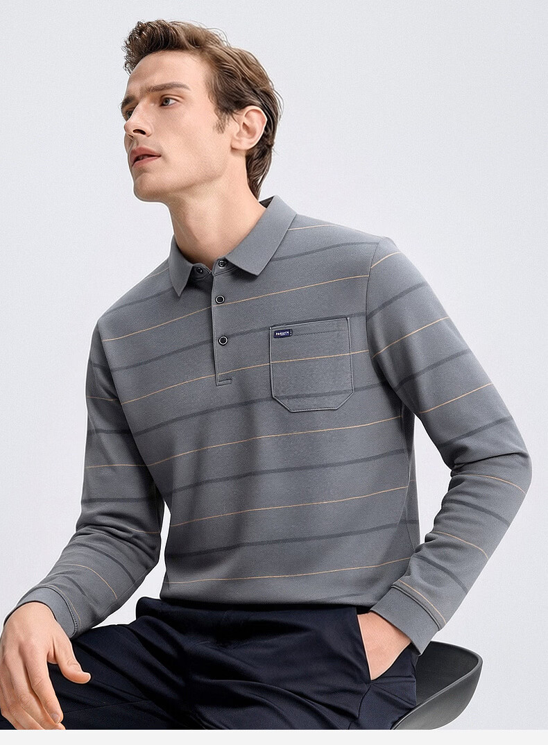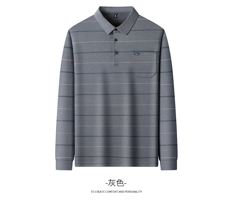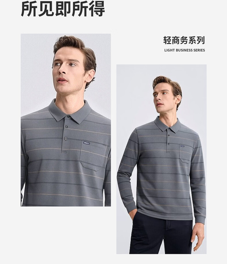 SHANSHAN杉杉【锦氨弹力印花】长袖t恤男翻领POLO衫打底休闲百搭春秋新款 灰色 M /170