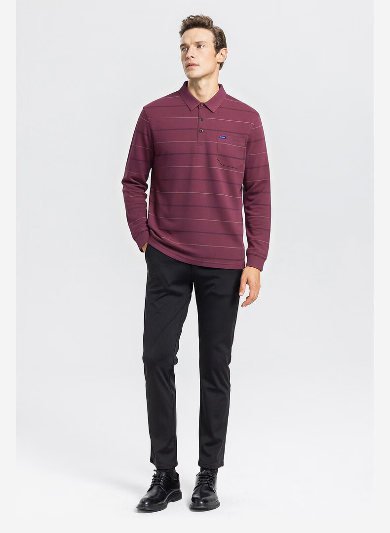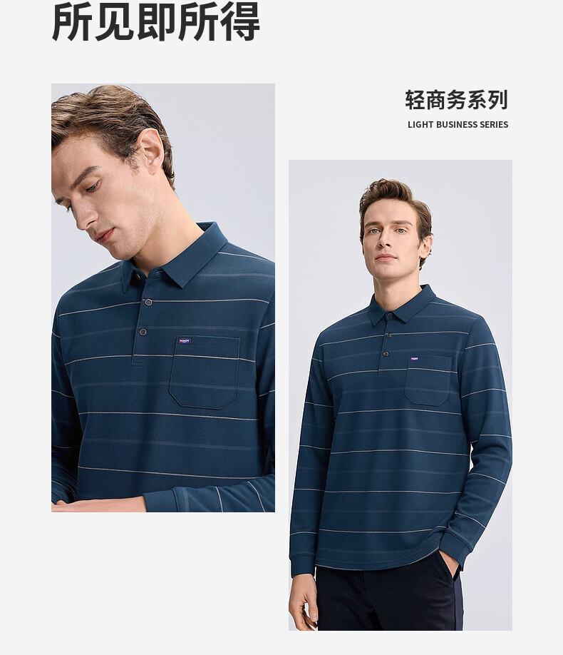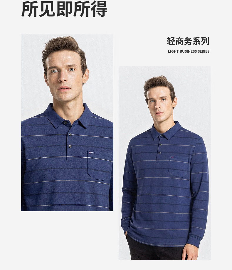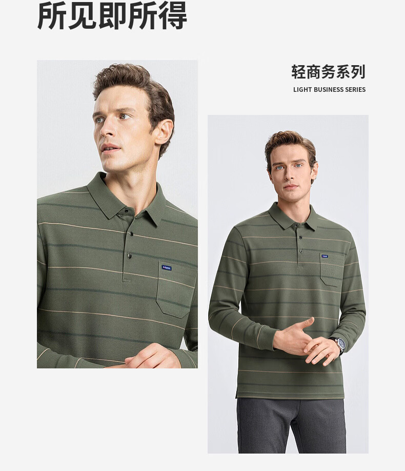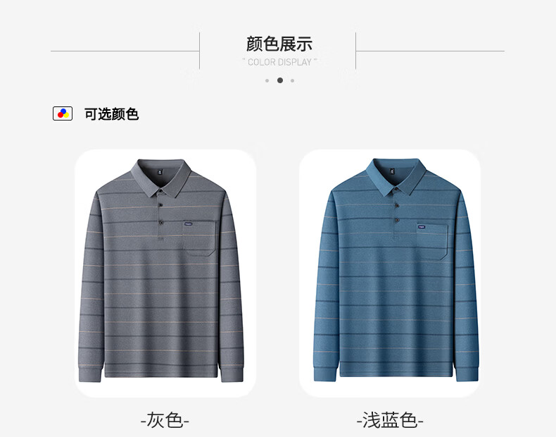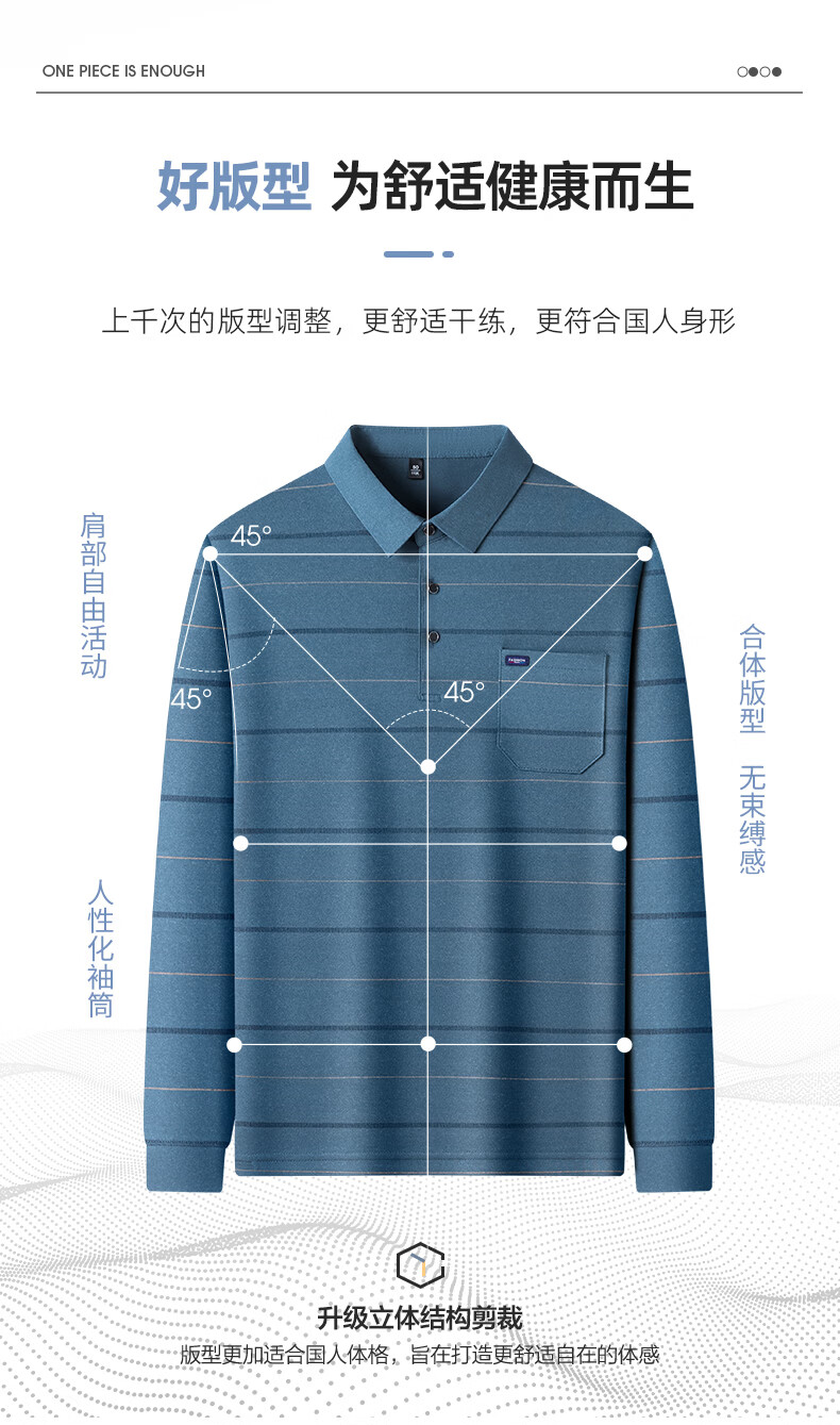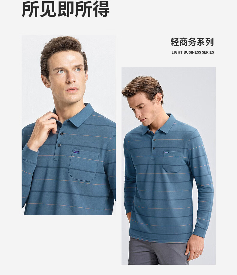 SHANSHAN杉杉【锦氨弹力印花】长袖t恤男翻领POLO衫打底休闲百搭春秋新款 灰色 M /170