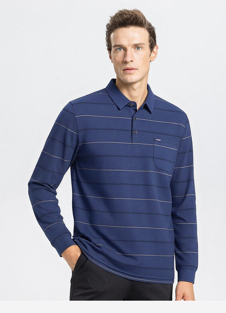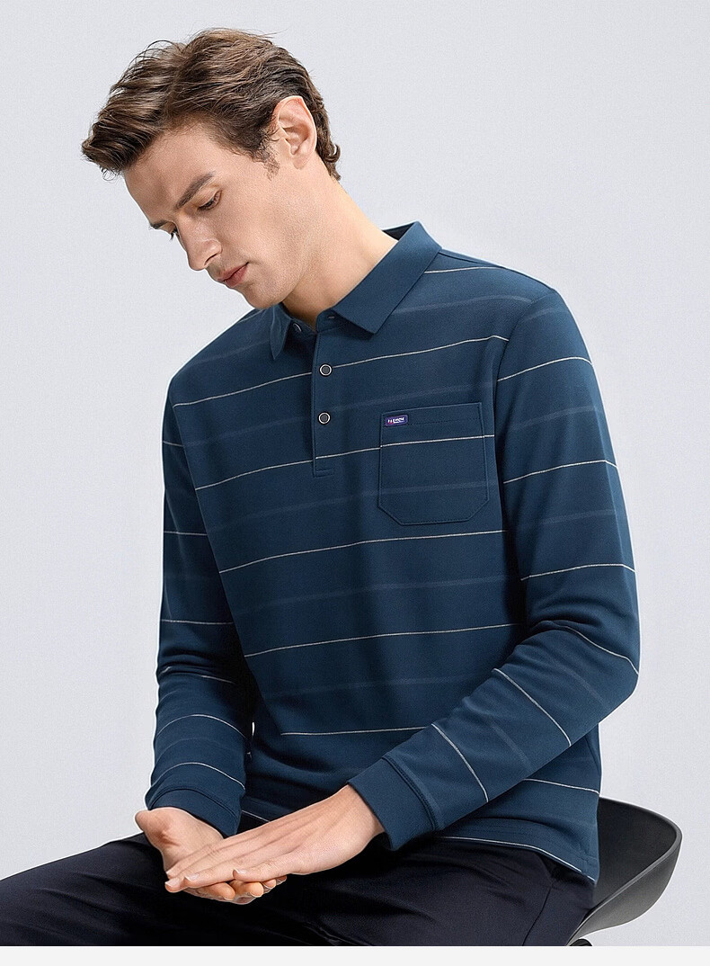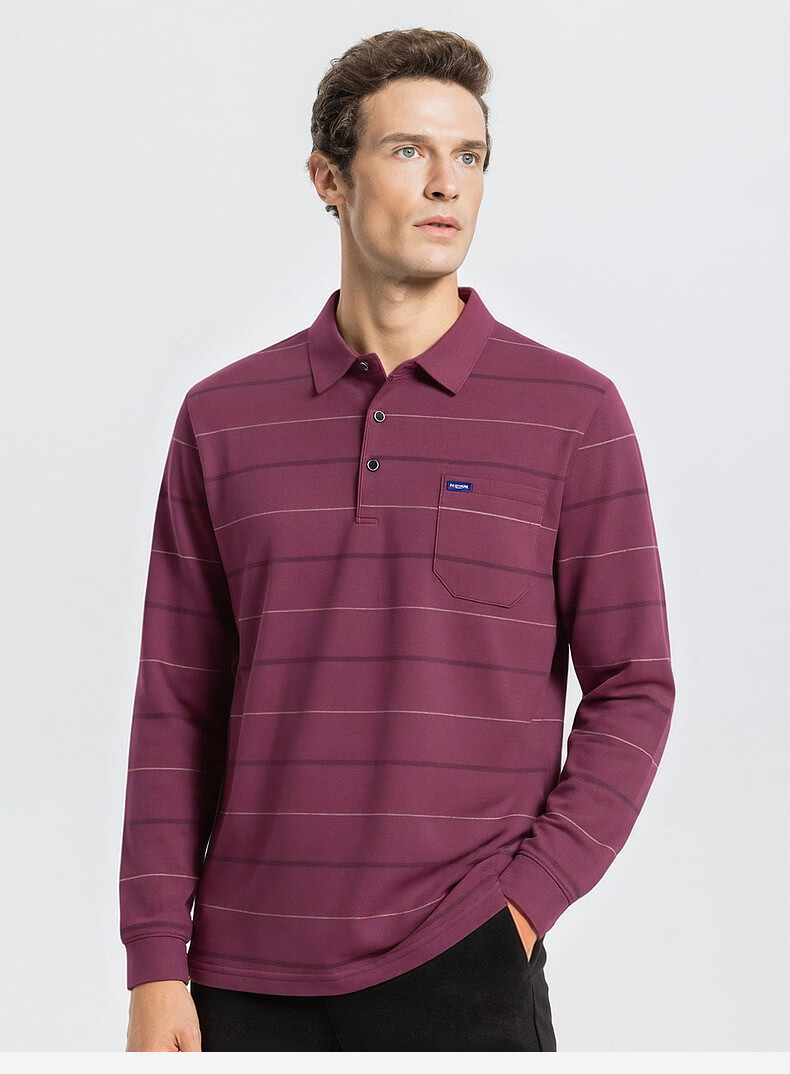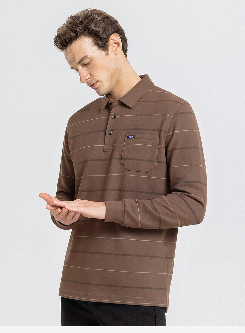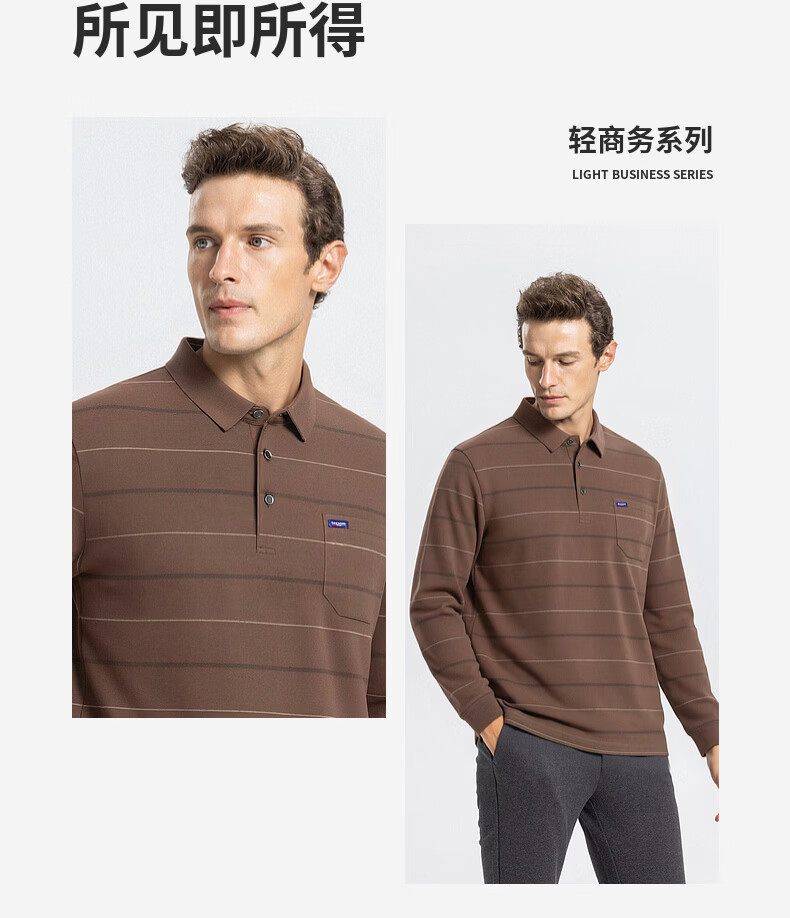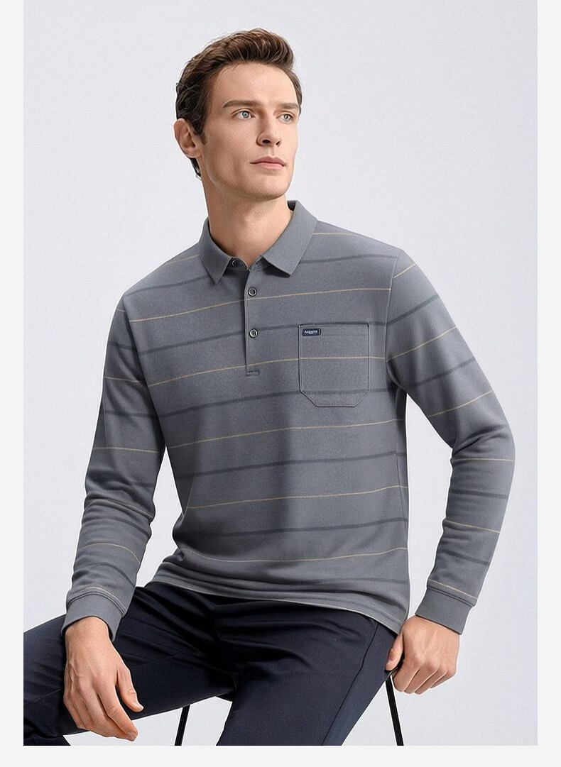 SHANSHAN杉杉【锦氨弹力印花】长袖t恤男翻领POLO衫打底休闲百搭春秋新款 灰色 M /170