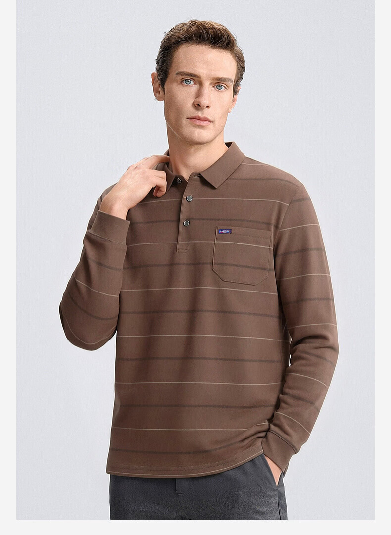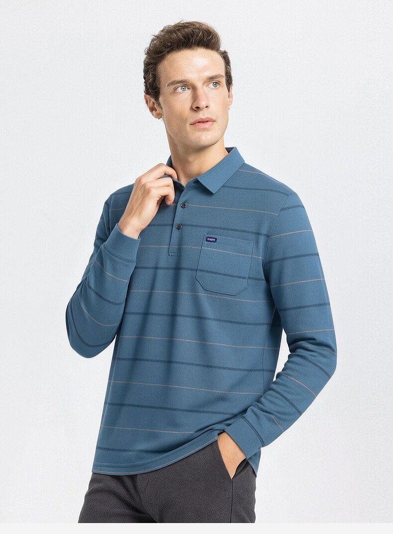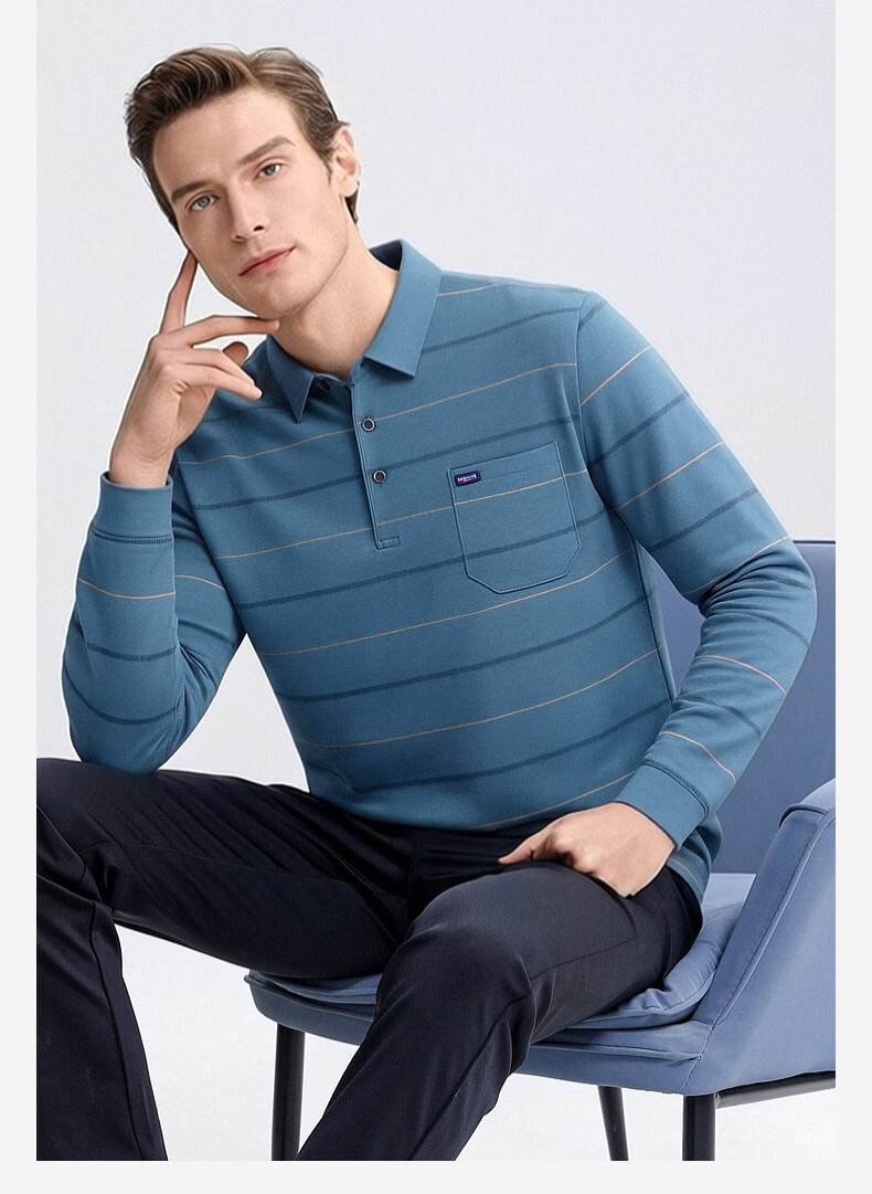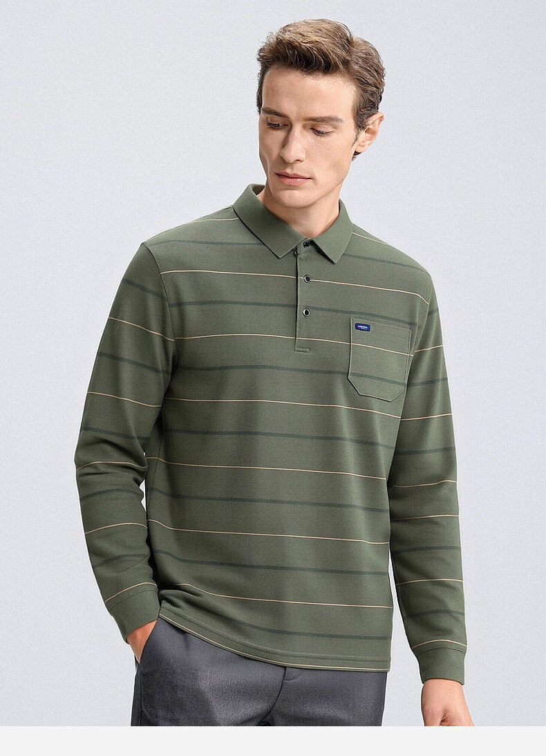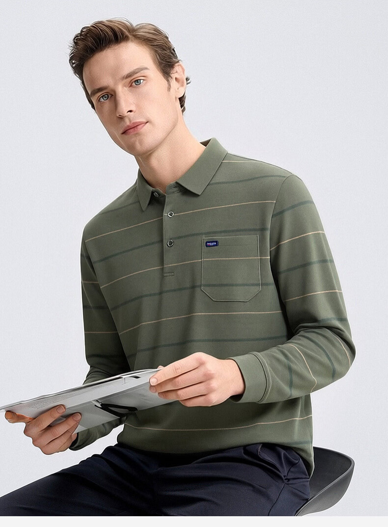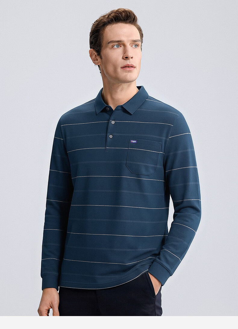SHANSHAN杉杉【锦氨弹力印花】长袖t恤男翻领POLO衫打底休闲百搭春秋新款 灰色 M /170