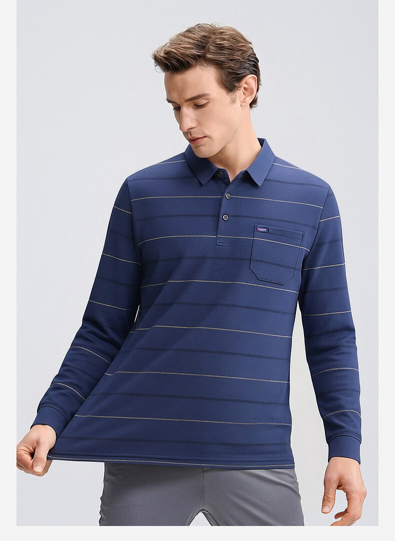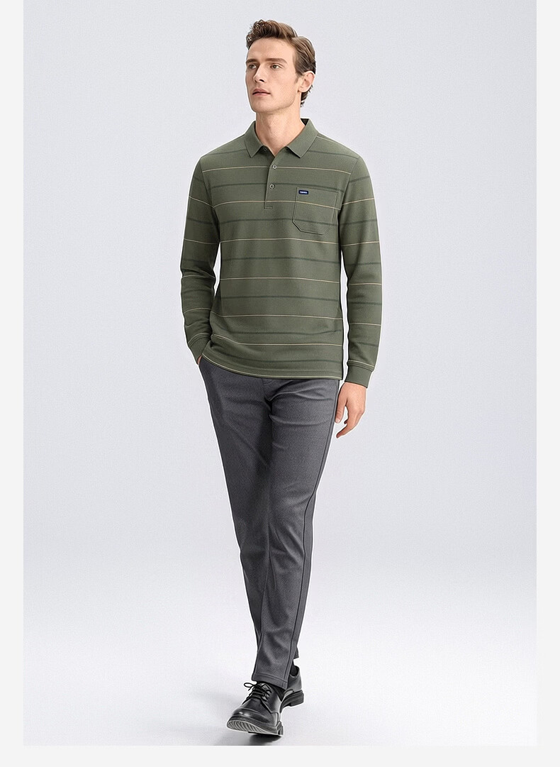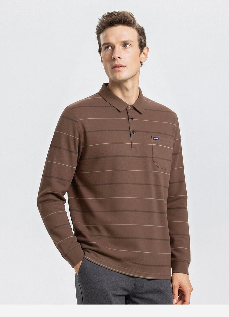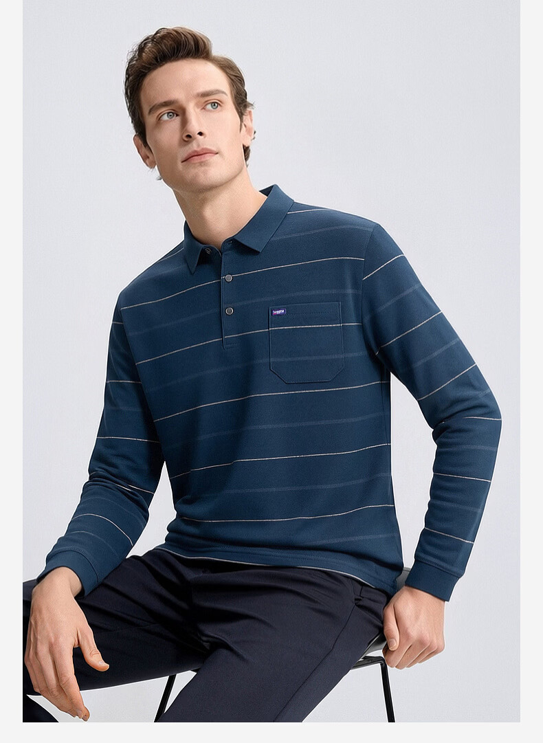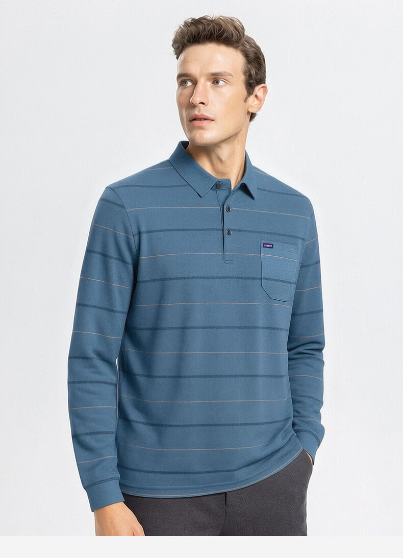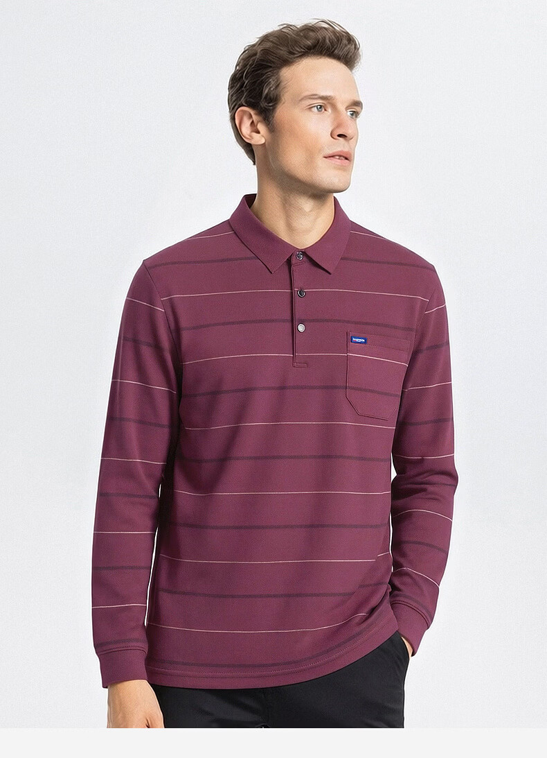 SHANSHAN杉杉【锦氨弹力印花】长袖t恤男翻领POLO衫打底休闲百搭春秋新款 灰色 M /170