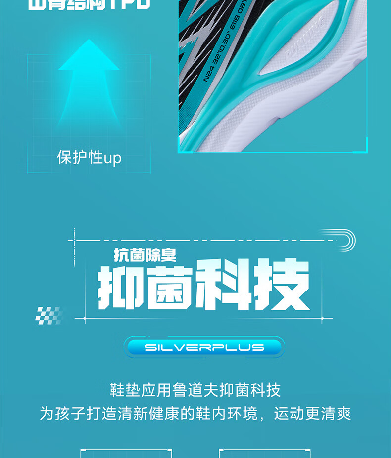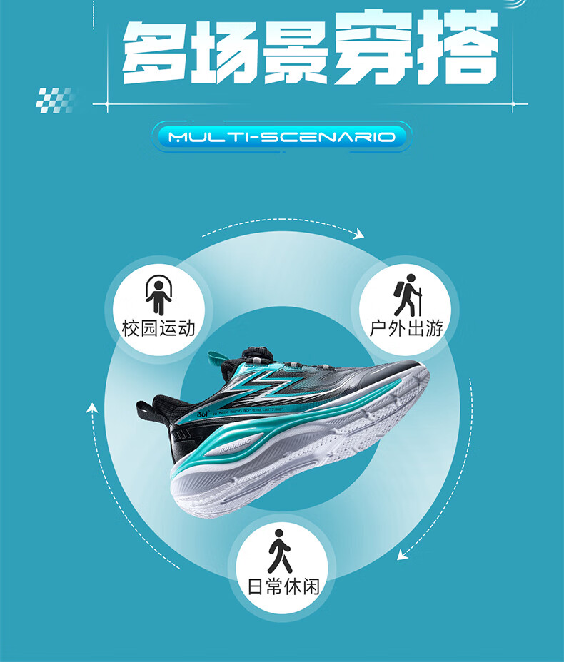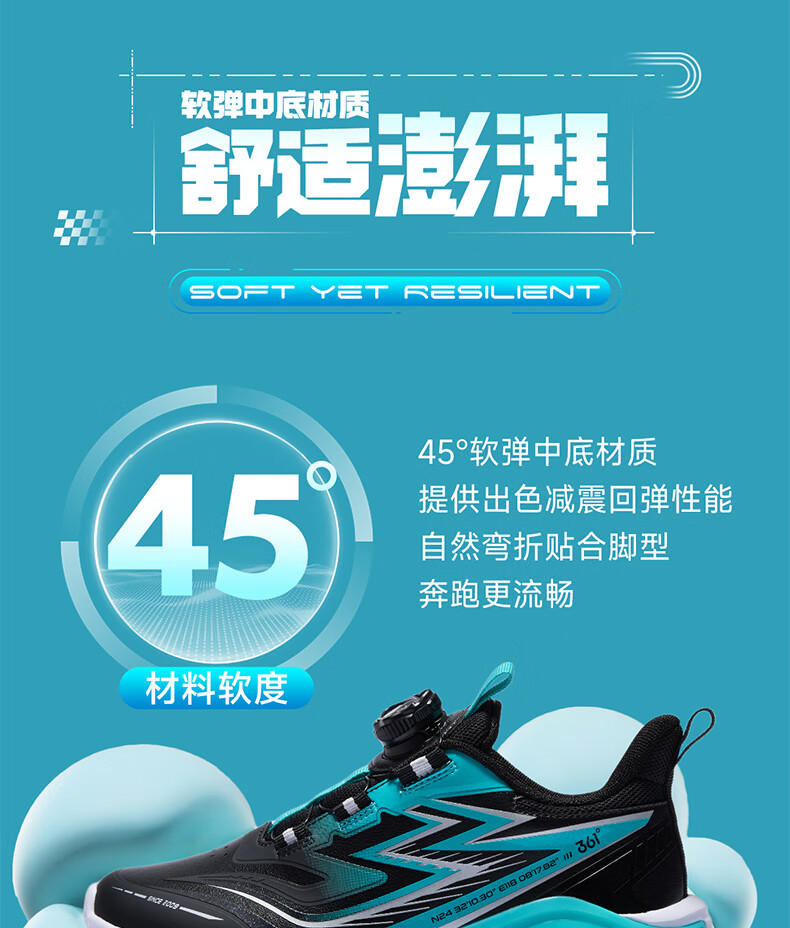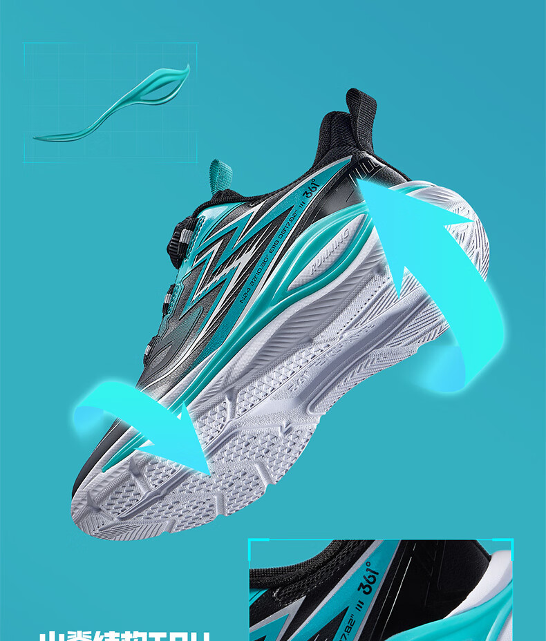 361°飞翼2.0儿童运动鞋25秋男女童减震软弹抗扭跑鞋 紫35