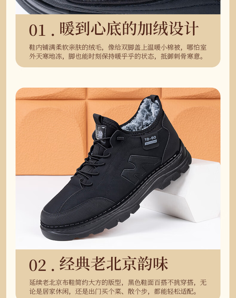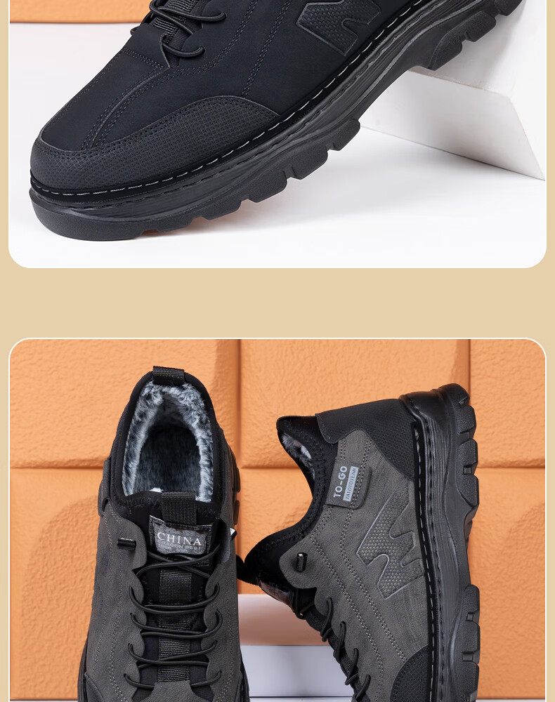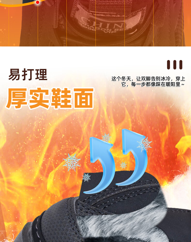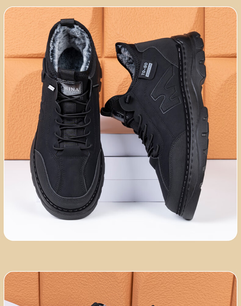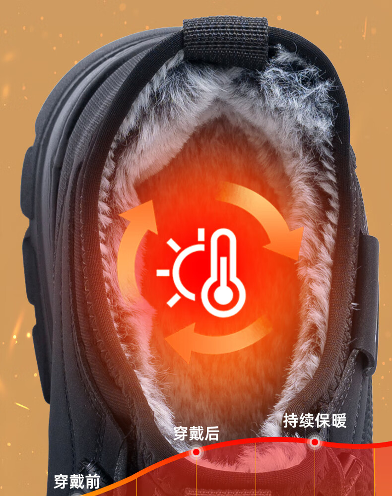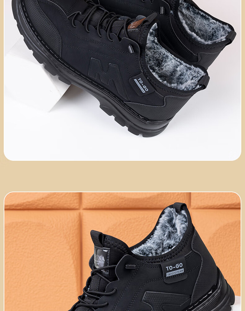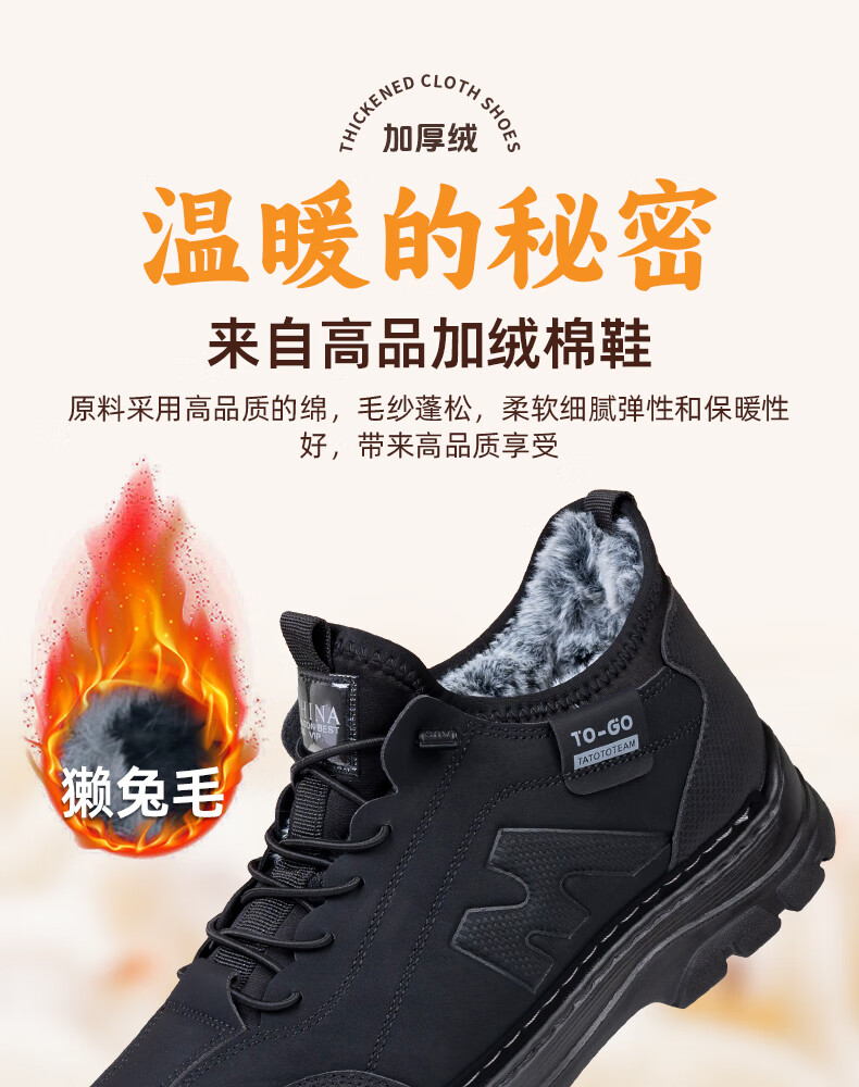 稻草人(MEXICAN)冬季新款加厚保暖棉鞋男款高帮休闲运动鞋男士加厚防滑耐磨老爹鞋 保暖棉靴-黑色【厚实兔毛】 39