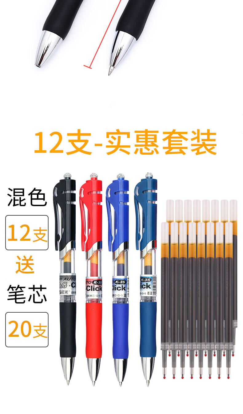 晨光(M&G)k35按动中性笔0.5子弹头签字笔黑笔中性笔经典办公商务笔速干大容量学生用考试刷题碳素水笔 【黑色】12支装