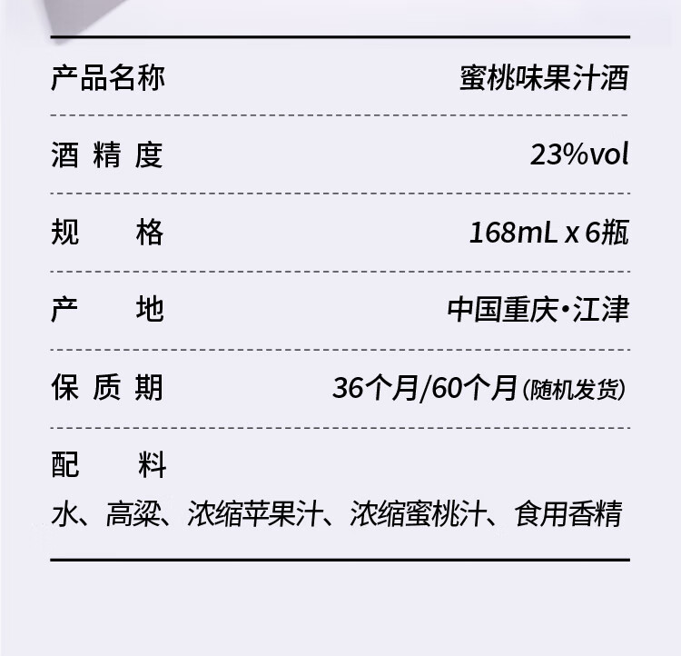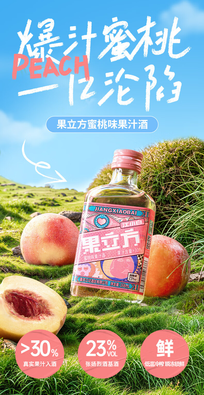 果立方果汁酒 蜜桃味果汁酒 168ml*6瓶 整箱装23度 年货送礼