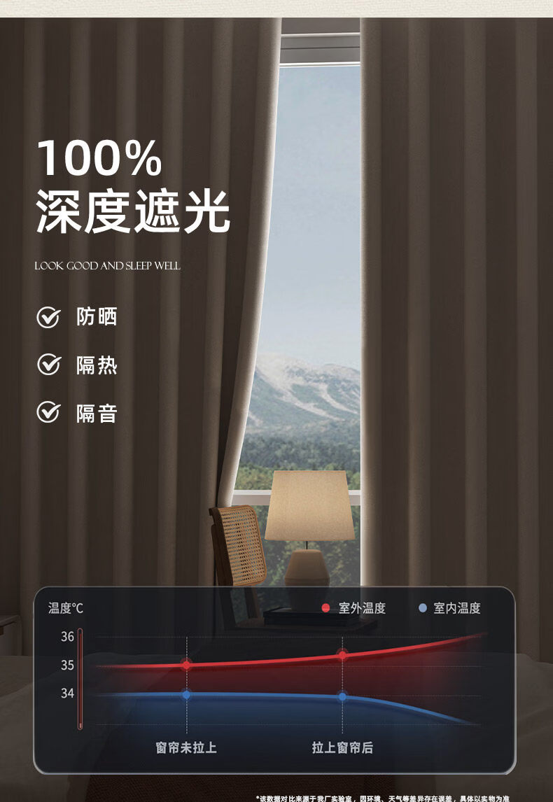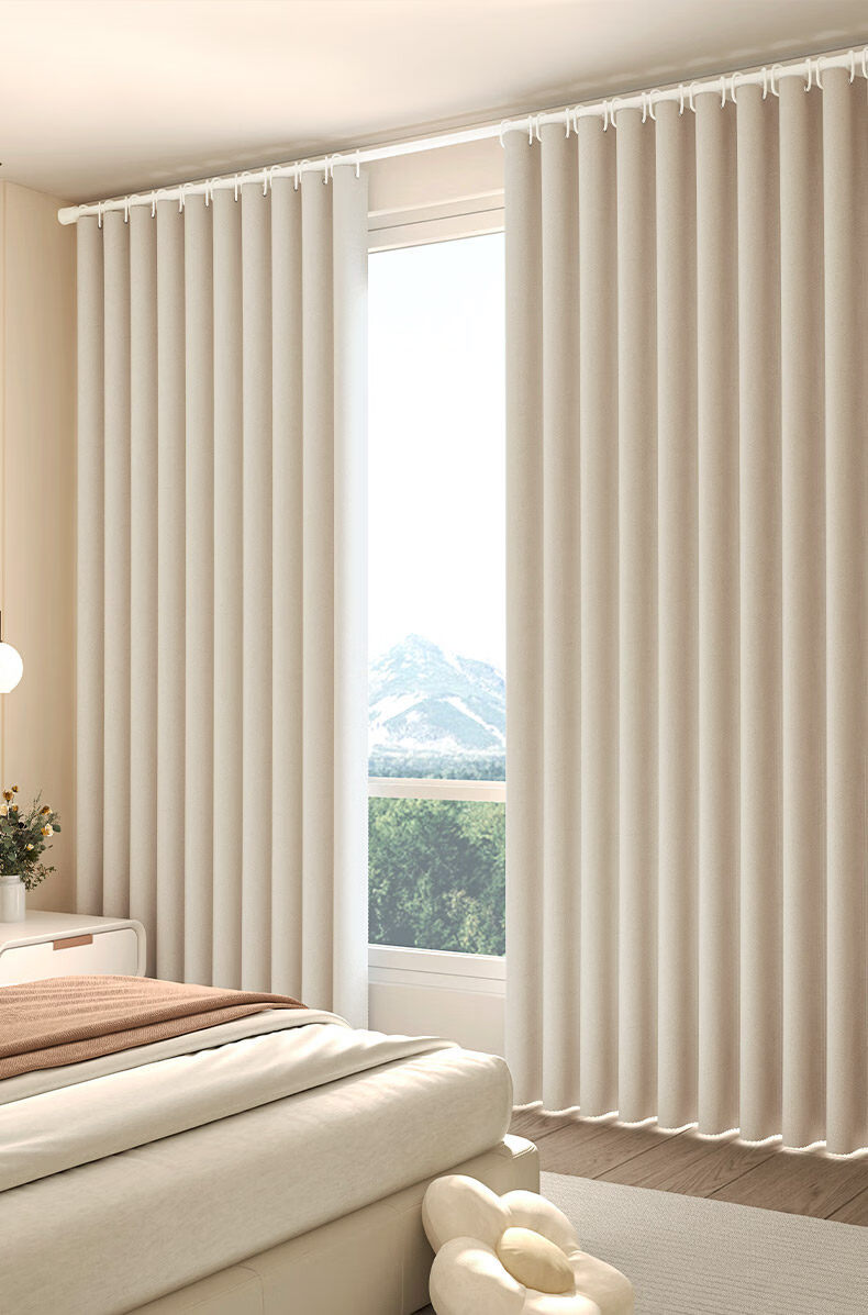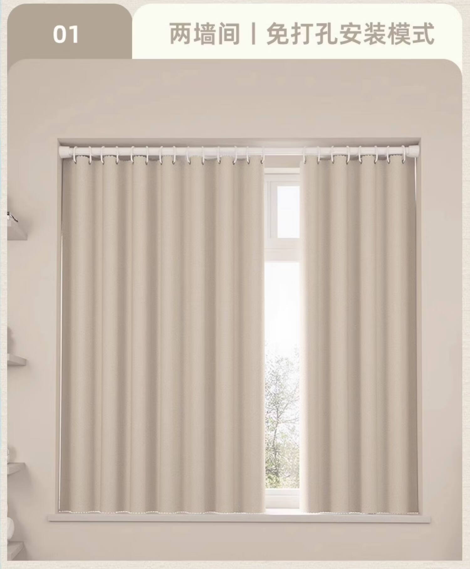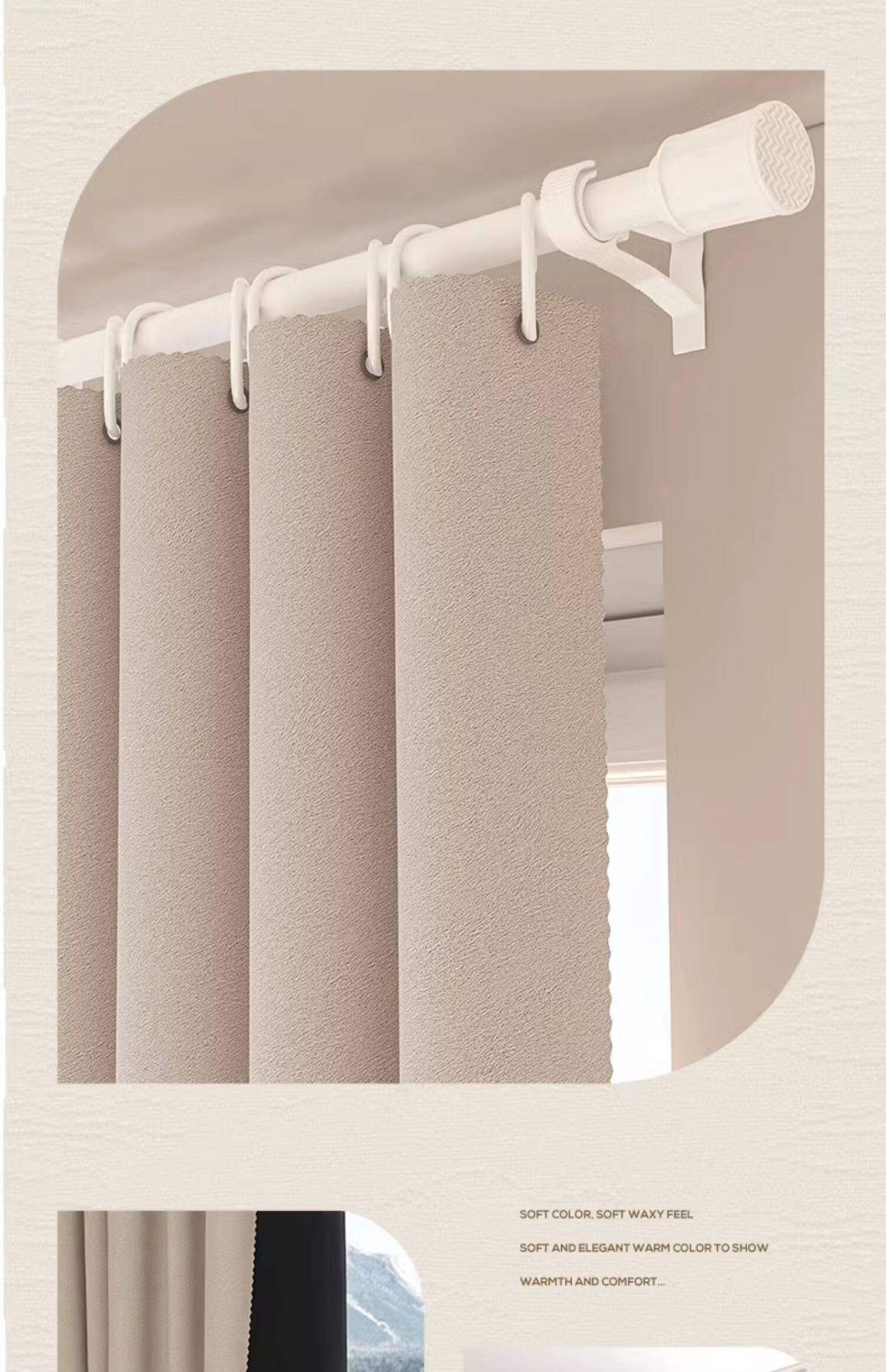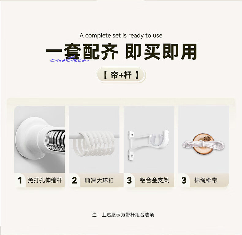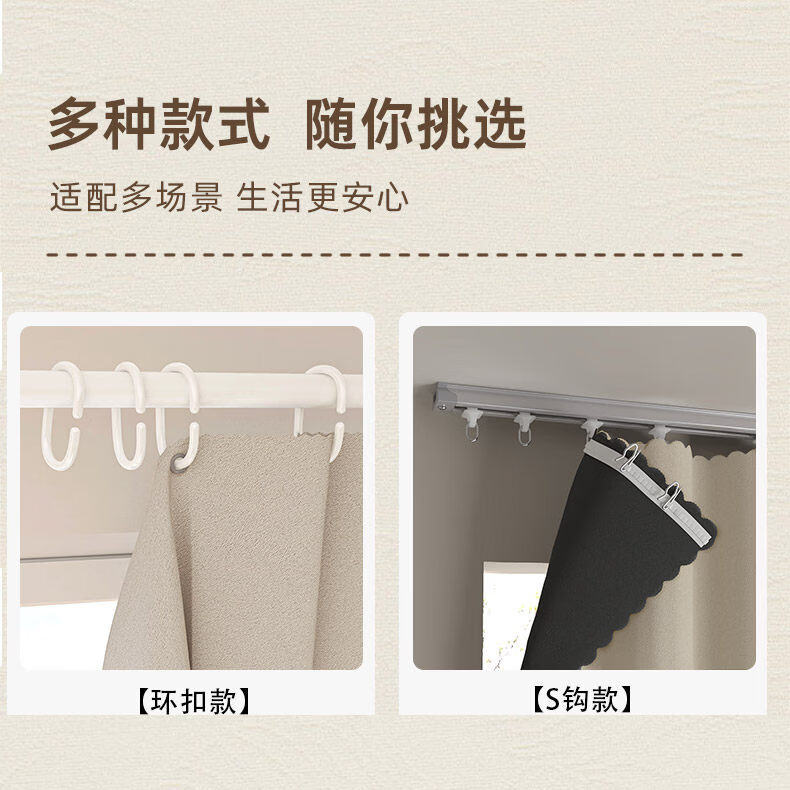 高睿全遮光窗帘遮阳布卧室成品阳台隔热防晒窗户简易帘免打孔送伸缩杆 含杆(环扣款)-蜜桃粉【黑金覆盖0透光】 宽2.0x高2.0一片【遮光隔热防晒三合一】