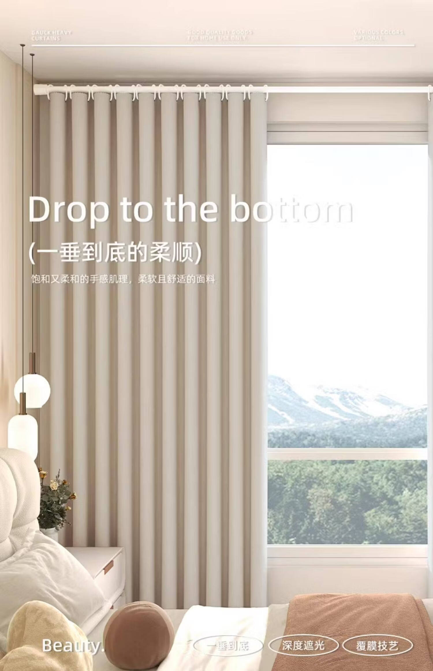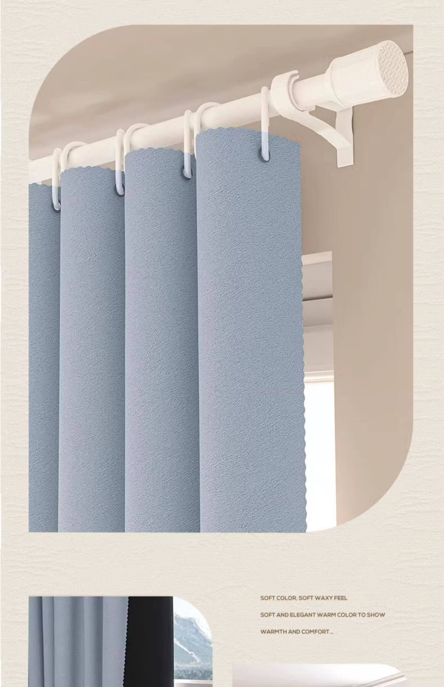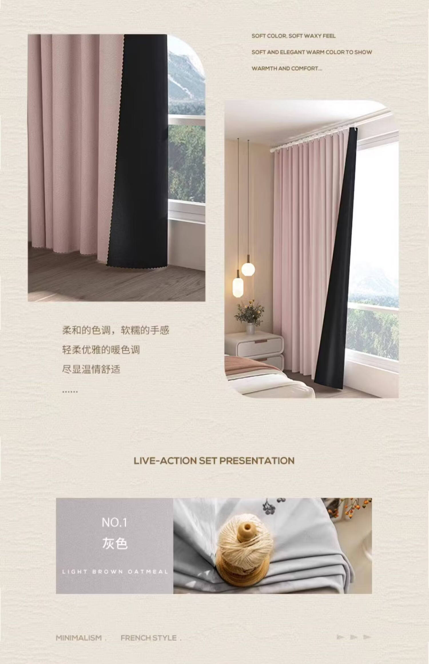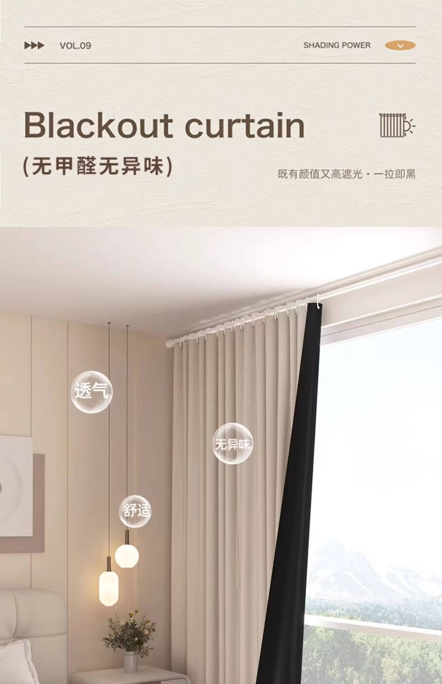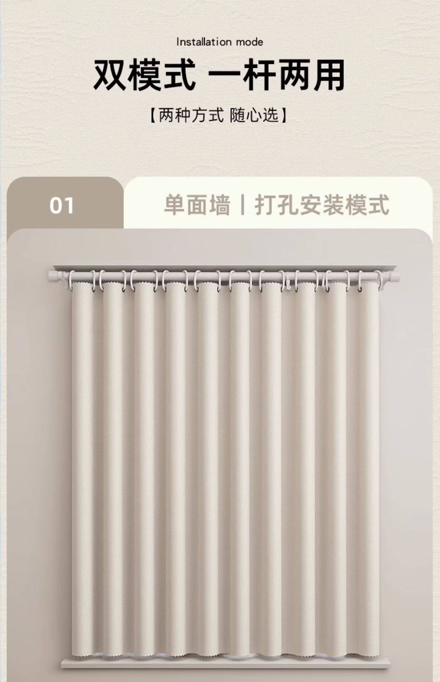 高睿全遮光窗帘遮阳布卧室成品阳台隔热防晒窗户简易帘免打孔送伸缩杆 含杆(环扣款)-蜜桃粉【黑金覆盖0透光】 宽2.0x高2.0一片【遮光隔热防晒三合一】