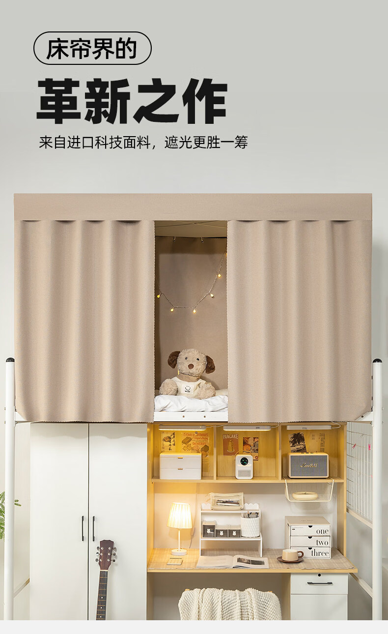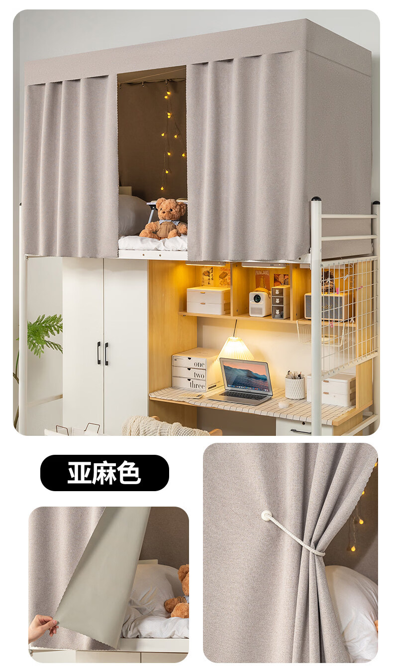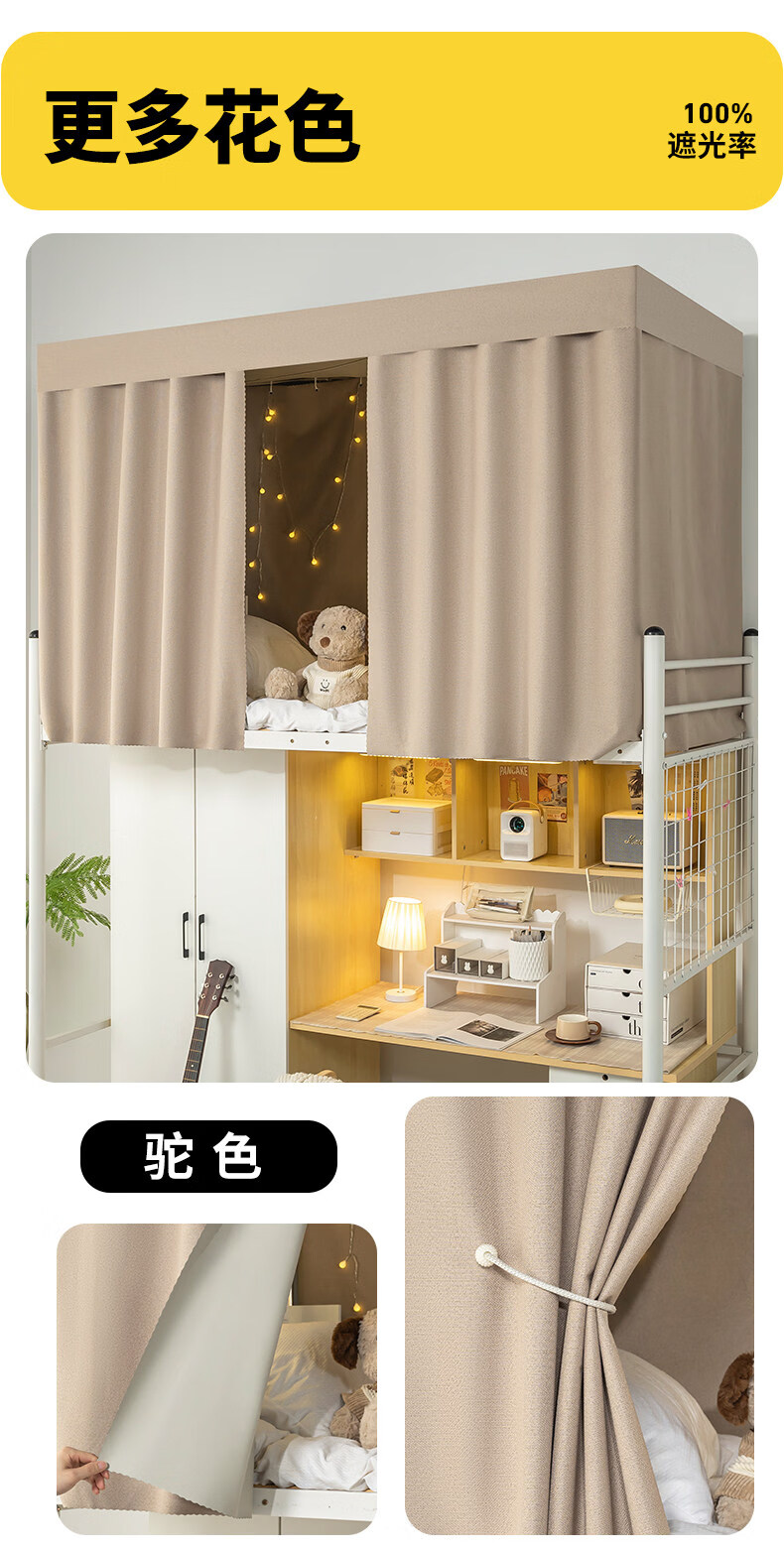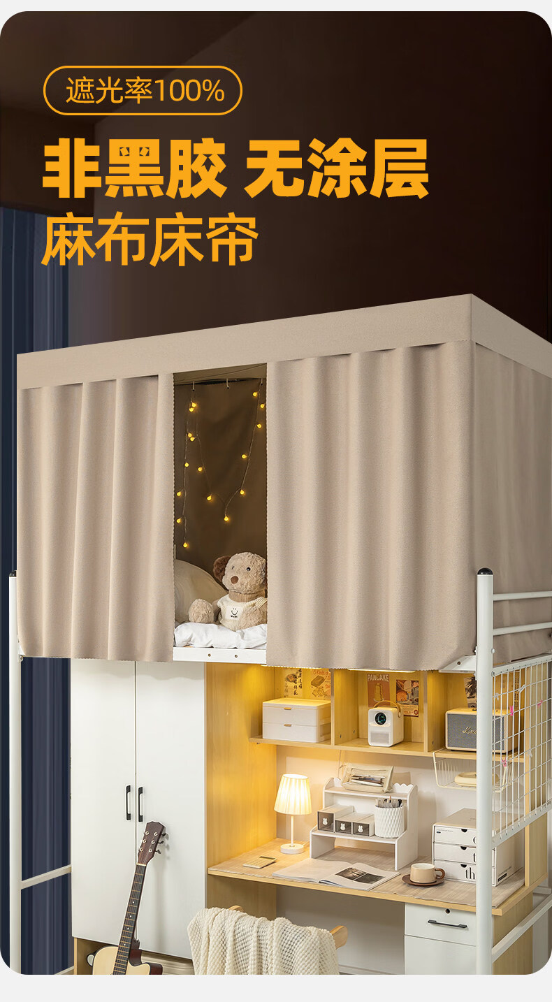 云瑾棉麻加厚宿舍床帘上铺下铺强遮光布帘子寝室遮挡帘这遮光布帘 驼色(加厚麻布,100%遮光) 120cm*200cm 下铺/1片帘(正面)