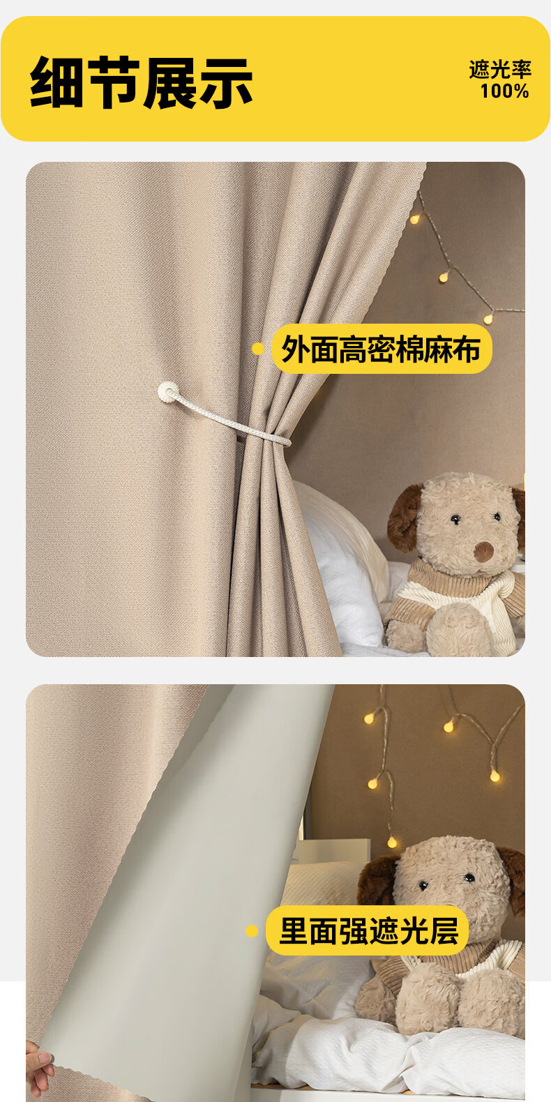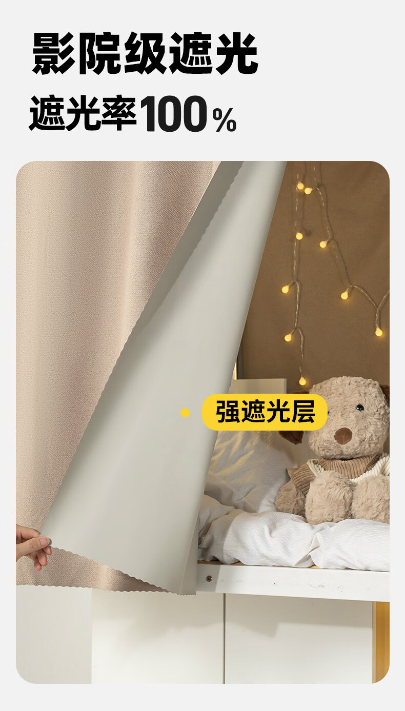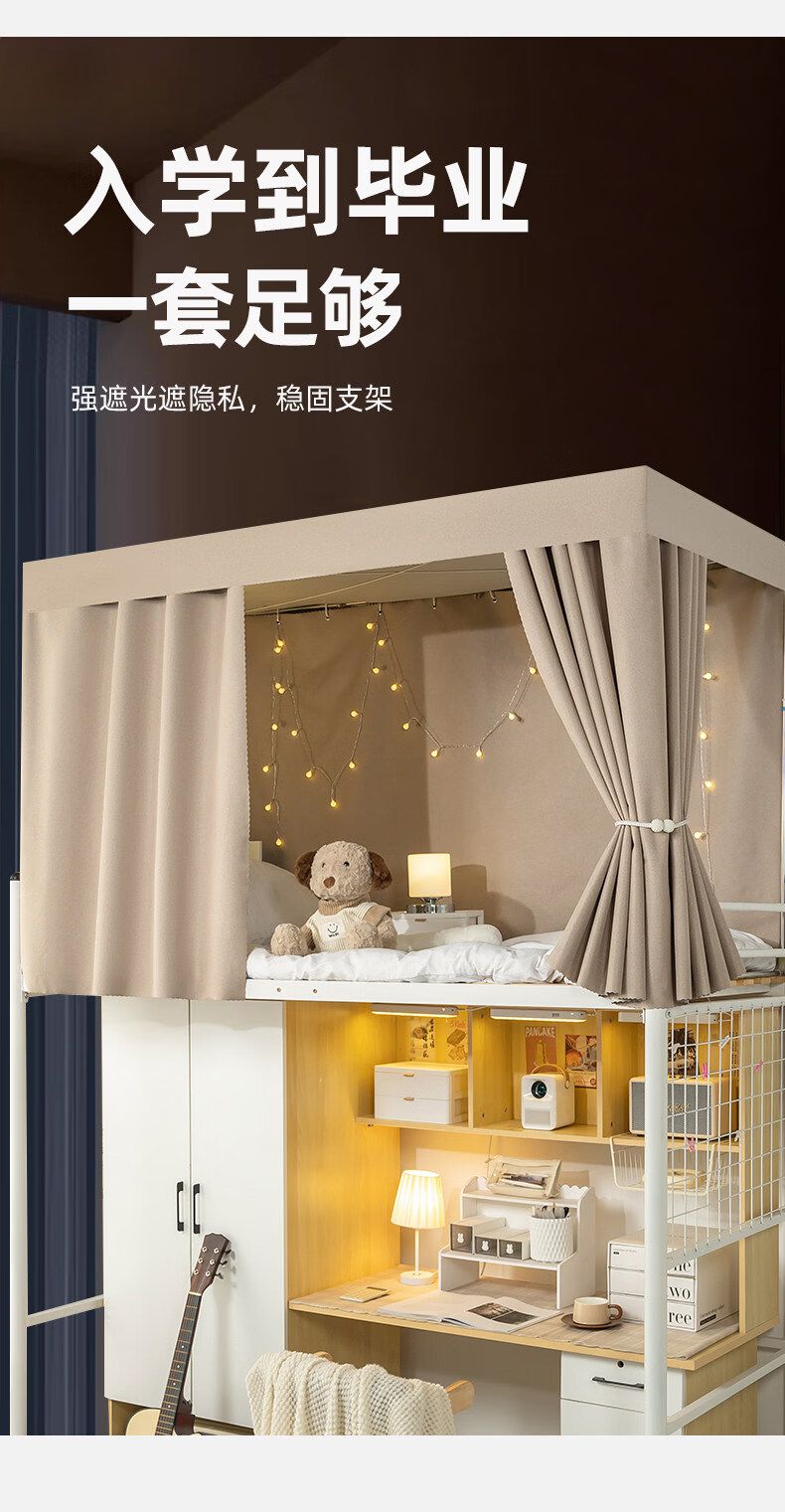 云瑾棉麻加厚宿舍床帘上铺下铺强遮光布帘子寝室遮挡帘这遮光布帘 驼色(加厚麻布,100%遮光) 120cm*200cm 下铺/1片帘(正面)