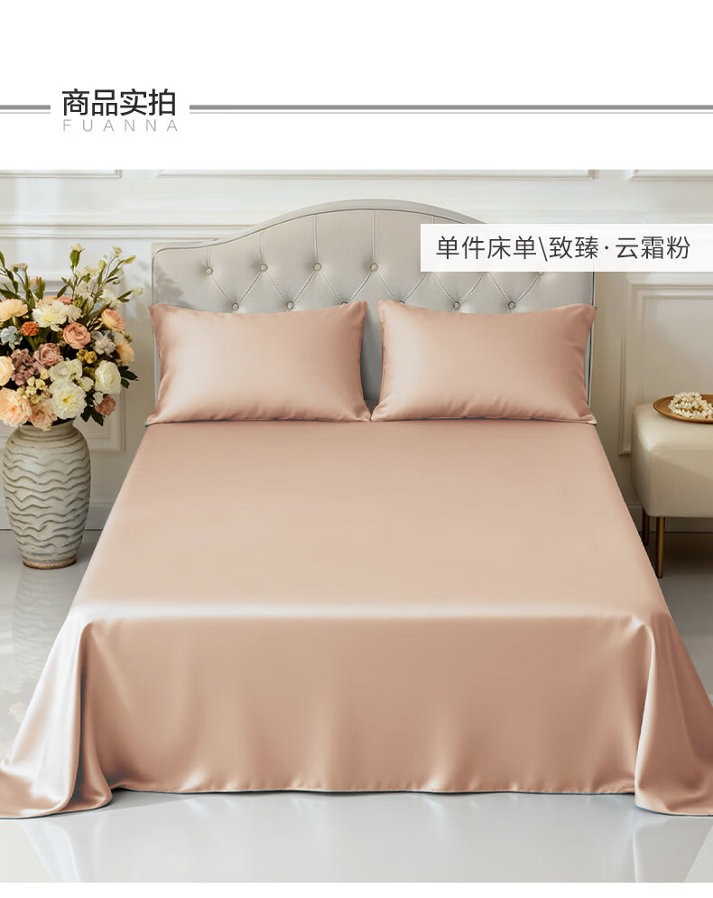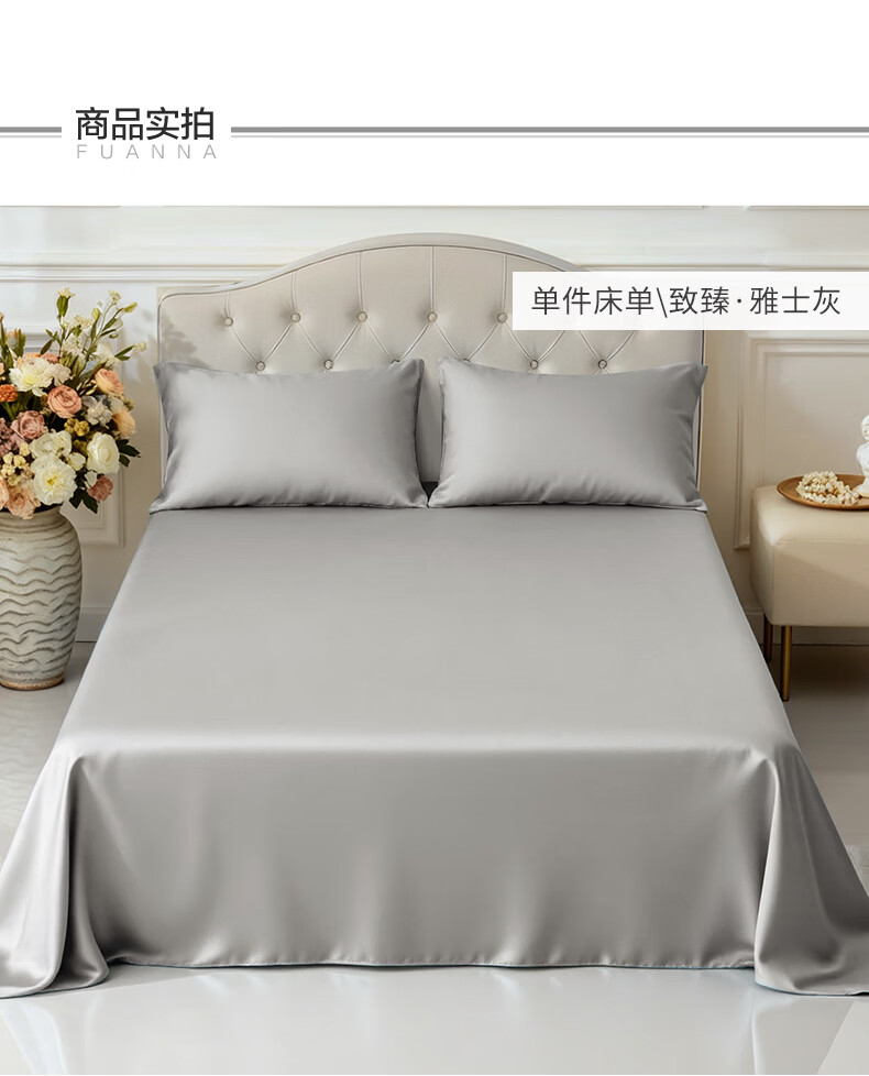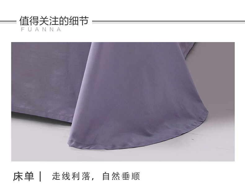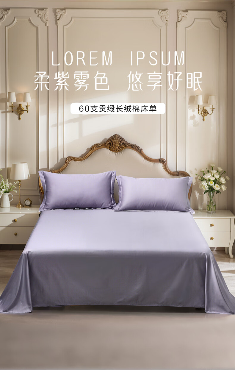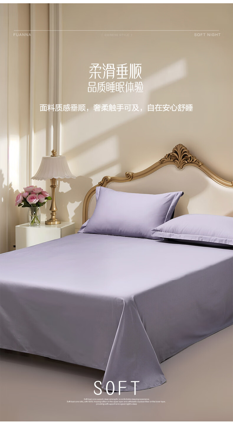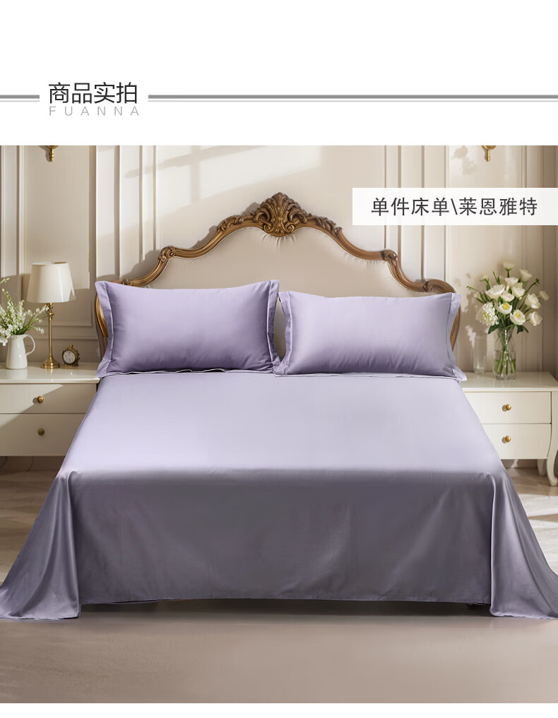 富安娜 全棉60支床单单件 100%纯棉床盖单件 可水洗双人床单件被单铺单 【60S长绒棉贡缎】浅紫 1.2米床适用/180cm*240cm