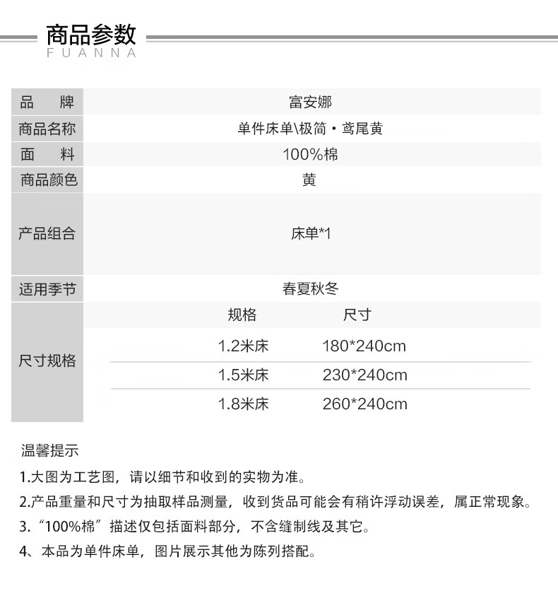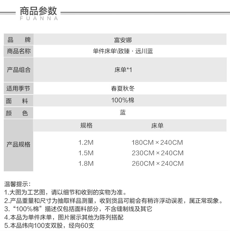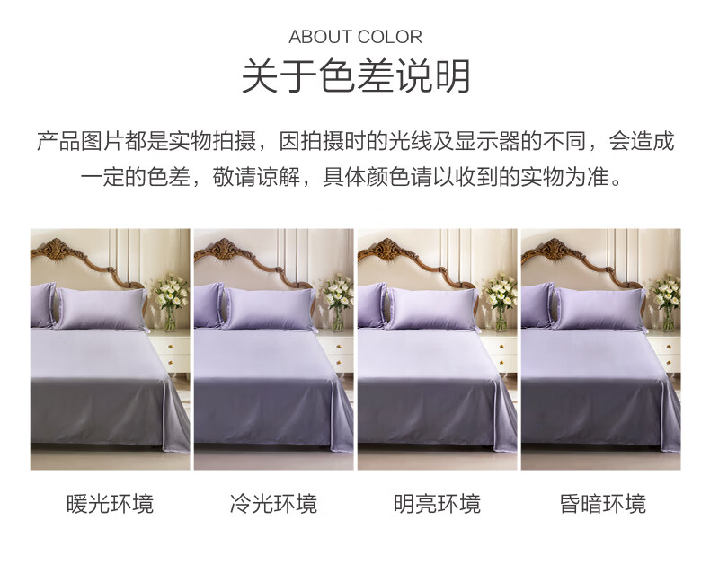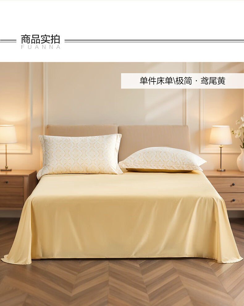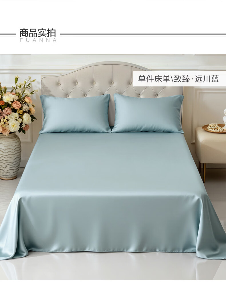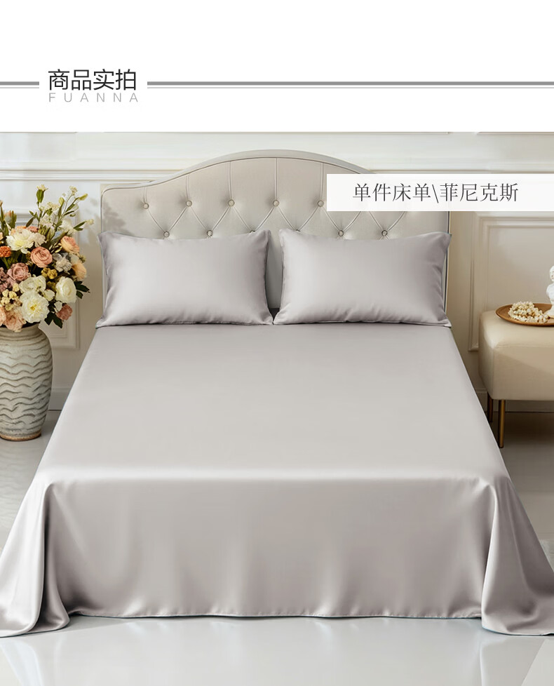 富安娜 全棉60支床单单件 100%纯棉床盖单件 可水洗双人床单件被单铺单 【60S长绒棉贡缎】浅紫 1.2米床适用/180cm*240cm