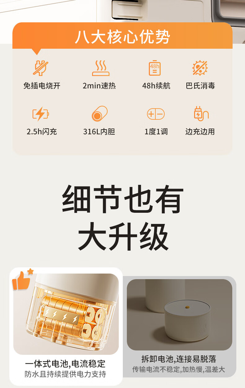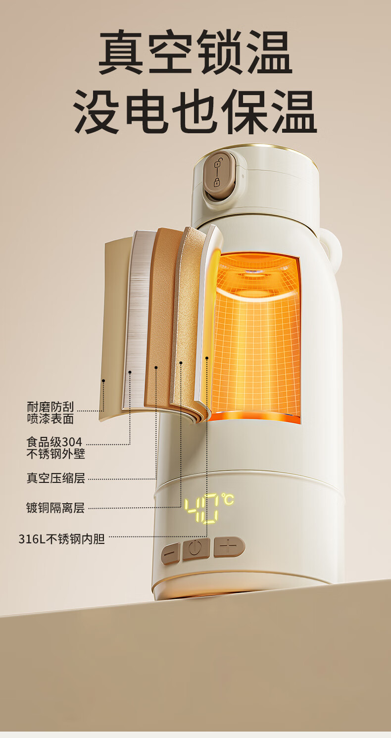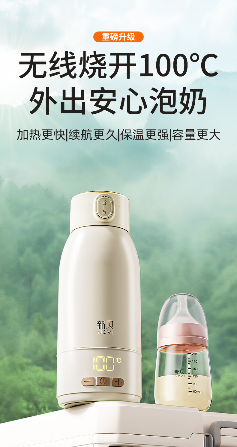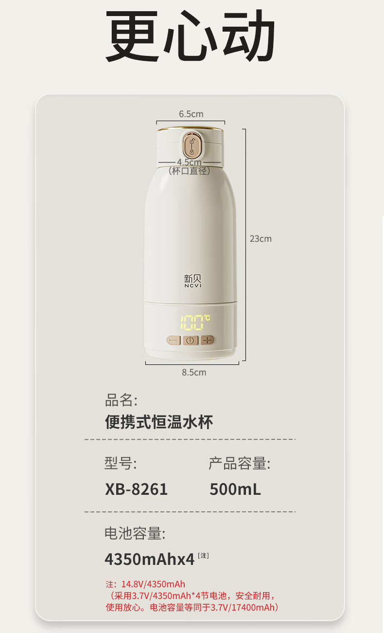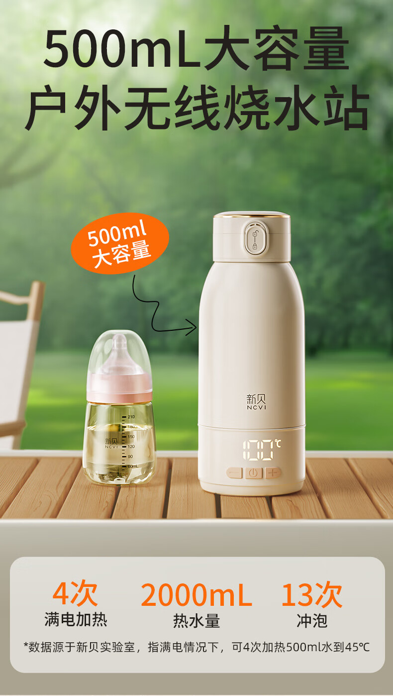 新贝恒温水壶 恒温壶婴儿冲奶 便携式热水壶 恒温杯保温杯烧水杯 8261
