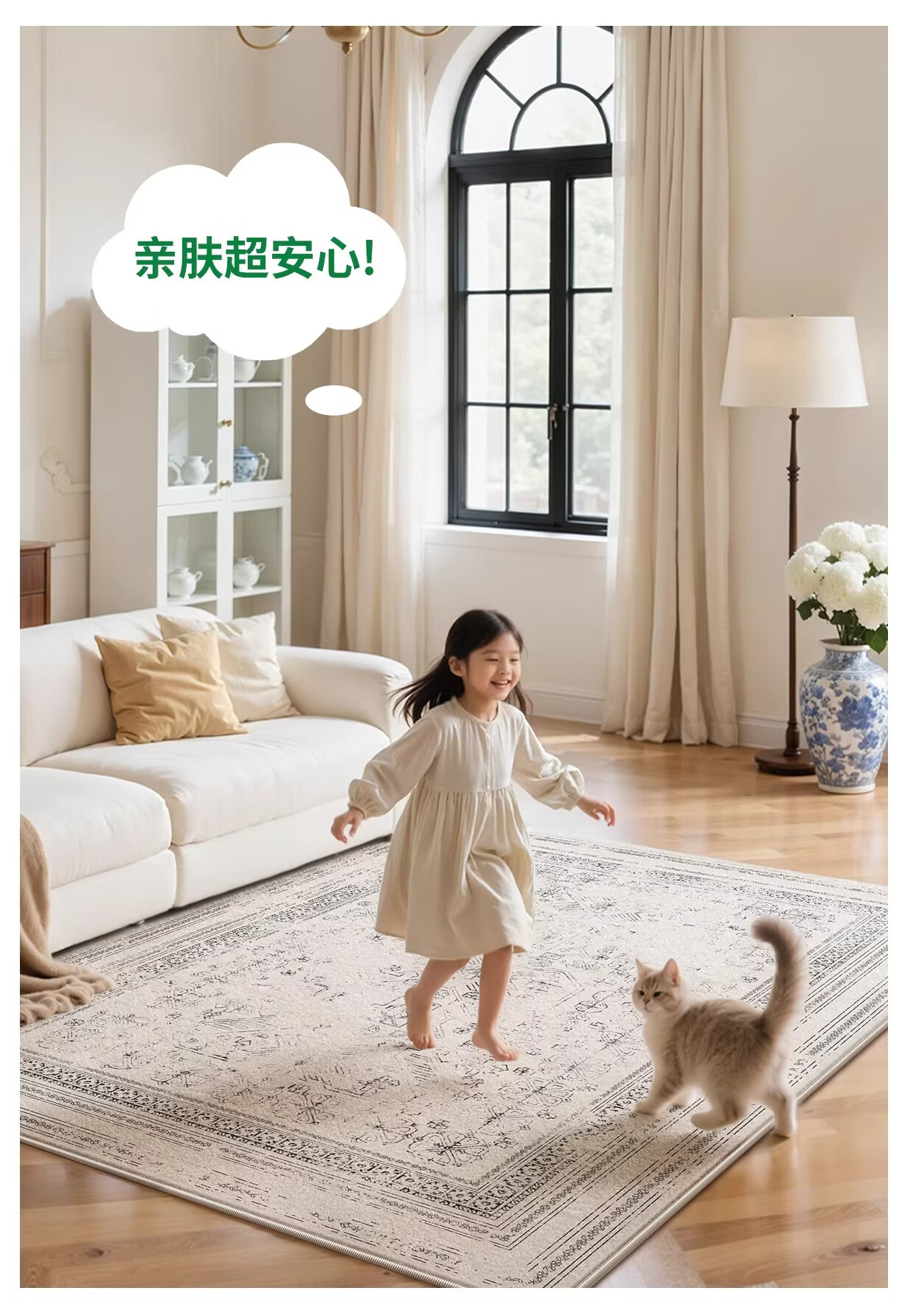 像素地毯客厅2026新款中古风沙发茶几地垫法式复古免洗可擦卧室床边毯 花吟-21558【80%客户的选择】 160cm*230cm【安全环保 家人放心】