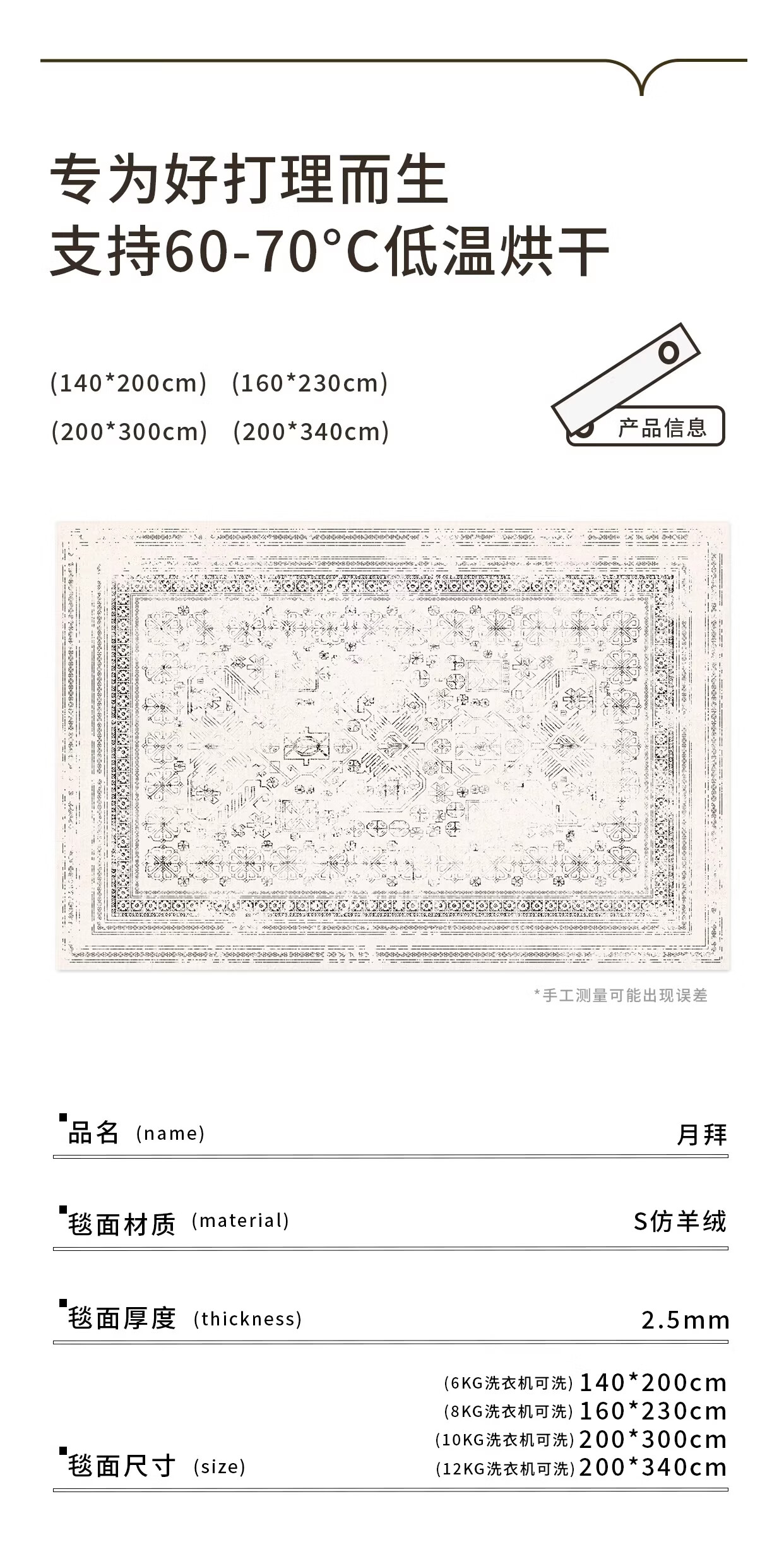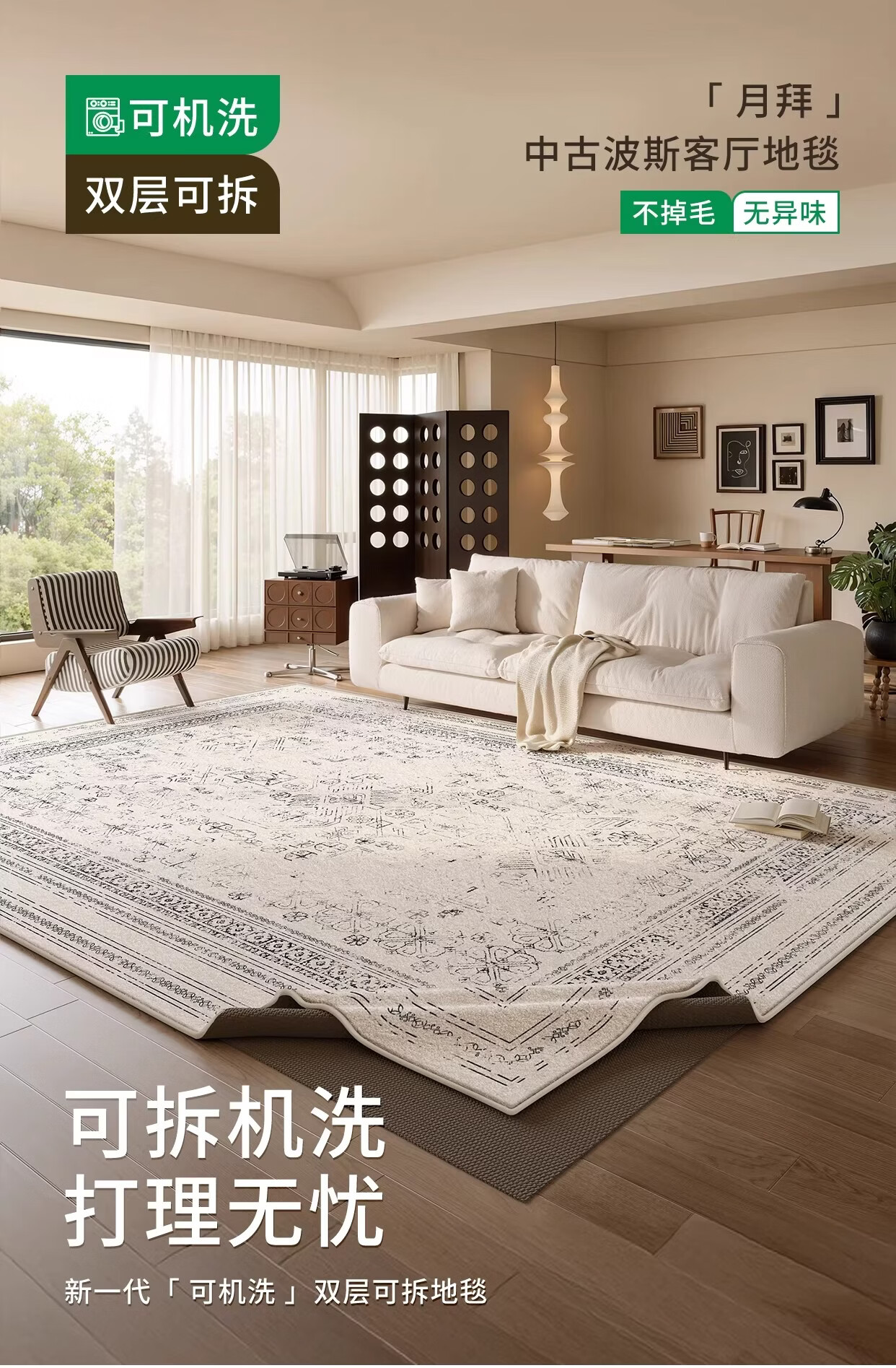 Y U-LIVE可拆洗地毯客厅波斯中古风2026新款免洗可擦可拆卸机洗高级感 可拆洗-仿羊绒-月拜 140×200CM【毯面+4mm标准底】