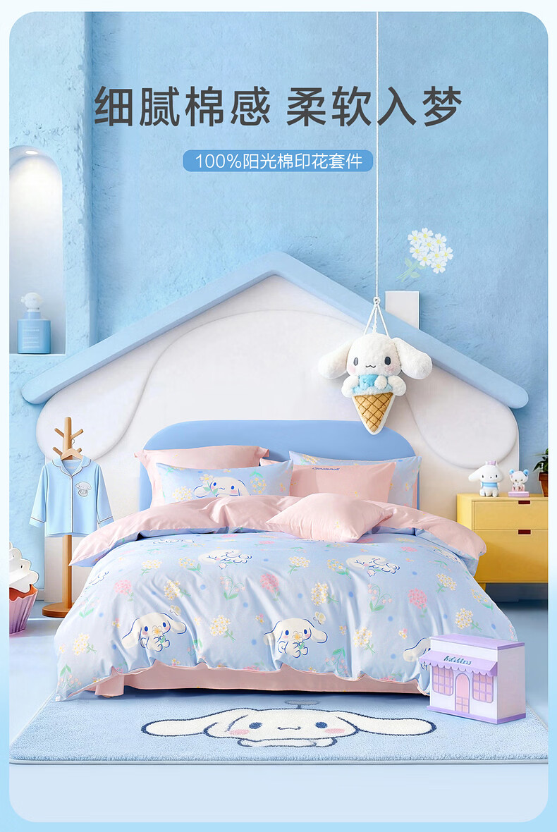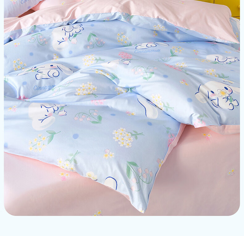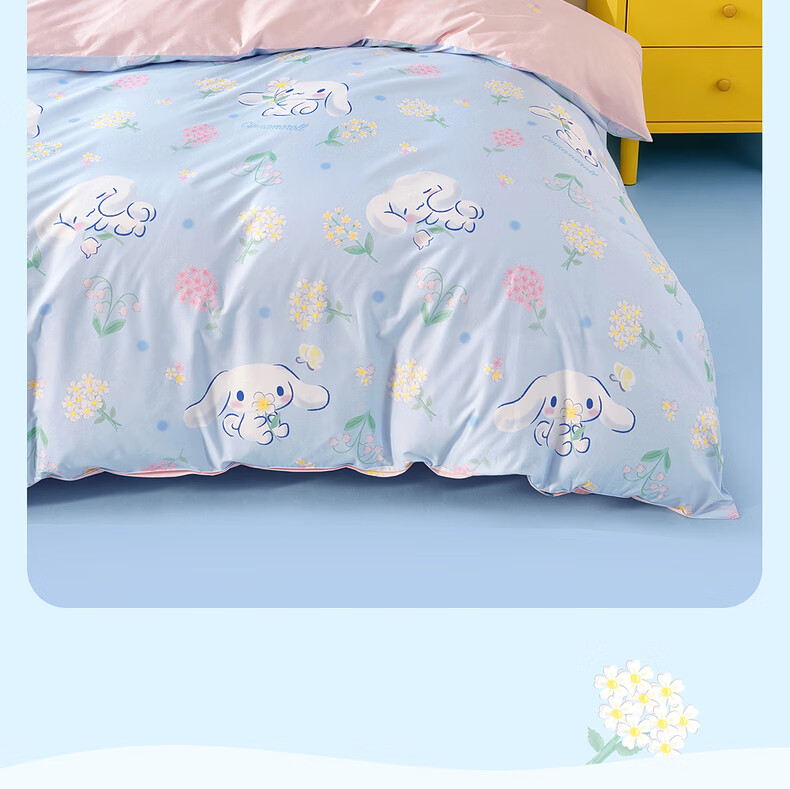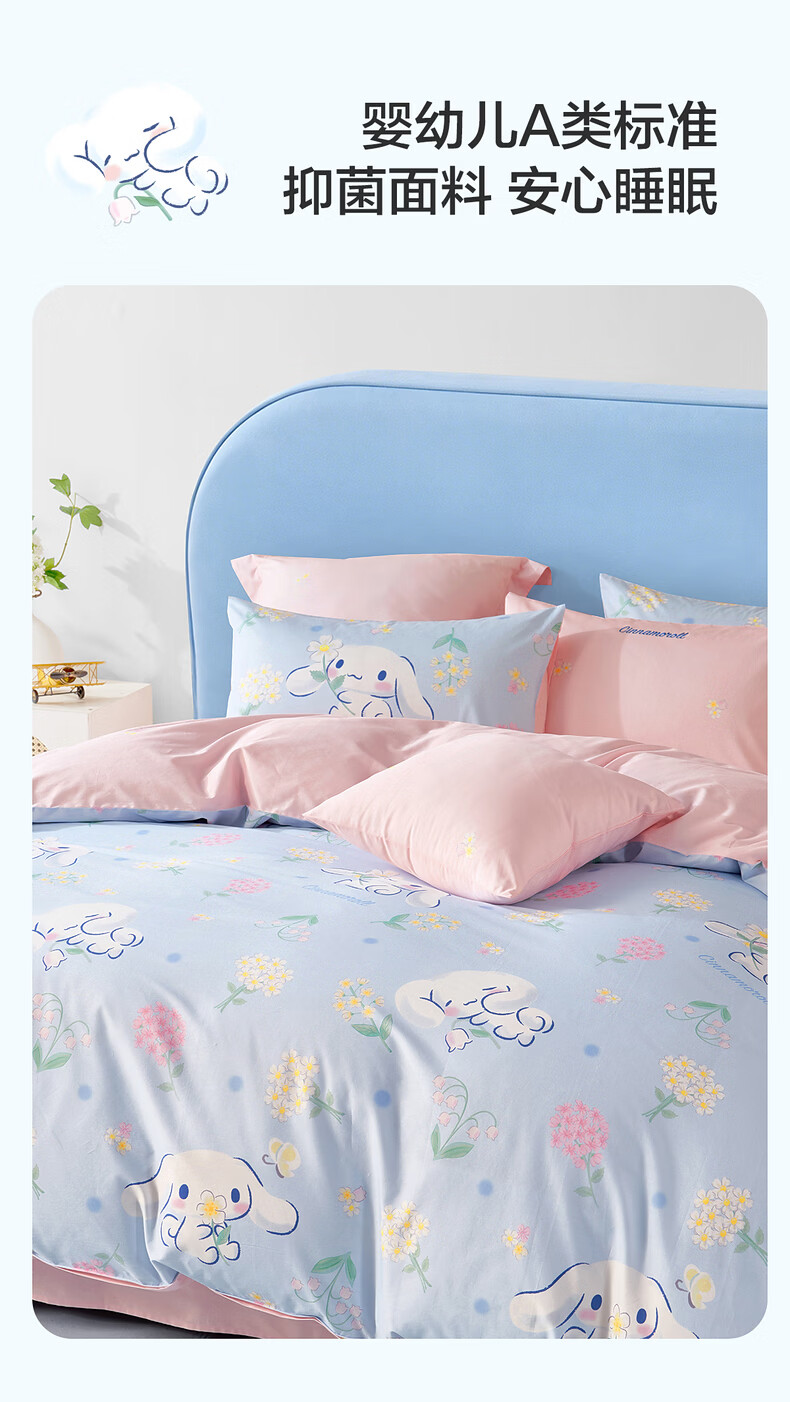 水星家纺四件套床上用品纯棉100%全棉婴幼儿A类儿童学生宿舍26年套件 花圃大耳狗 床单款 (被套150*210cm)