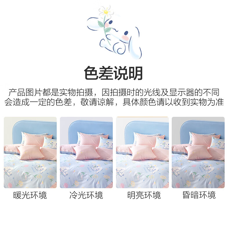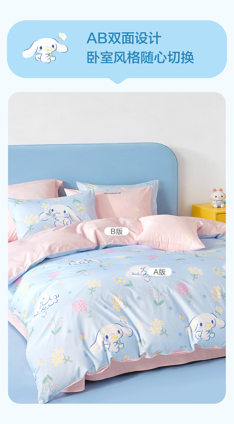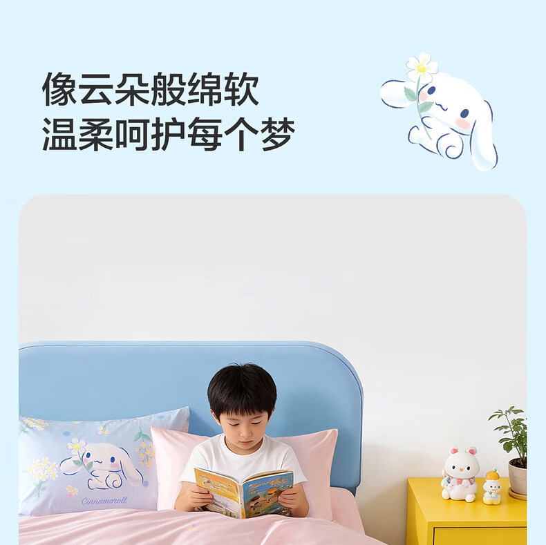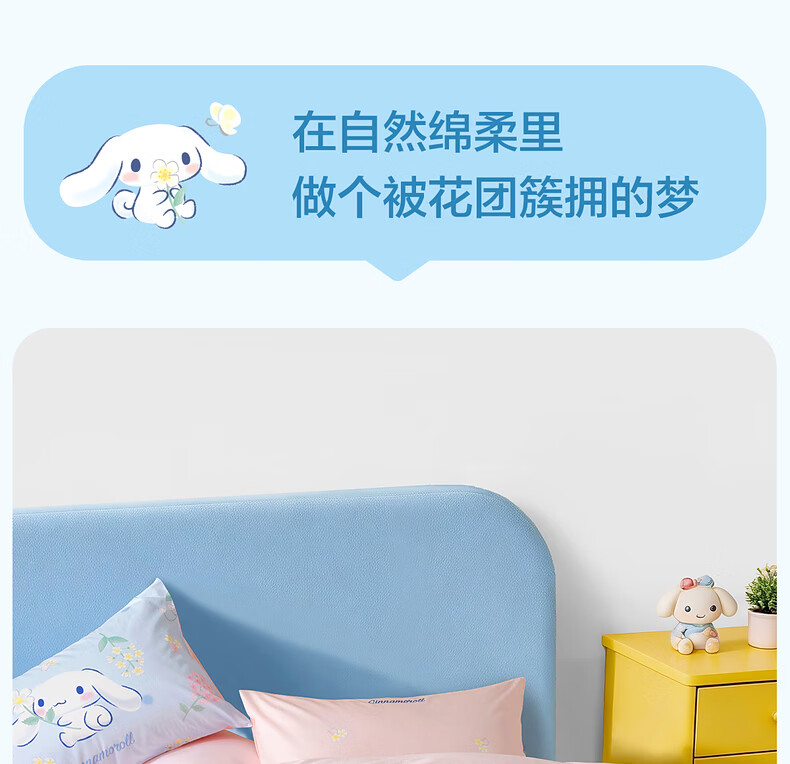 水星家纺四件套床上用品纯棉100%全棉婴幼儿A类儿童学生宿舍26年套件 花圃大耳狗 床单款 (被套150*210cm)