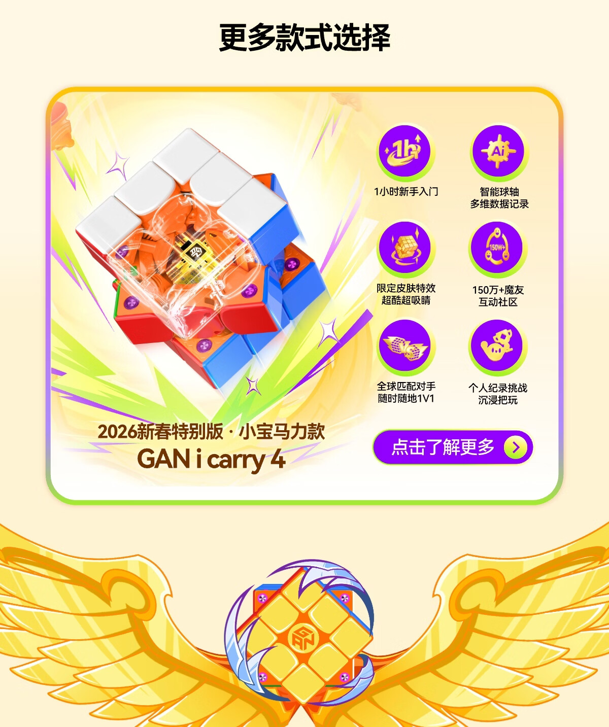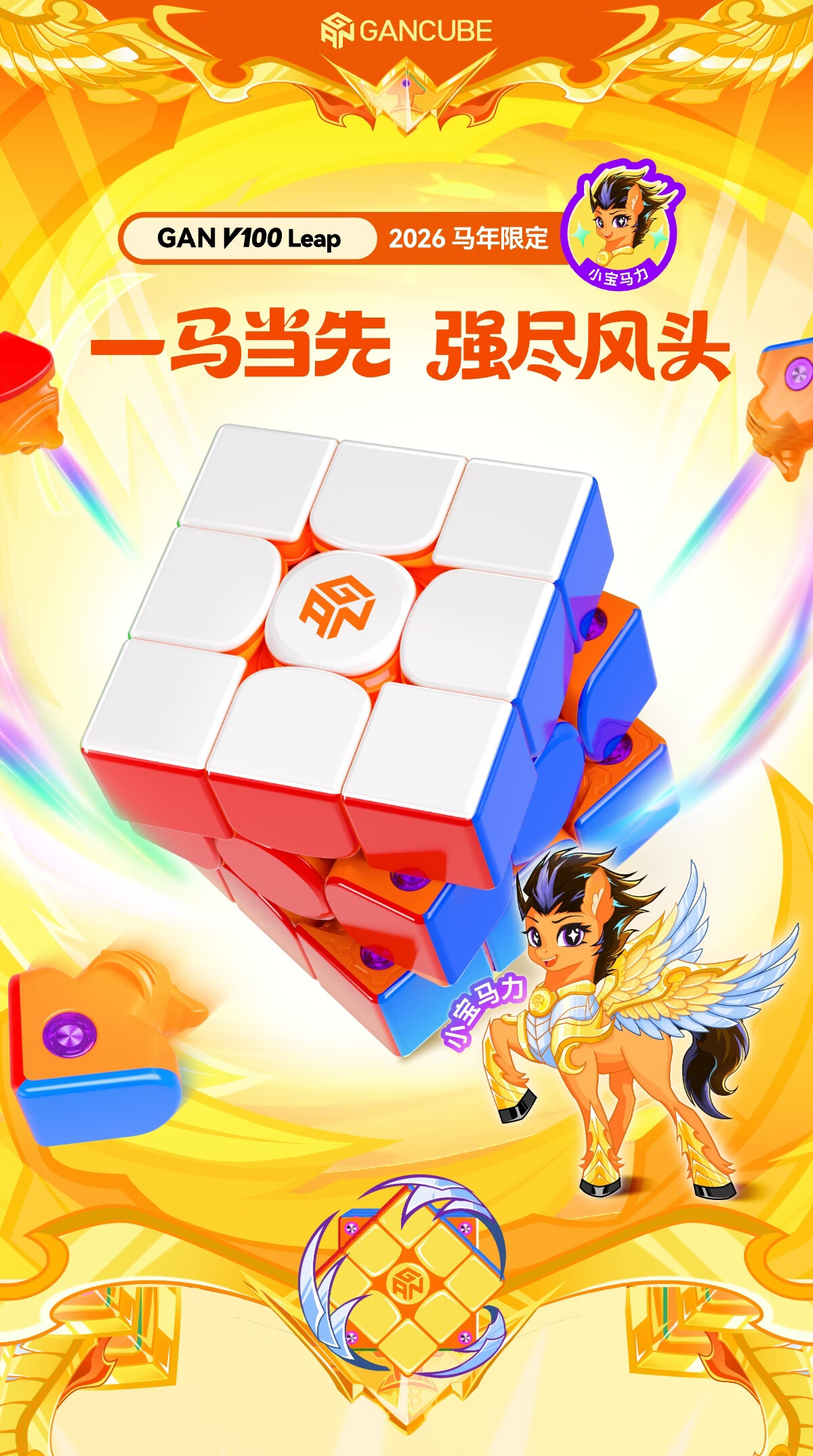 GAN魔方三阶磁力儿童早教益智玩具顺滑初学者礼物V100Leap马年新春版