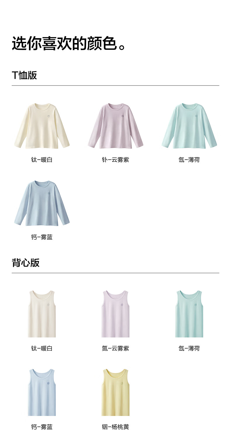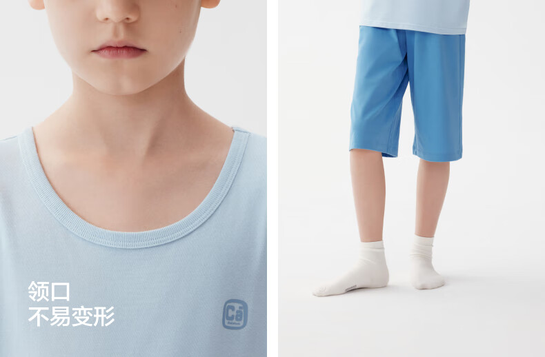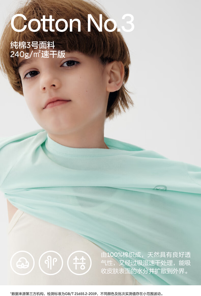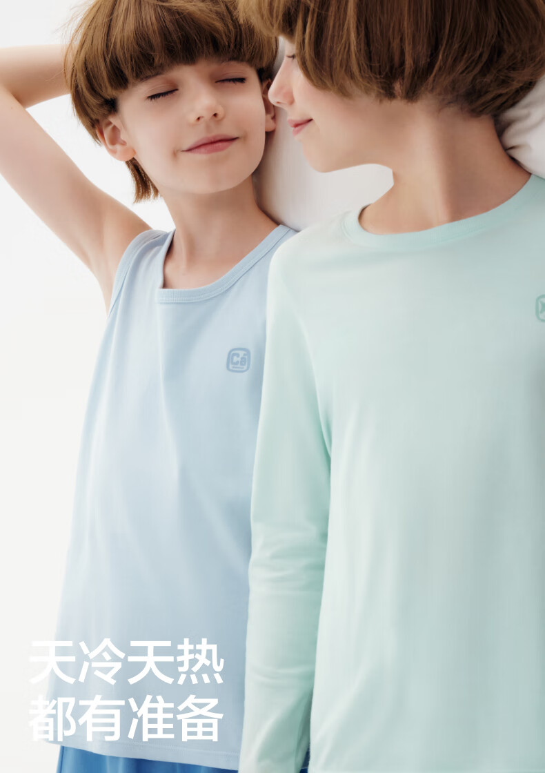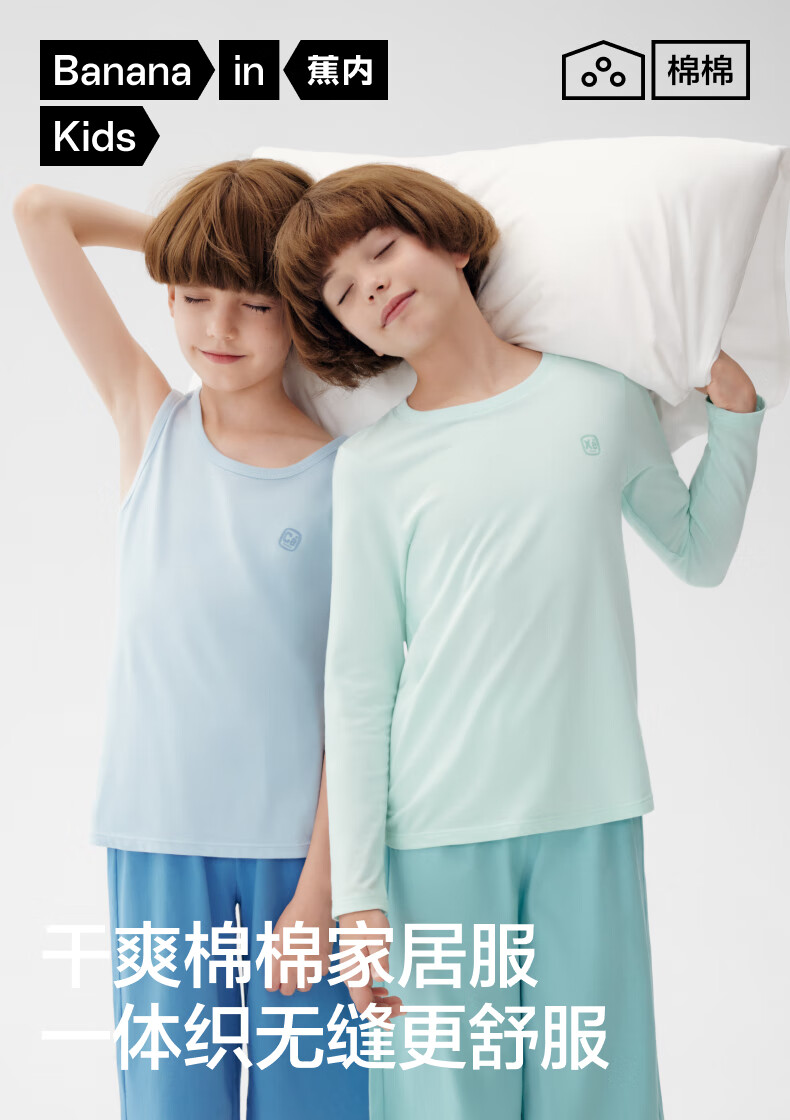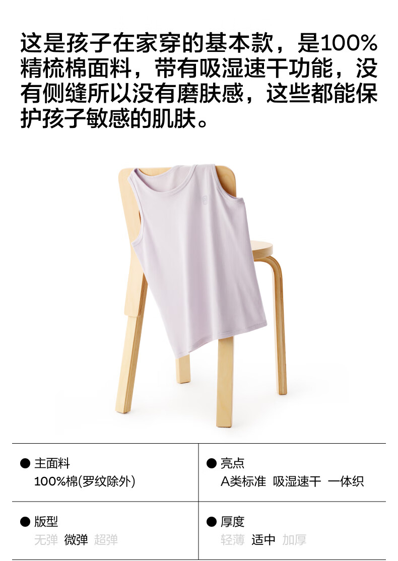 蕉内300E儿童背心无侧缝100%纯棉T恤百搭短袖男女童圆领家居上衣