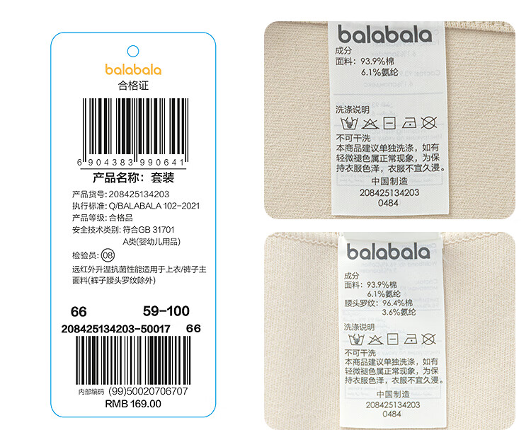 巴拉巴拉balaOne宝宝内衣套装2025款冬装家居服发热罗纹高腰208425134203
