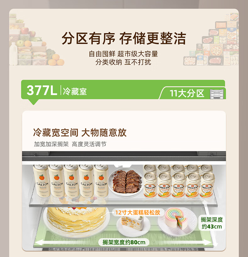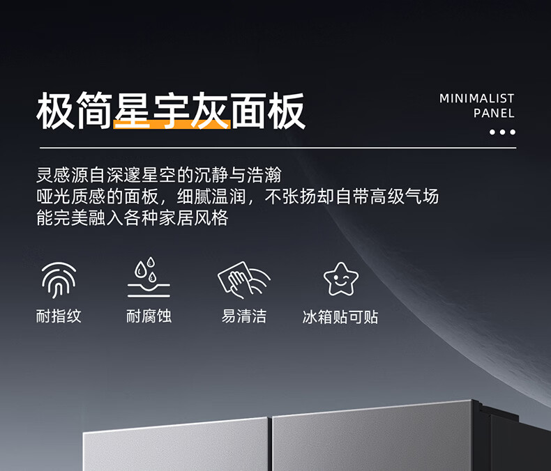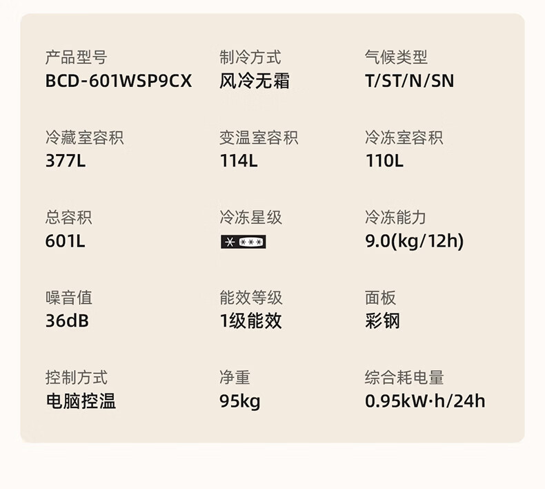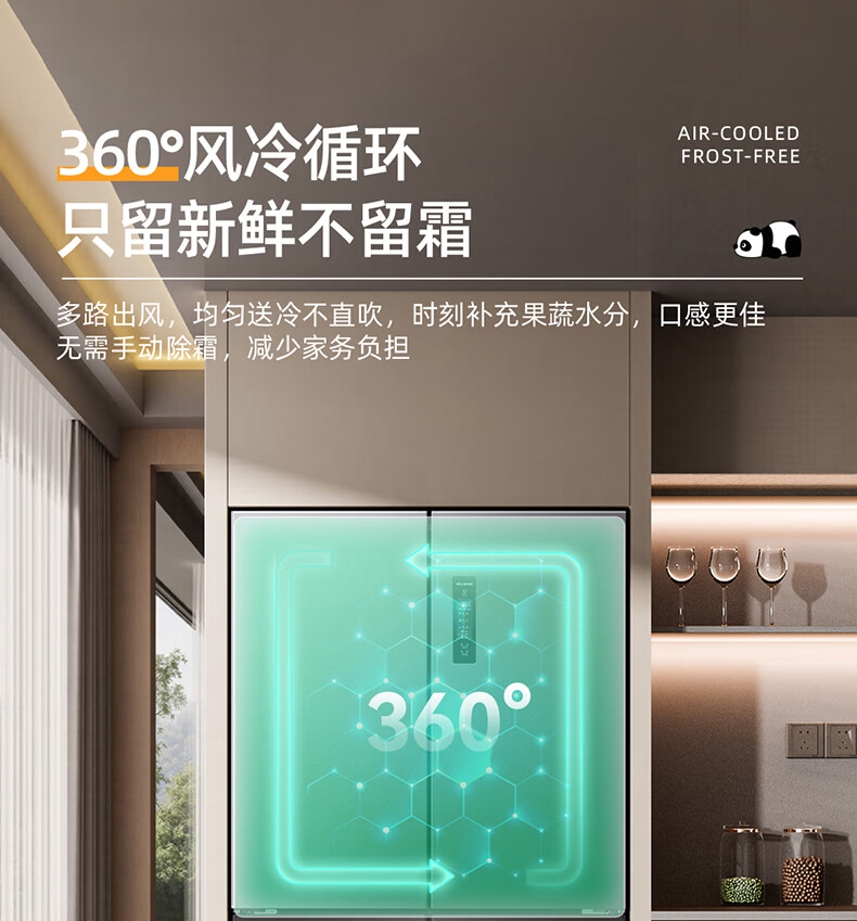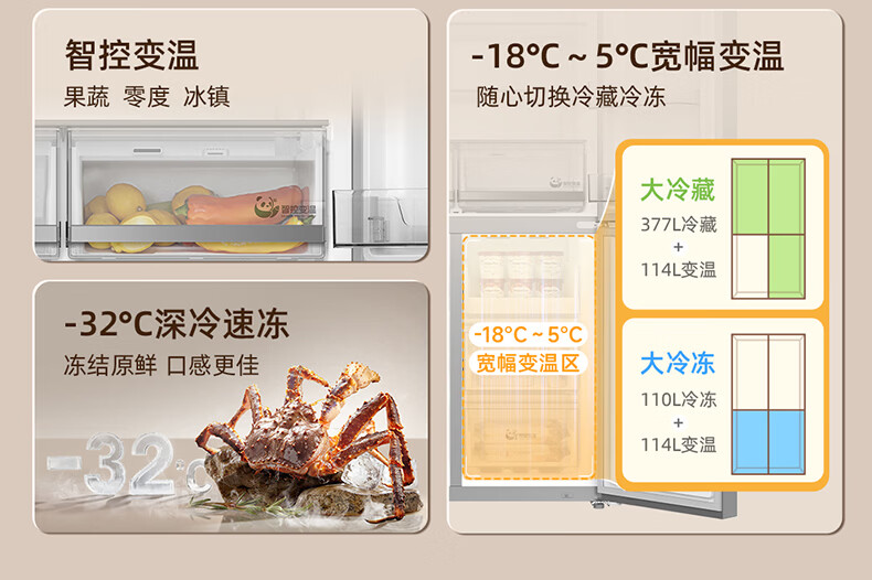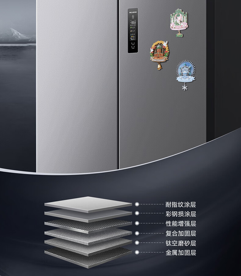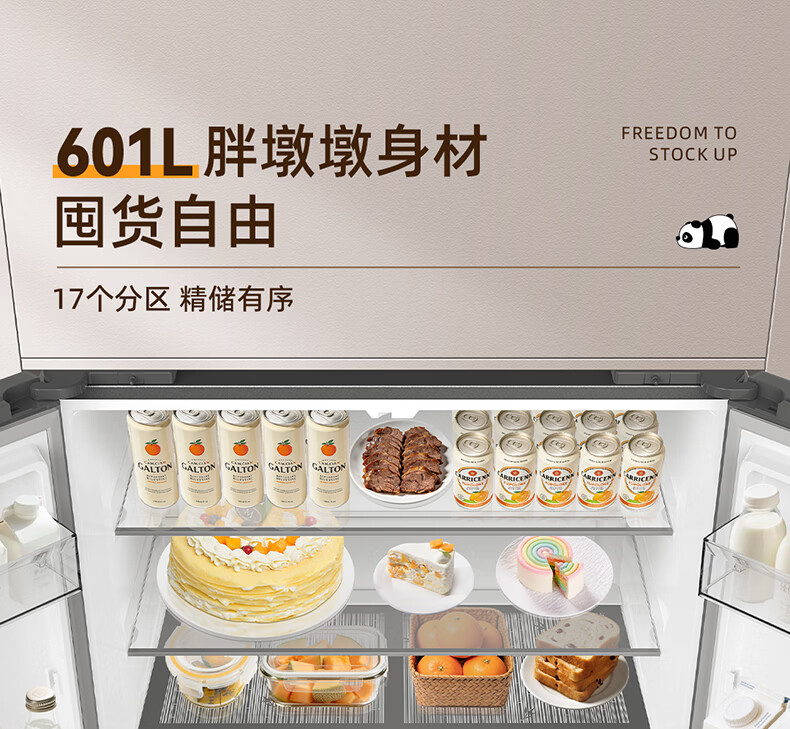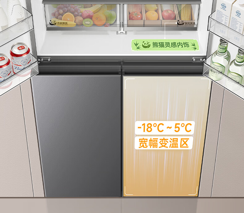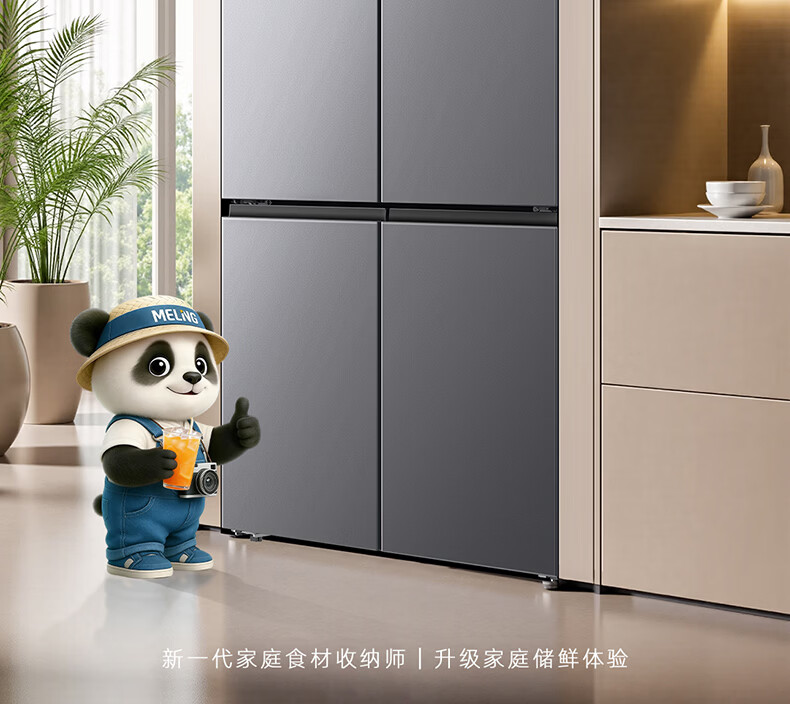 美菱收纳师601L十字门冰箱净味抗菌双变频超大容量一级能效家用节能风冷无霜新BCD-601WSP9CX国家补贴