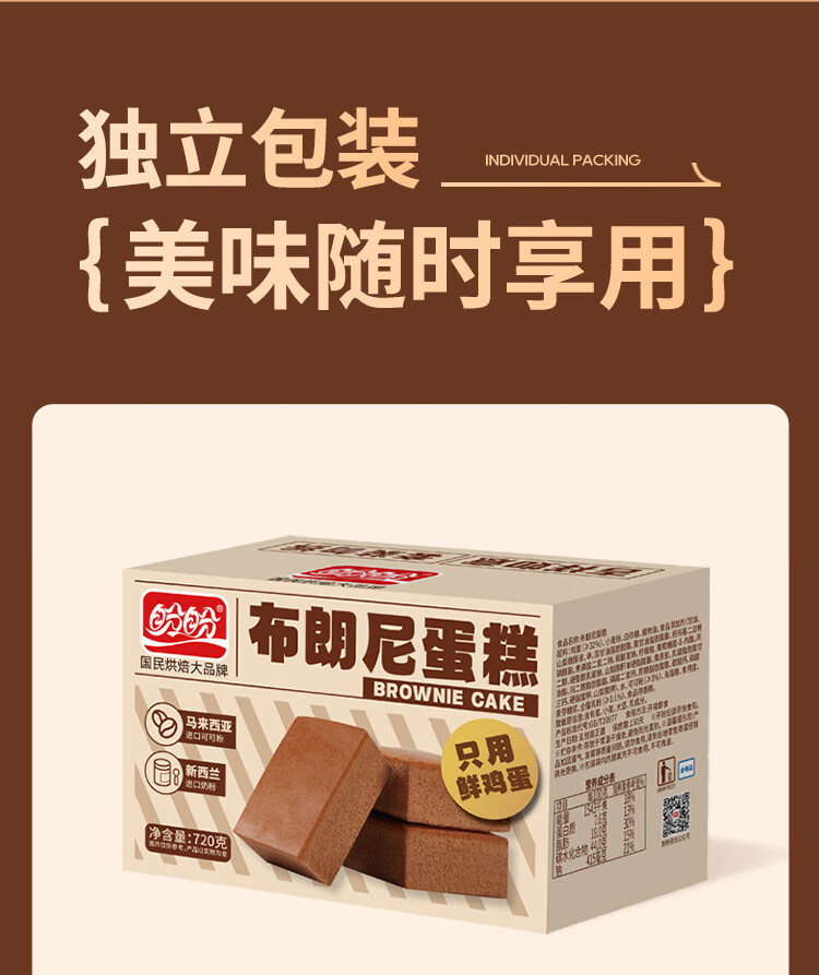 盼盼 布朗尼蛋糕 早餐面包糕点休闲零食巧克力蛋糕办公室充饥 720g/箱