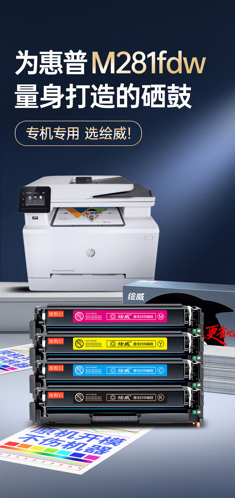 绘威m281fdw硒鼓适用惠普m281fdw硒鼓HP Color LaserJet Pro MFP M281fdw打印机硒鼓 墨盒 四色大容量