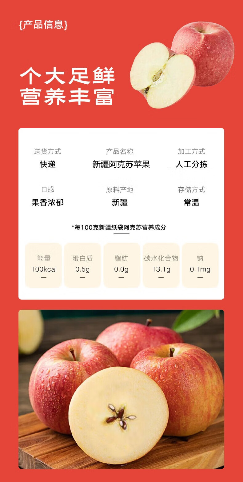 京地达新疆冰糖心阿克苏苹果 净重5斤中果 果径75-80mm 源头直发包邮