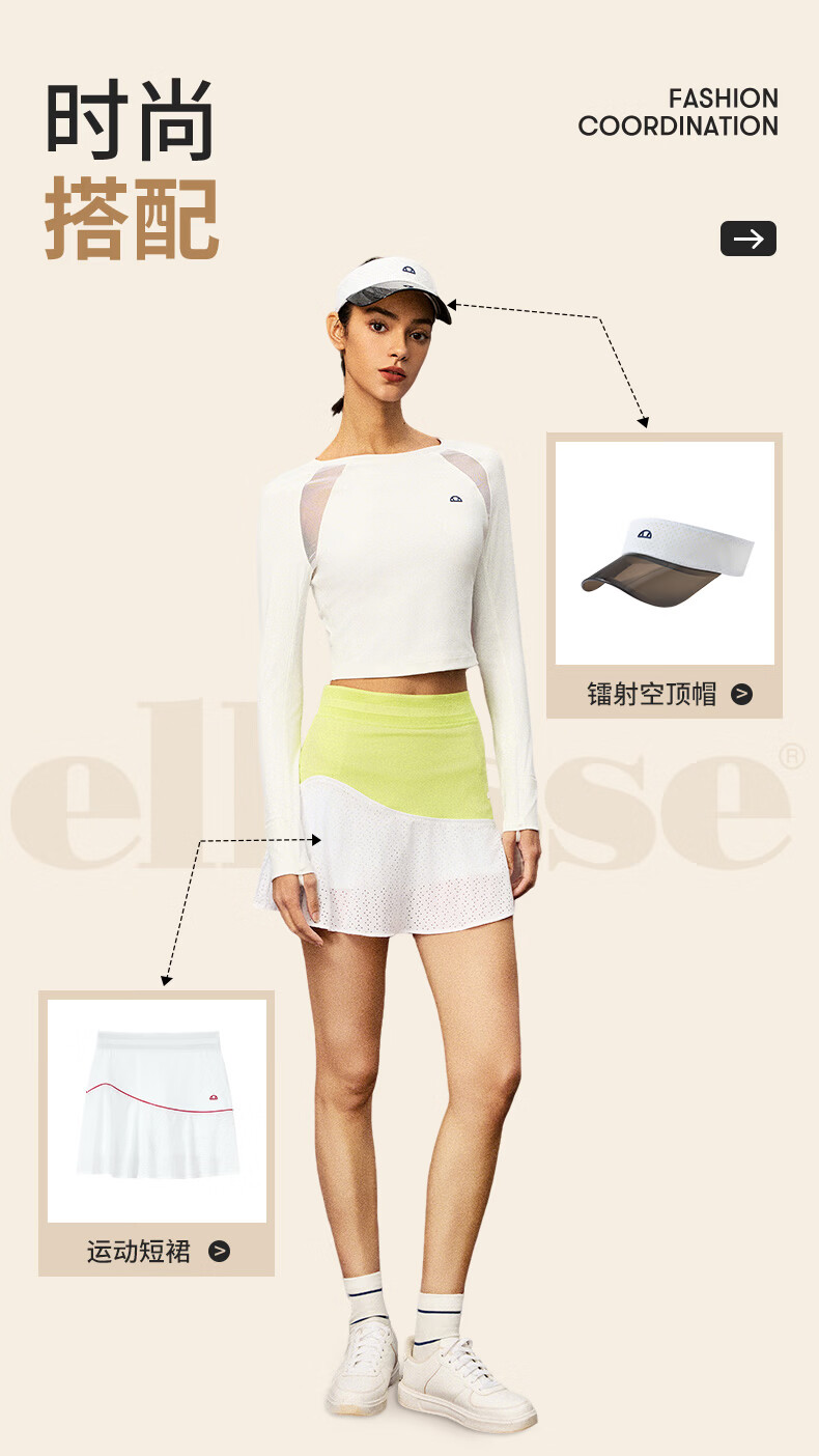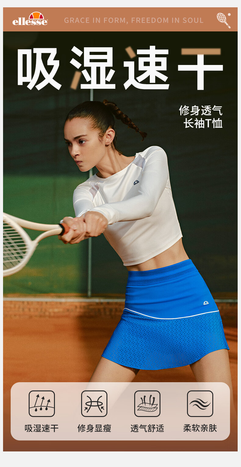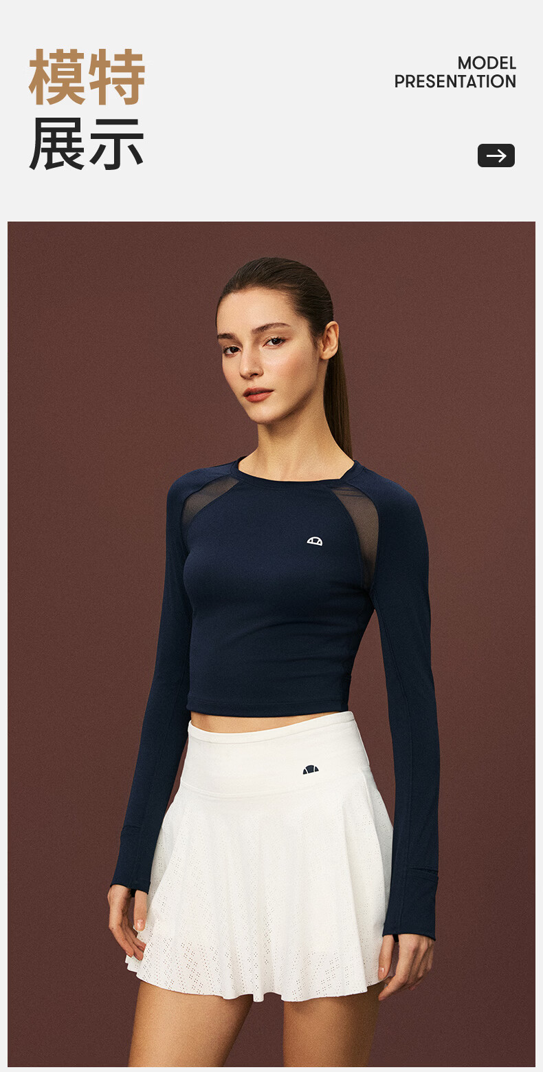 ellesse小贝壳26春新品网球服吸湿速干网纱设计显瘦长袖T恤上衣女 藏青 S