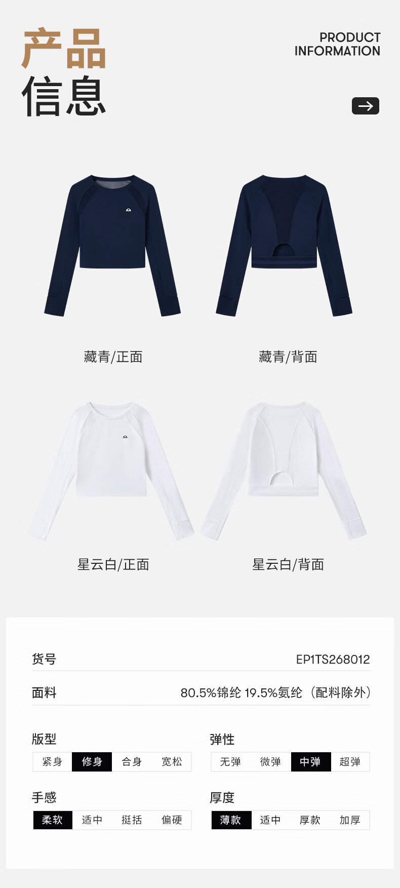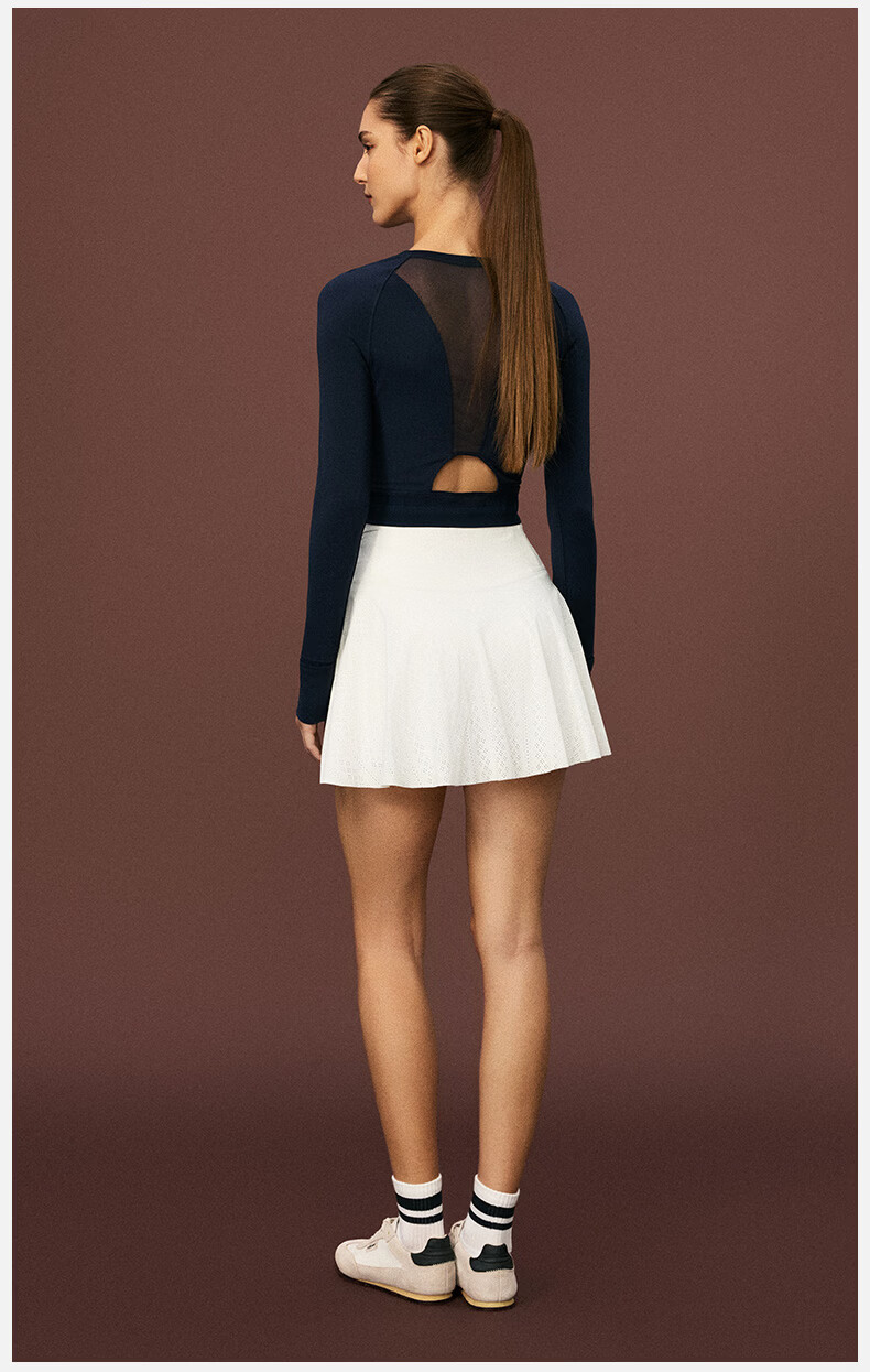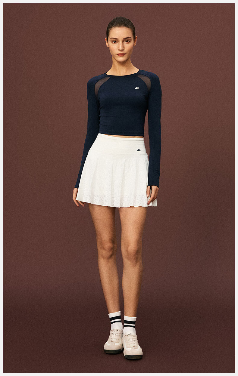 ellesse小贝壳26春新品网球服吸湿速干网纱设计显瘦长袖T恤上衣女 藏青 S