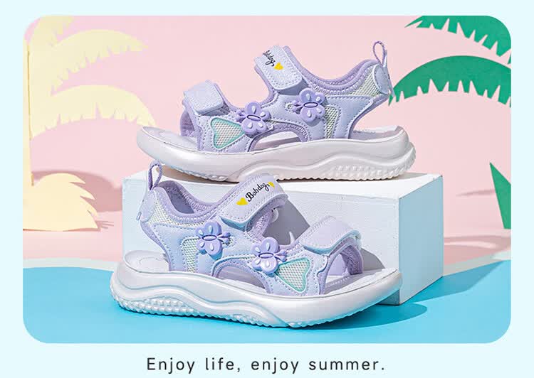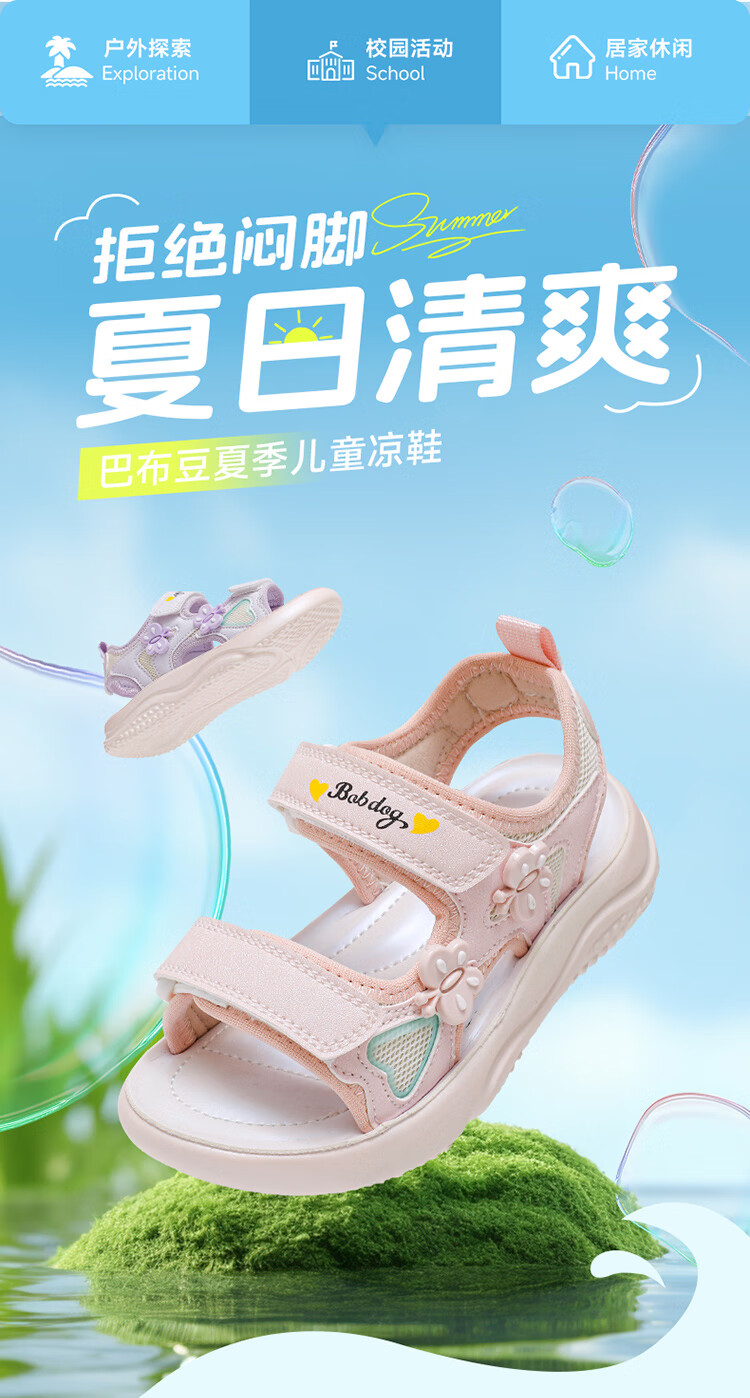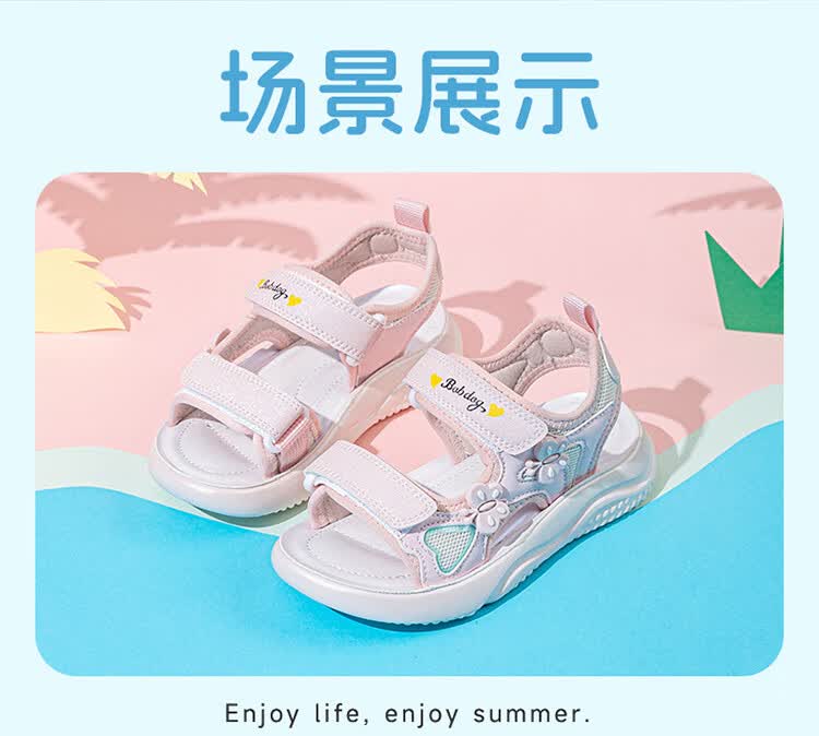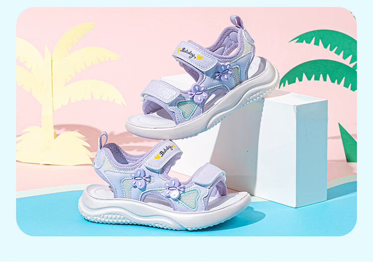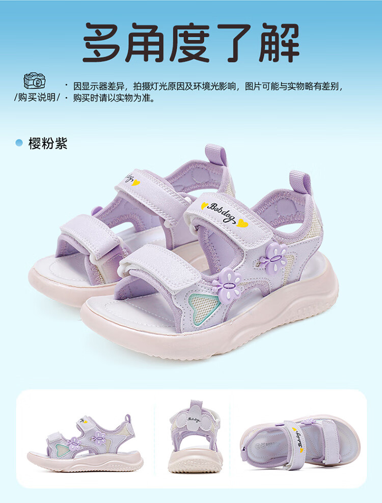 巴布豆童鞋2025夏季新款女童休闲软底沙滩鞋时尚儿童凉鞋中大童公主鞋 樱粉紫 31 适合脚长20.0cm