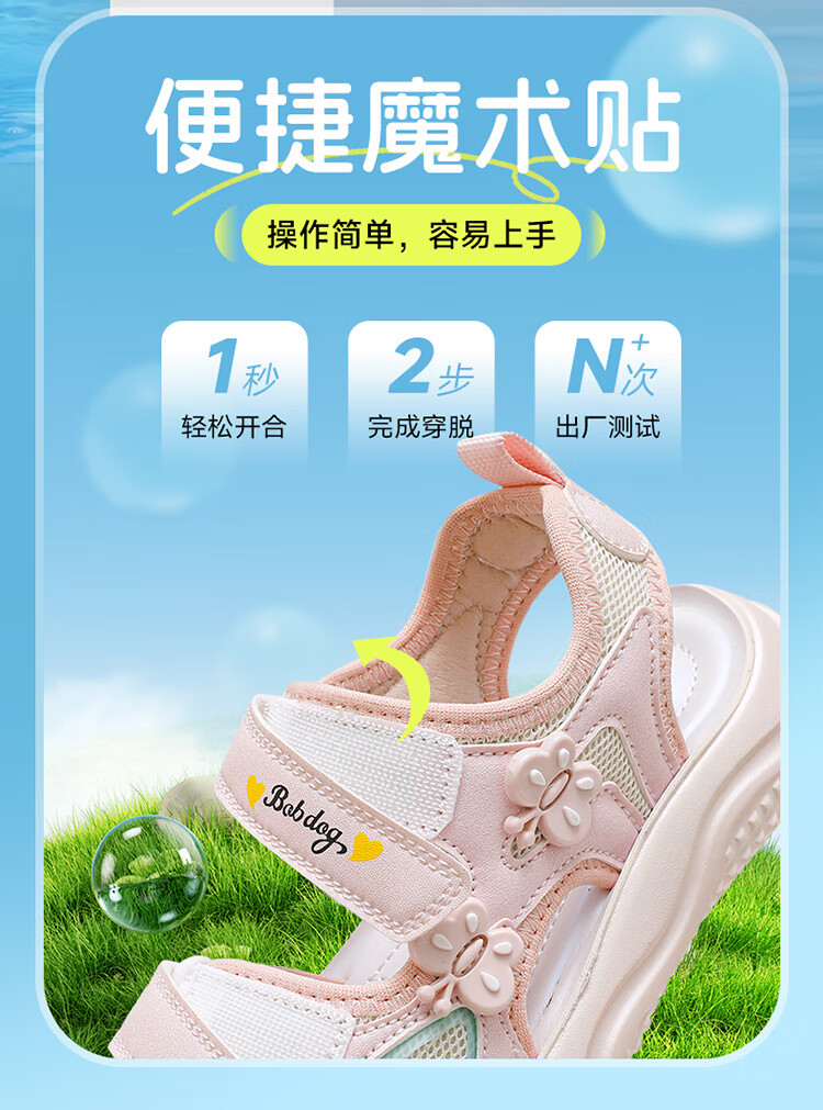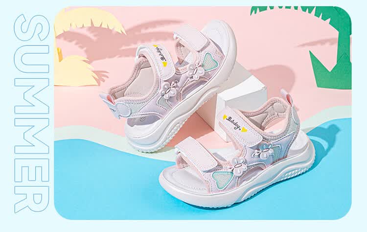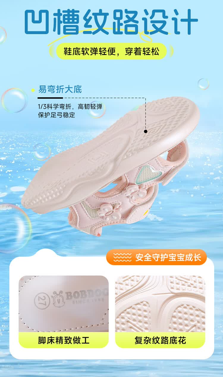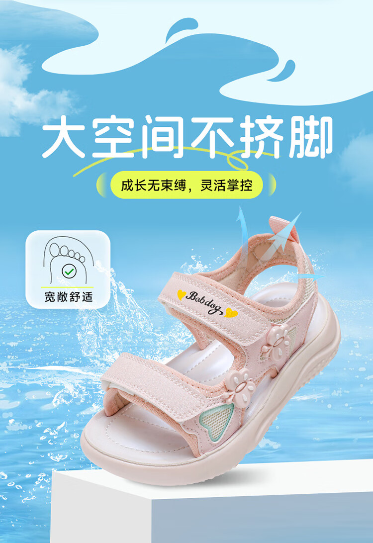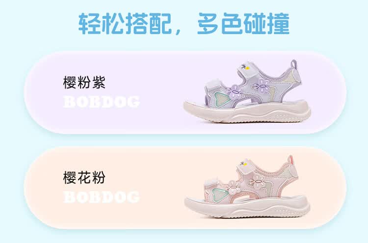 巴布豆童鞋2025夏季新款女童休闲软底沙滩鞋时尚儿童凉鞋中大童公主鞋 樱粉紫 31 适合脚长20.0cm
