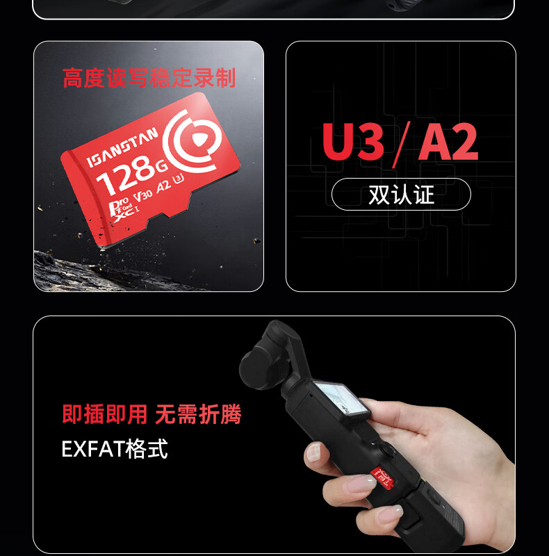 ISANSTAN存储卡TF适用于Dji大疆pocket3内存卡256G高速U3 action4/5pro/运动相机4k高清录制mini3无人机 【EX1TB】Pocket3/Action专用卡