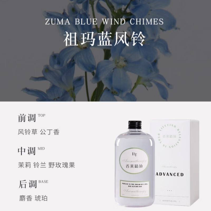 蒂詩宣(dishixuan)香氛补充液酒店扩香机加湿器香薰精油补充装家用室内持久厕所卧室 蓝风铃 500ml