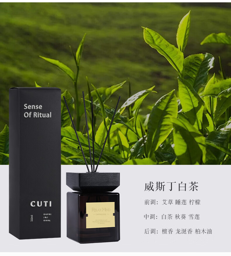 蒂詩宣香薰500ML大瓶高级感木盖藤条香氛摆件家居室内卧室持久香伴手礼 正装黑盒大瓶500ML藤条款 木兮全季禅茶
