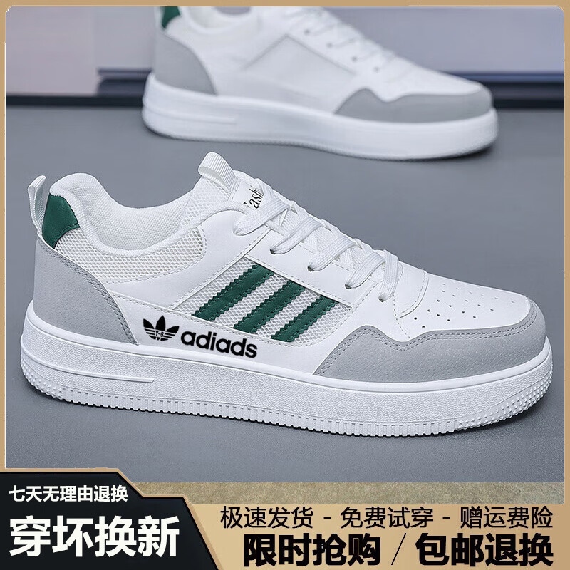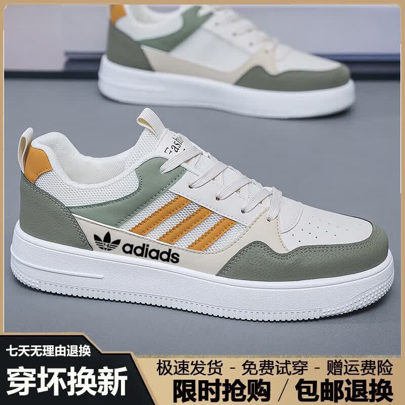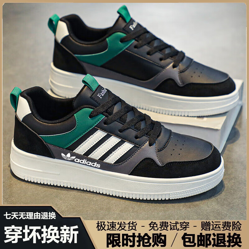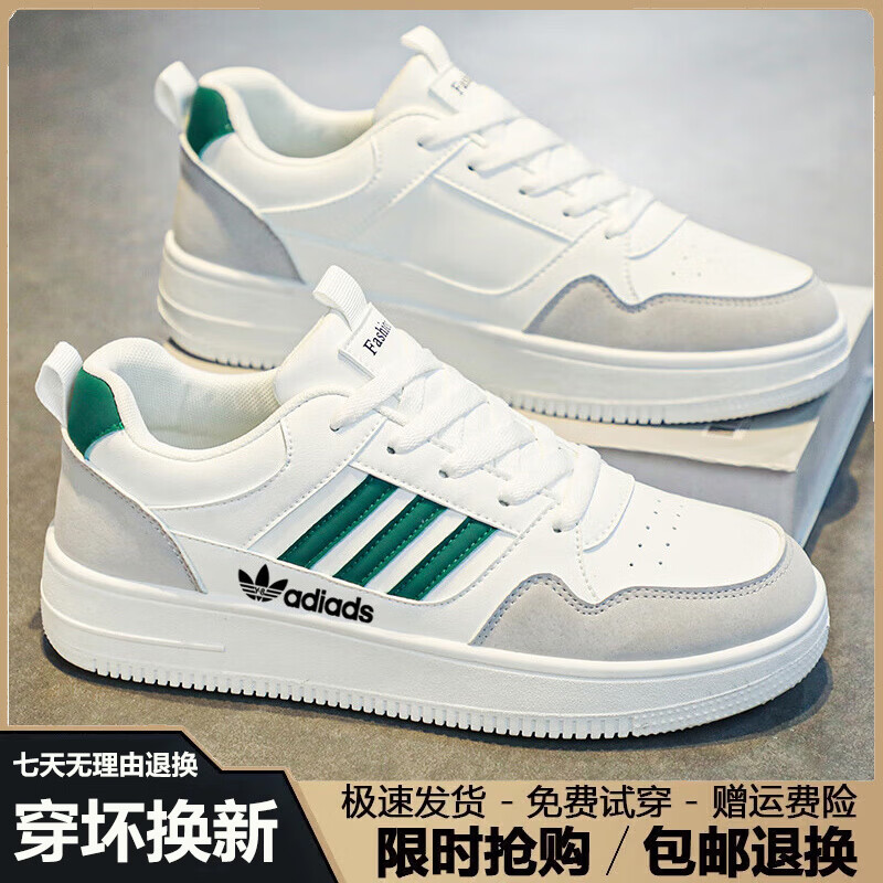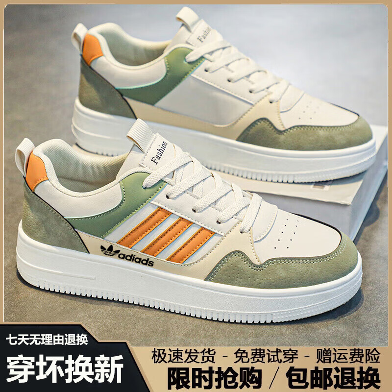 轻奢男鞋2026春季新款休闲板鞋男士轻便跑步鞋子男士百搭运动鞋男 AD522白绿【皮面】 42
