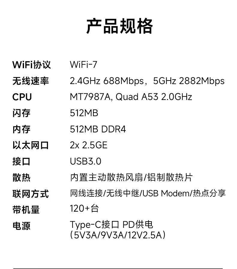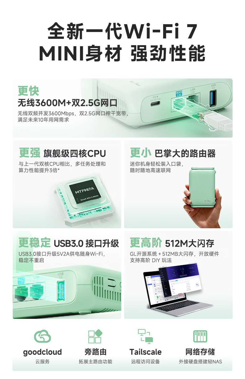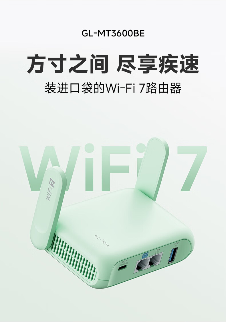 GL·INET路由器MT3600BE【新品旗舰WIFI7】无线千兆软路由 双2.5G网口 家用高速带USB3.0 轻NAS迷你便携
