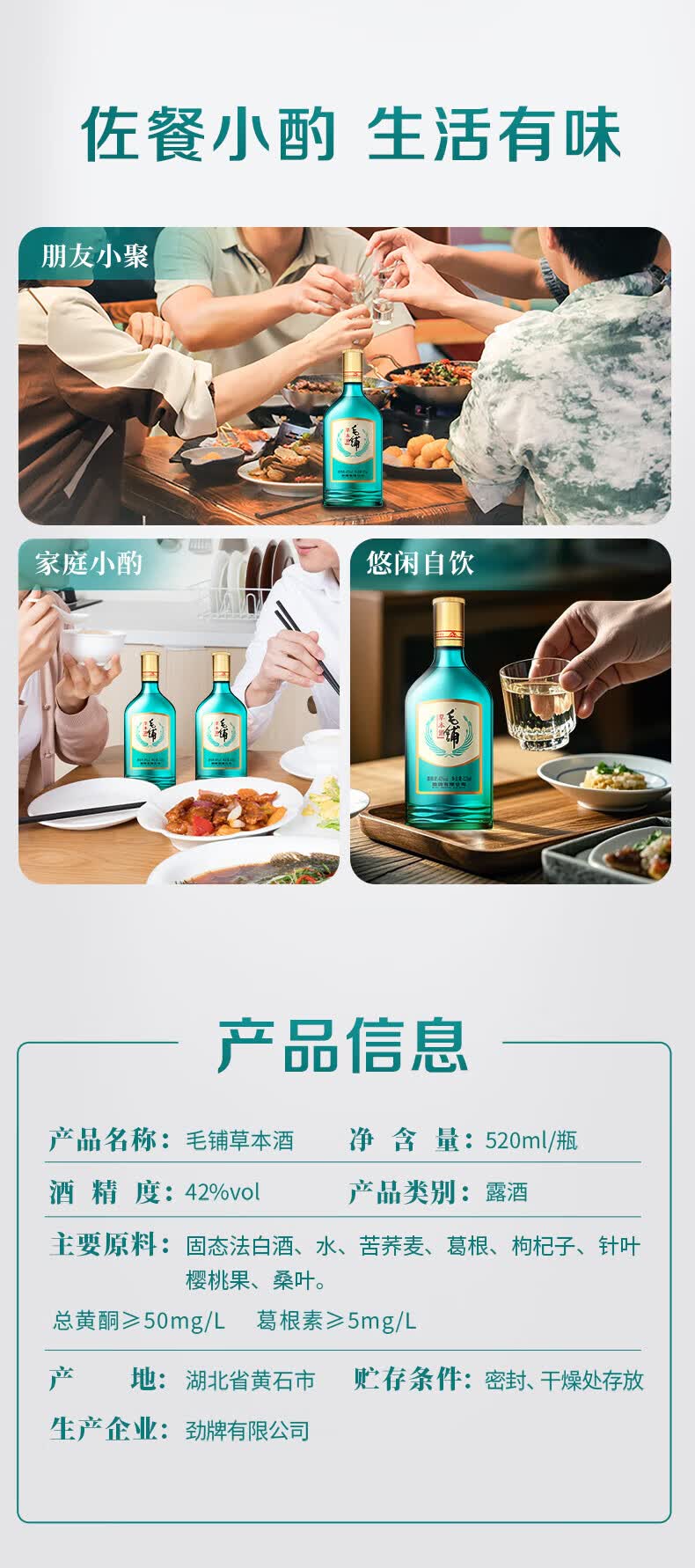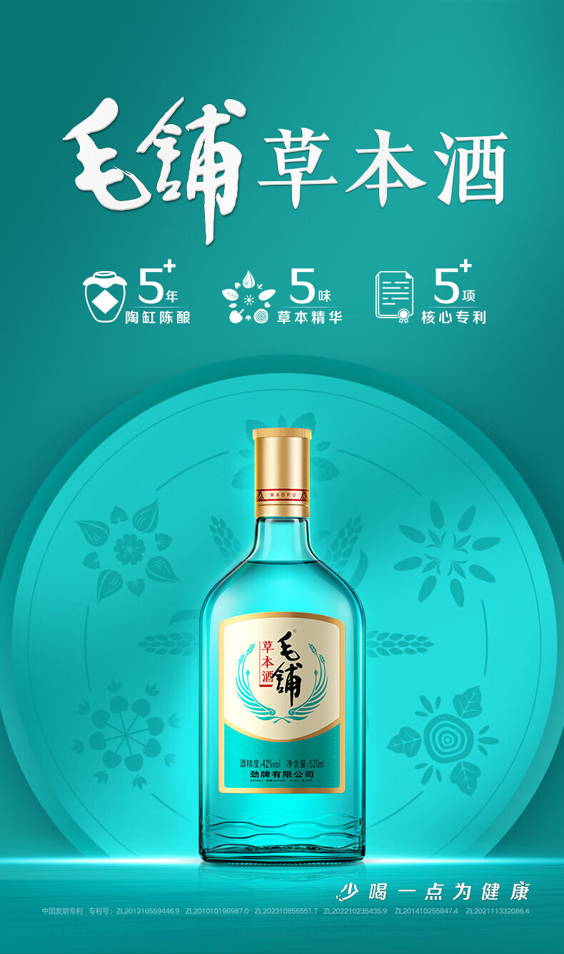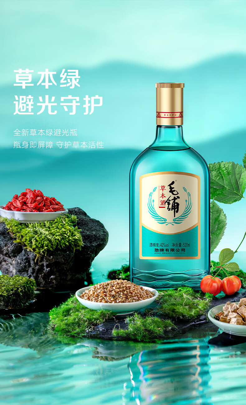 劲牌毛铺草本酒 露酒 草本白酒 绿荞 42度 520ml*6 自饮送礼